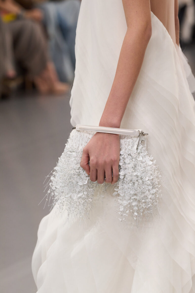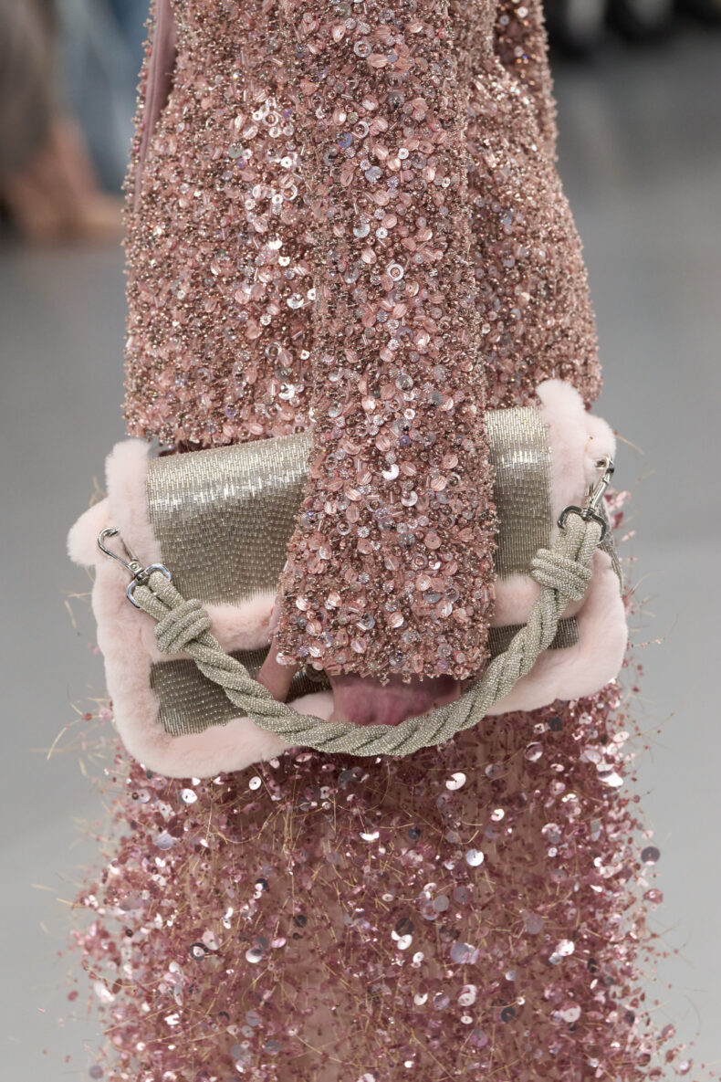 During the latest Haute Couture fashion show by Fendi, held during Paris Fashion Week, accessories took on a leading role, contributing to defining a brilliant and extremely luxurious imagery. Indeed, the bags from the collection, in a fascinating mix of colors – from silver tones to black, passing through nude colors and pink – harmoniously blend with light and ethereal looks.