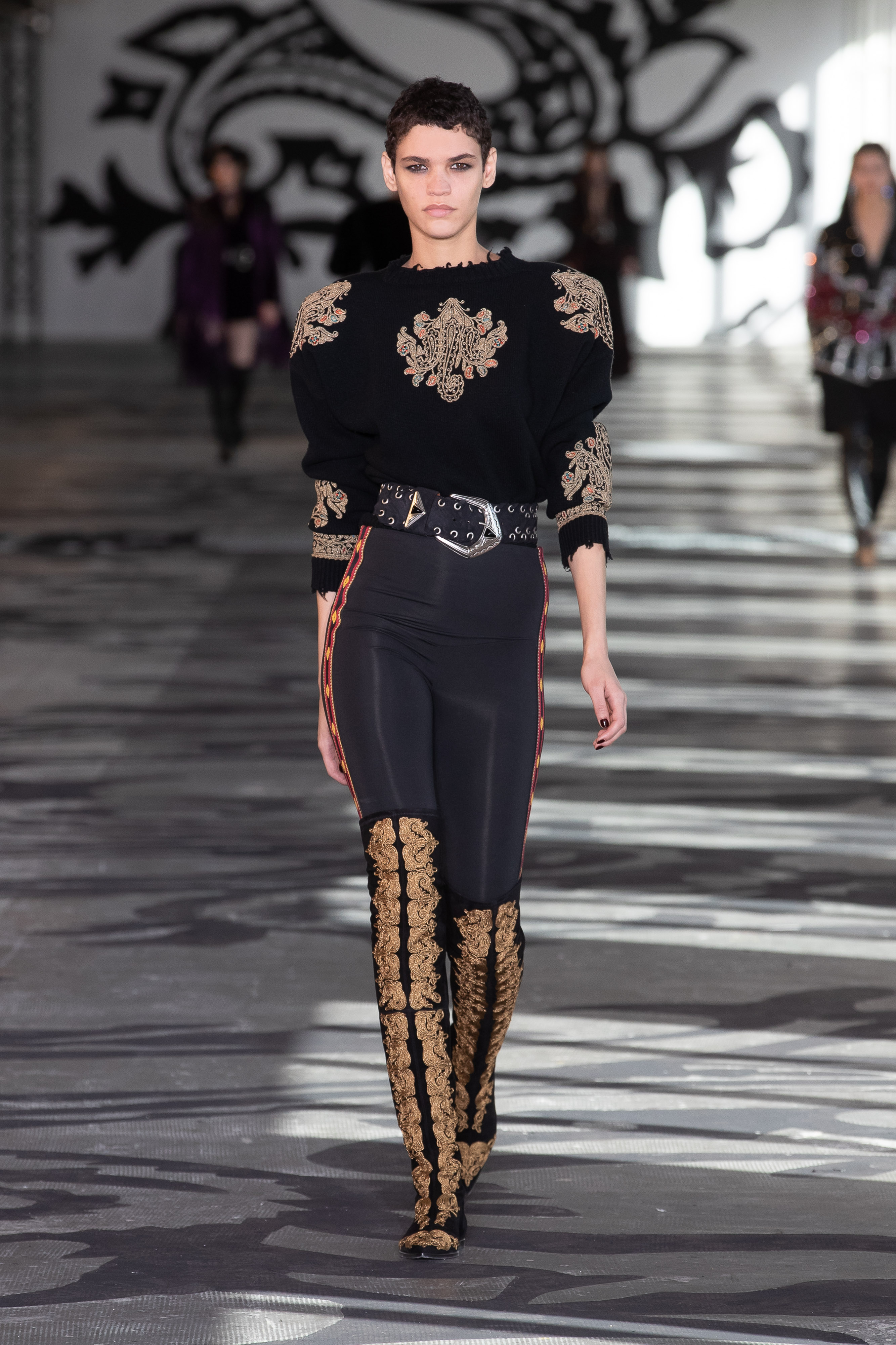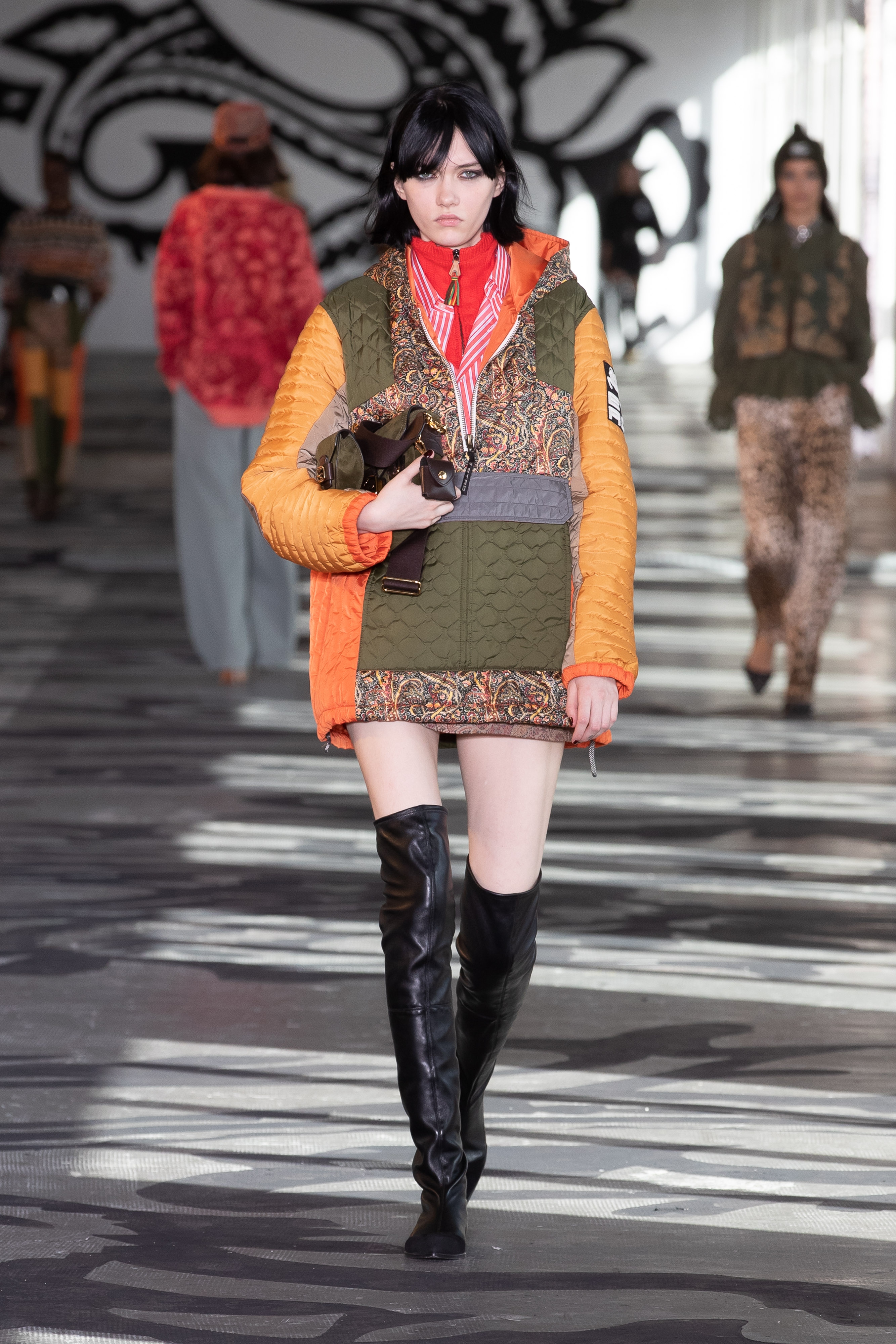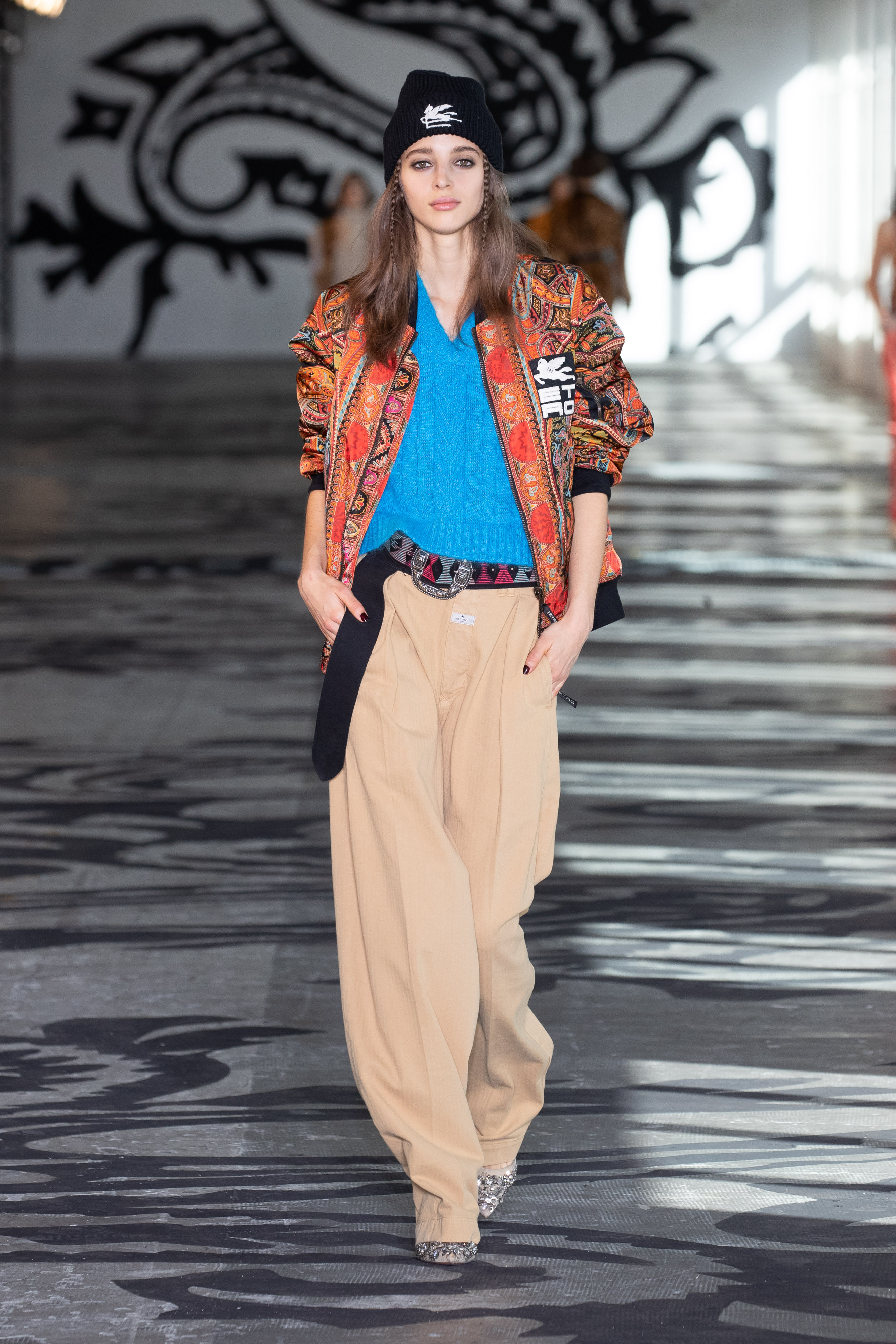 Born from the desire to embody freedom in its deepest meaning, that of affirming one’s personality, Etro Fall/Winter collection is an invitation to look at the world with unconventional and independent eyes. Rudolf Nureyev and Jimi Hendrix are the inspiring muses of Veronica Etro, who made a rebellious spirit the common thread of the entire collection. Hendrix’s love for exoticism and dandy attitude are mixed with Nureyev’s refinement, giving a new interpretative key to Etro’s most iconic codes. The result is embroidered dressing gown coats, long fringed blazers, vest dresses and oversized pullovers, to complete a special wardrobe with comfortable silhouettes. The patterns take up the most iconic paisley blending into geometric inlays inspired by the costumes of Russian ballets. Precious prints mix with the embroideries that Nureyev himself wore, becoming incredibly contemporary. Upholstery prints and animalier patterns, on the other hand, recall the spirit of Hendrix which translates into patchwork coats, quilted anoraks and enveloping knitwear. The masculine-cut suits are made of furnishing fabrics, while the wide corduroy trousers with a soft and generous silhouette reveal tie-dye motifs. The feminine touch to refine the collection is given by sophisticated tops and mini and maxi dresses tightened at the waist by belts with metal buckles. To adapt the entire collection to the needs of the contemporary woman there are everyday pieces such as sweatshirts, washed jeans, leggings and bomber jackets and oversized parkas.