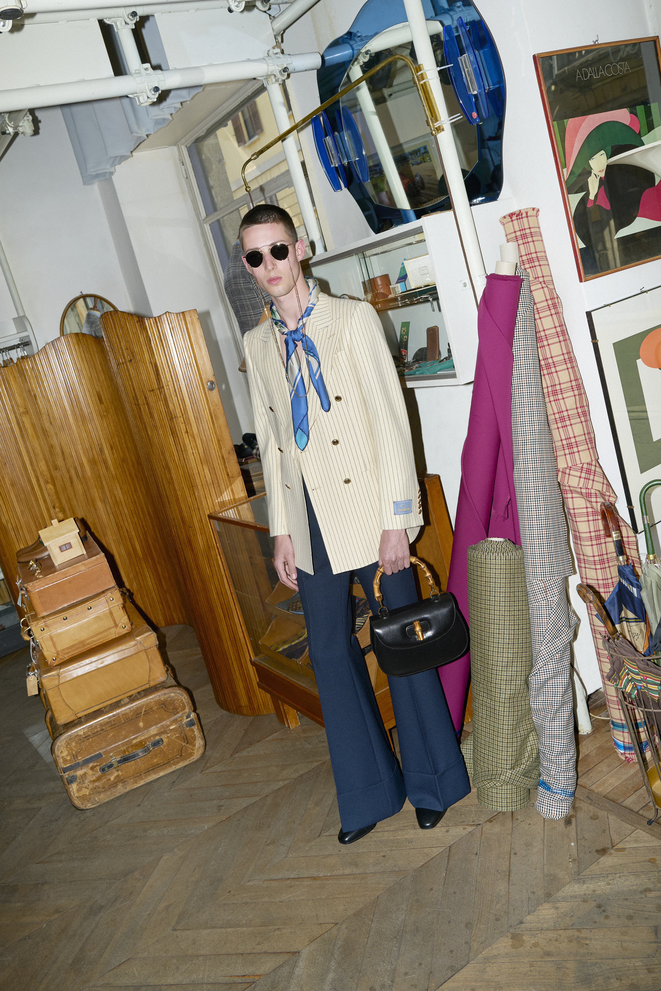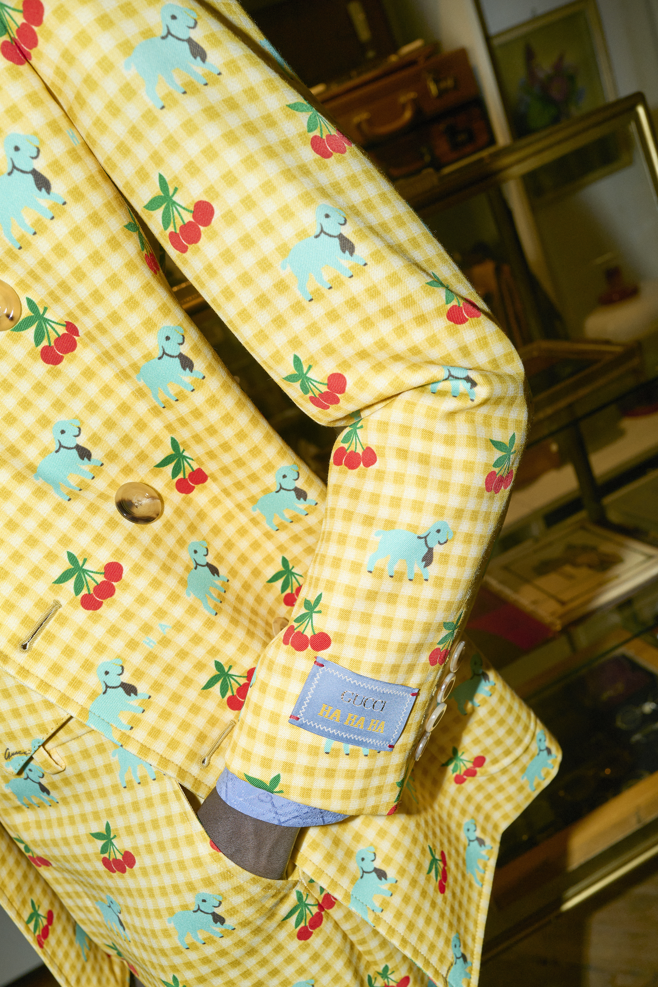 Thus was born Gucci HA HA, a wardrobe they both like to describe as the wardrobe of dreams. Animal accessories, the iconic Gucci bamboo, granny effect jackets with patchwork, a gen z reinterpretation of the prince of Wales, and the irresistible cherries on the jackets.