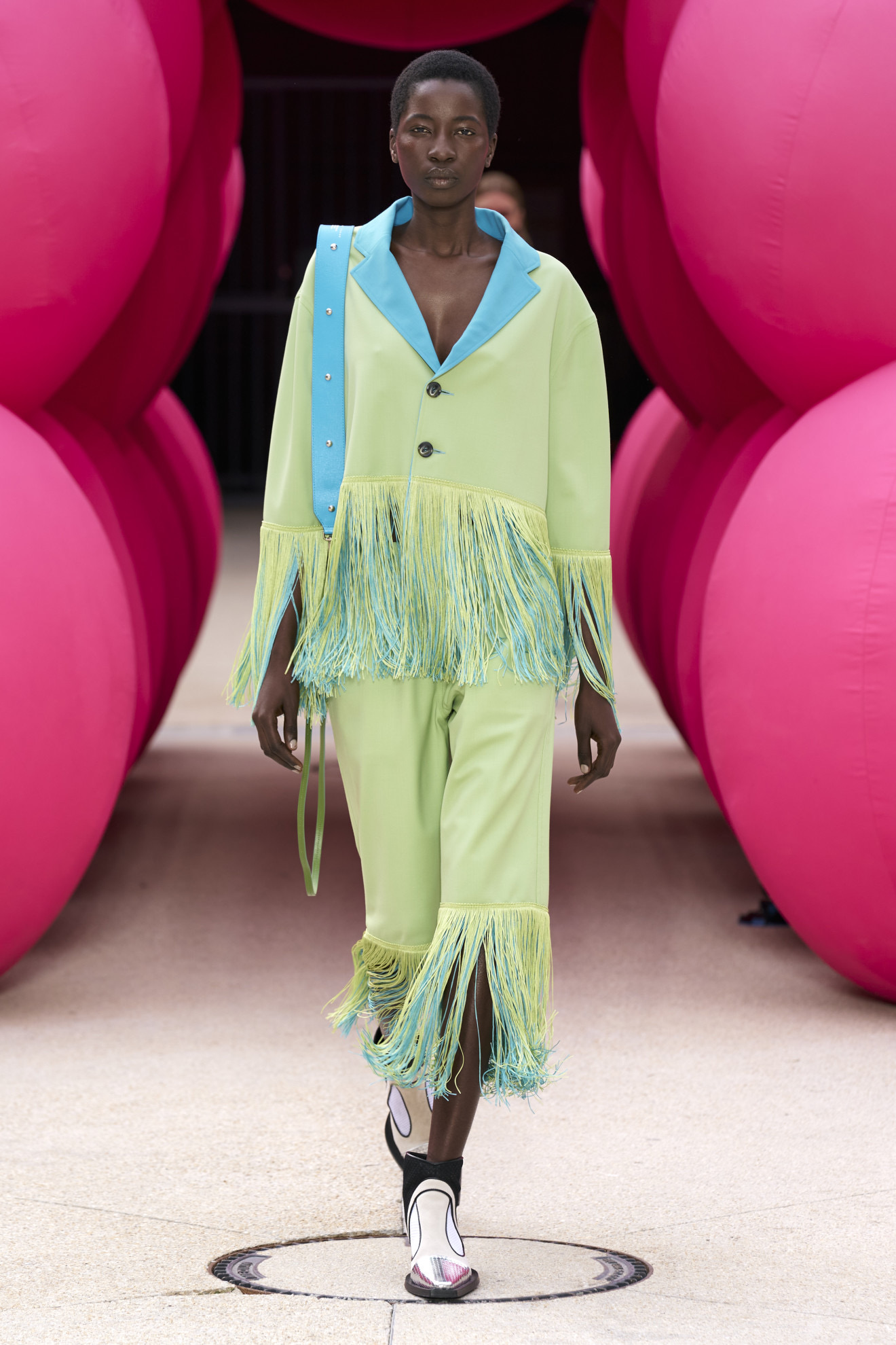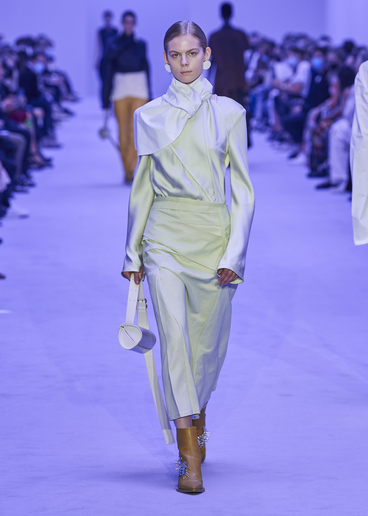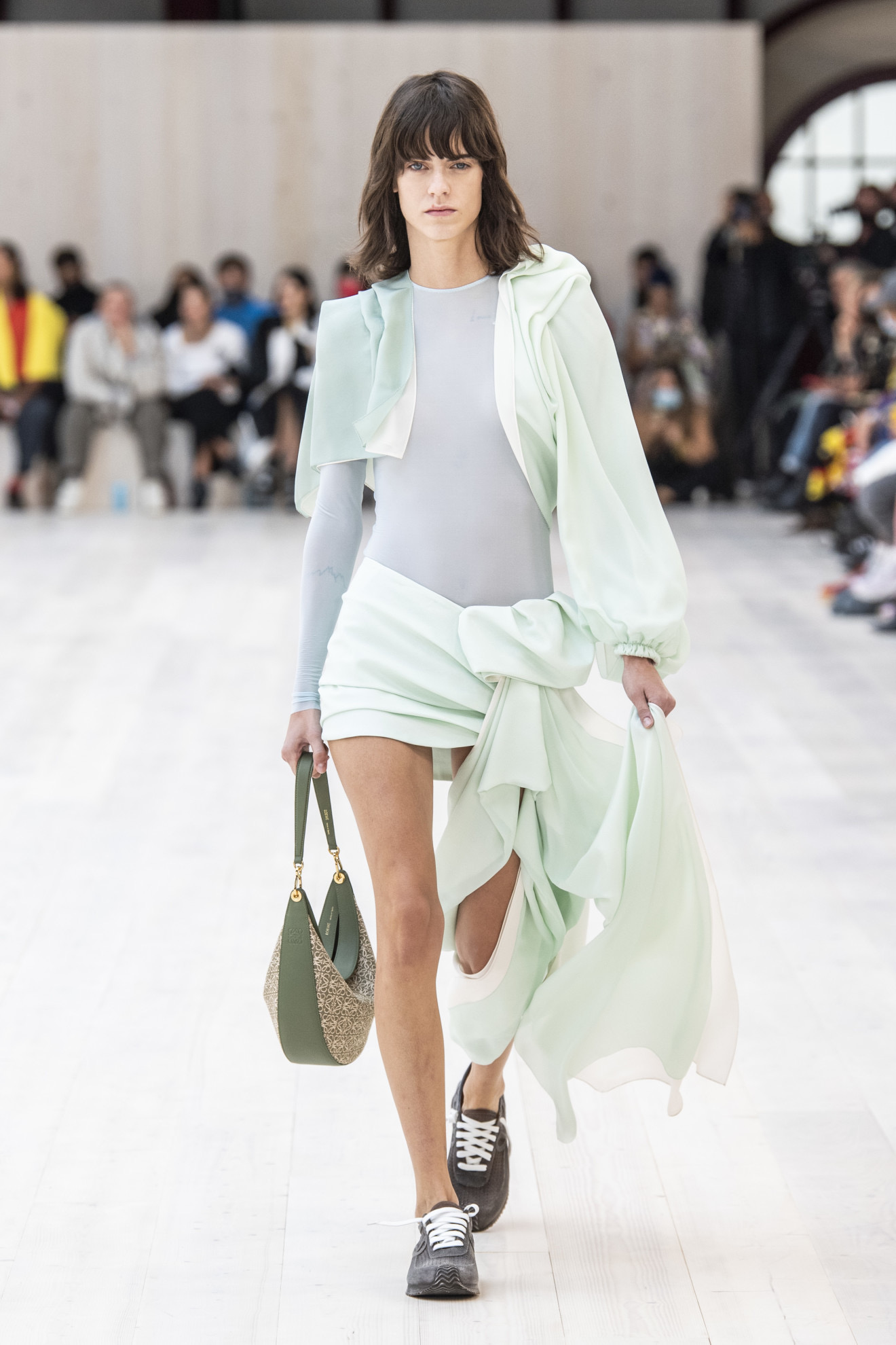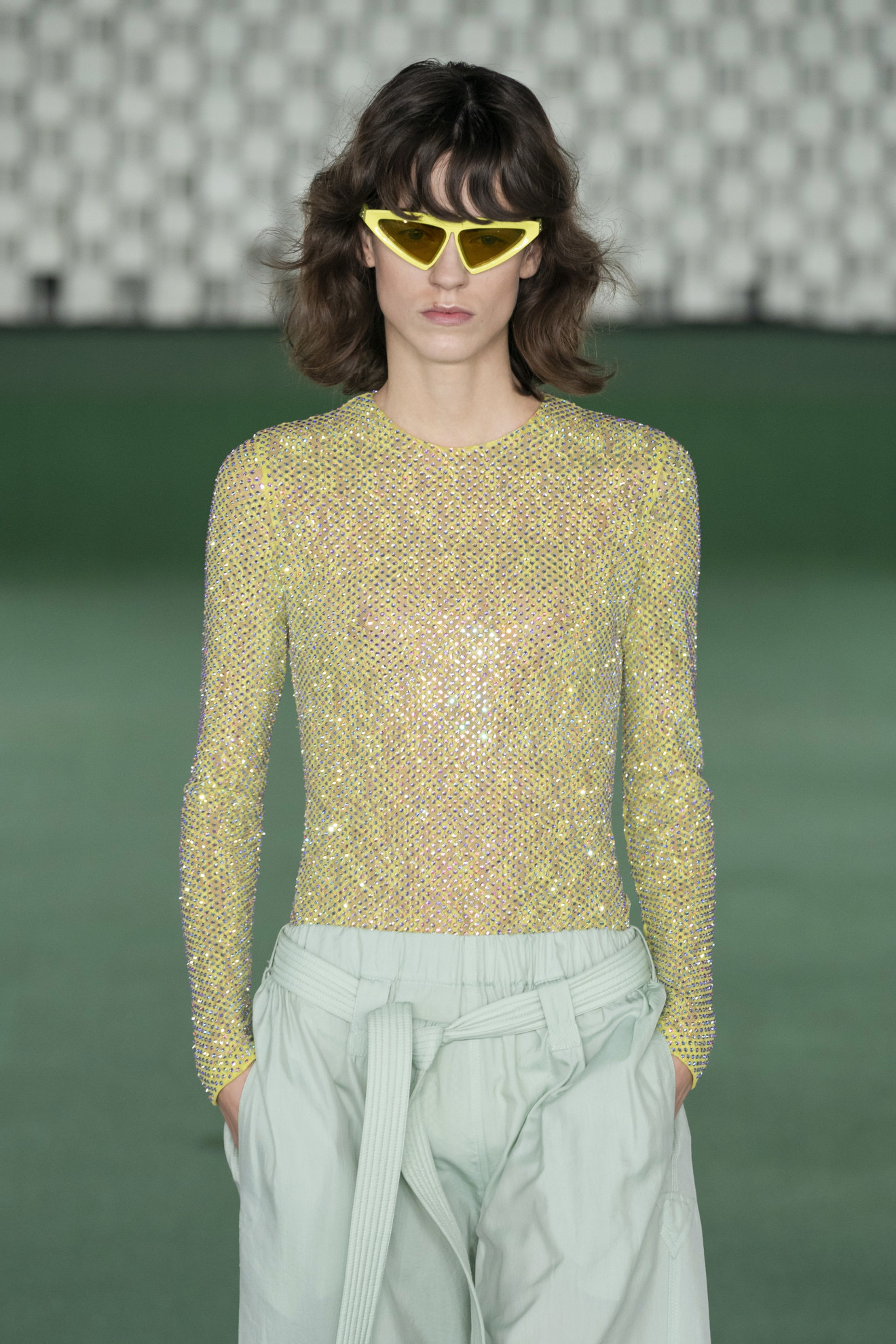It is not always the case that pastel and less saturated shades such as sage green have to be in combination at all costs. This ever-expanding new concept gives more value to influences and contaminations, from lightweight fabrics combined with eccentric appliqués, to daytime looks embellished with glittering glamorous details.