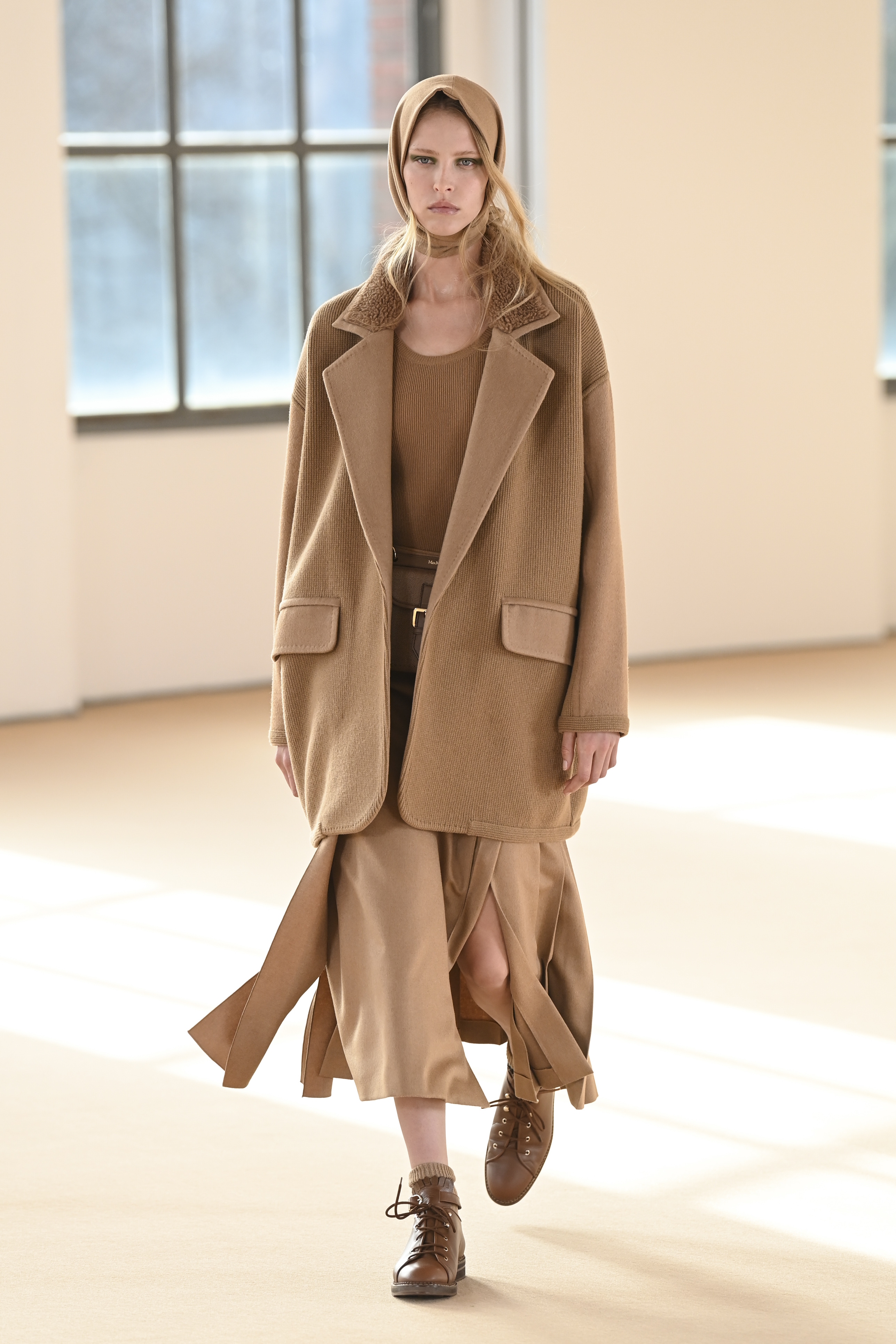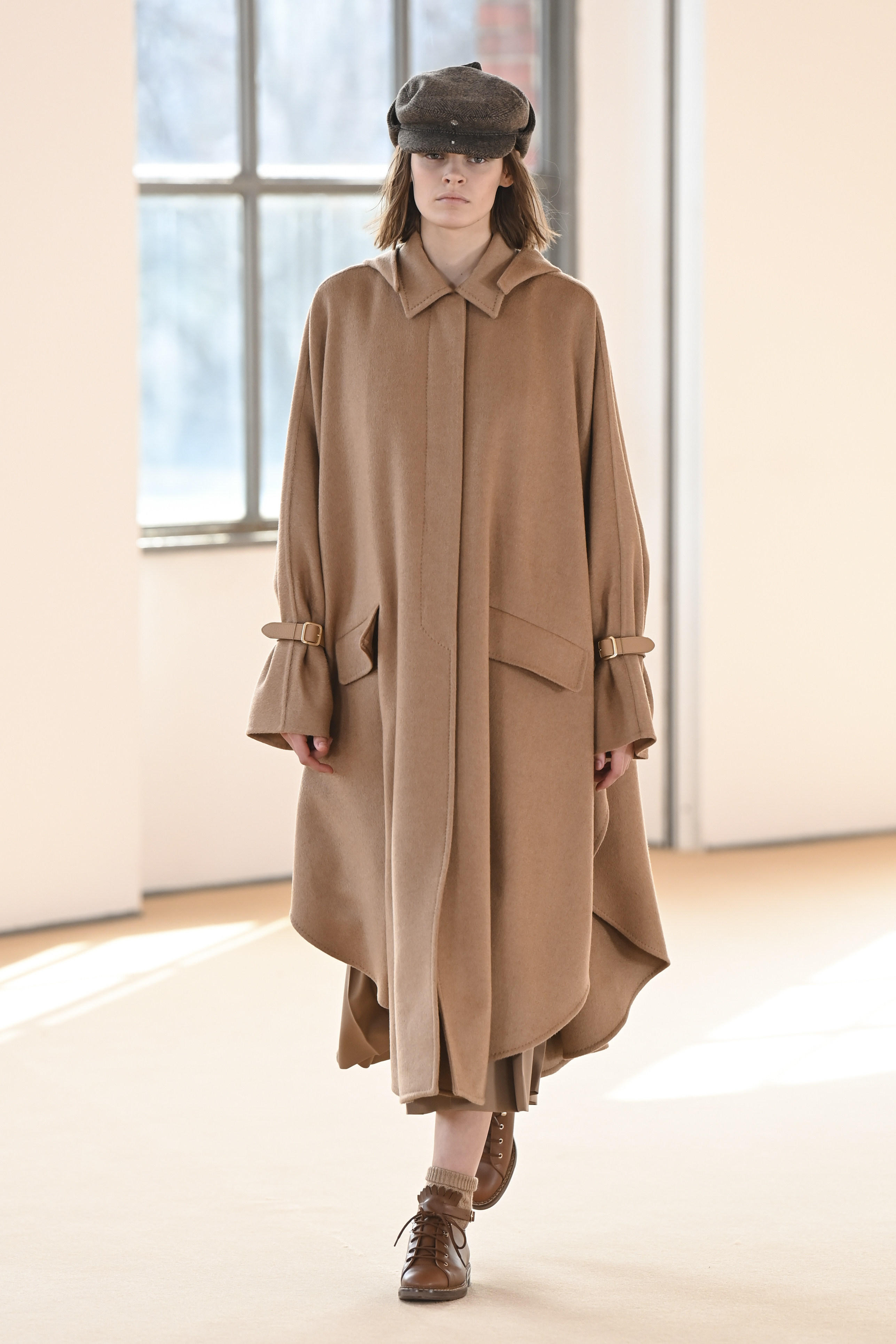 British style and Milanese attitude come together in the garments that dress the Max Mara woman for next Autumn / Winter. Like a queen, who perfectly embodies the stylistic codes of the English monarchy, the muse Max Mara walks the runway wearing the garments of the so-called Anniversary Collection, with an authentic and at times incredibly eccentric flavor. The new oversized bomber jackets and “thornproof” jackets in very soft alpaca and utility pockets, in the iconic shades of camel, black and the new entry in olive green, catch the eye. Combined with the outerwear there are kilts, to be worn with thick socks and lace-up shoes, oversized sweaters, pencil skirts with fringes and capes. Impeccable checkered tattersall suits, graphic tartans, velvet patches and elegant organza jabots. Among the new patterns there is certainly tartan, typically Scottish, softened by accessories such as scarves that delicately wrap the head, as Lady Diana would have done.