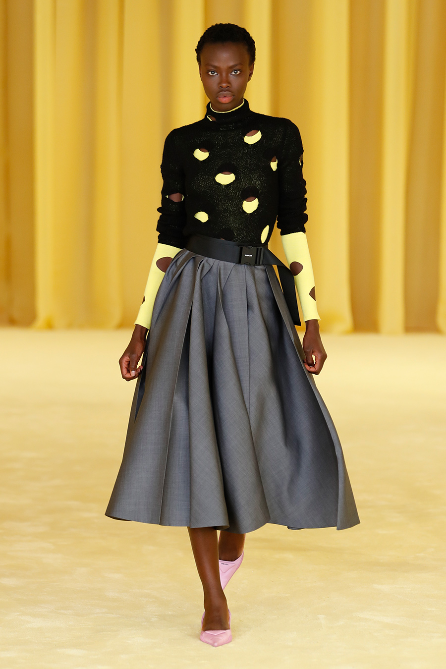 Digital debut for the newborn team formed by Miuccia Prada and Raf Simons. One thing must certainly be said, the show’s all-digital design is undoubtedly one of the most avant-garde seen so far during this MFW. Already a few days before the show on Prada’s Instagram profile, the message “If you could ask a question to Miuccia Prada and Raf Simons about their first show what would you ask?”. A whole new way to involve the public in this unusual twinning, to which the two designers would then answer with a press conference 2.0 after the show. And we certainly did not miss the conference! Surely, putting themselves at the service of the huge social audience was rather smart, the two were able to explain to a very wide audience the whys and how of this collaboration but not only, after a period of forced stop they were also able to give their own point of view on the panorama that lies ahead for the fashion universe. Now we would have a question though: are you sure you have achieved the perfect balance between your Miuccia and Raf stylistic codes? The feeling watching the show, probably deliberate, is that there is a lot of Raf inside this new SS 21 collection, obscuring, perhaps, the Prada’s iconic style. The textures and patterns are definitely those of Simons, even the Prada logo has been adapted to this new entrance, this time becoming large and, perhaps a little imposing, on prints with an industrial and streetwear mood. There are certainly some cuts from Prada: corollas midi skirts on tight-fitting Gruyere pullovers and kitten heels, almost unique protagonists of the entire shoe line. The two designers declared that they wanted to create an essential collection made of basic pieces that last over time. The longevity of garments is a post-pandemic topic that seems to have become even more dear to Miuccia, who spoke about sustainability and change during the conference. The result of all this is a clean cut to the superfluous decorations: the blouses are sleeveless and the straight trousers, the overcoats take up the Prada nylon re-edition line and the suits are in fleece. The mood of the entire collection, with the exception of the skirts, is very androgynous, which is why the man probably did not walk the runway, and the colors are all about optical white and black, with some hints of green, yellow and red. The outcome of this first show? We still have to think about it.