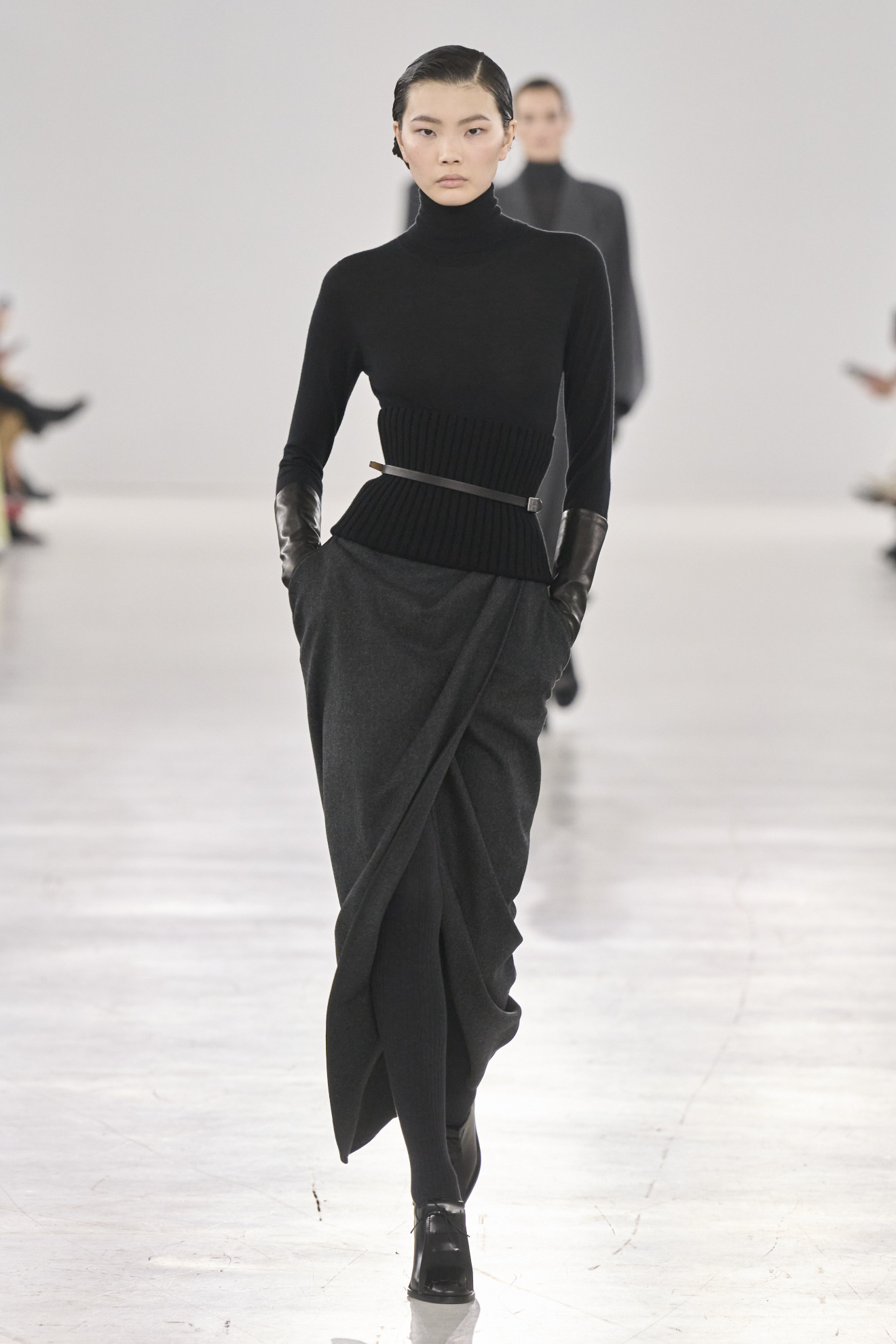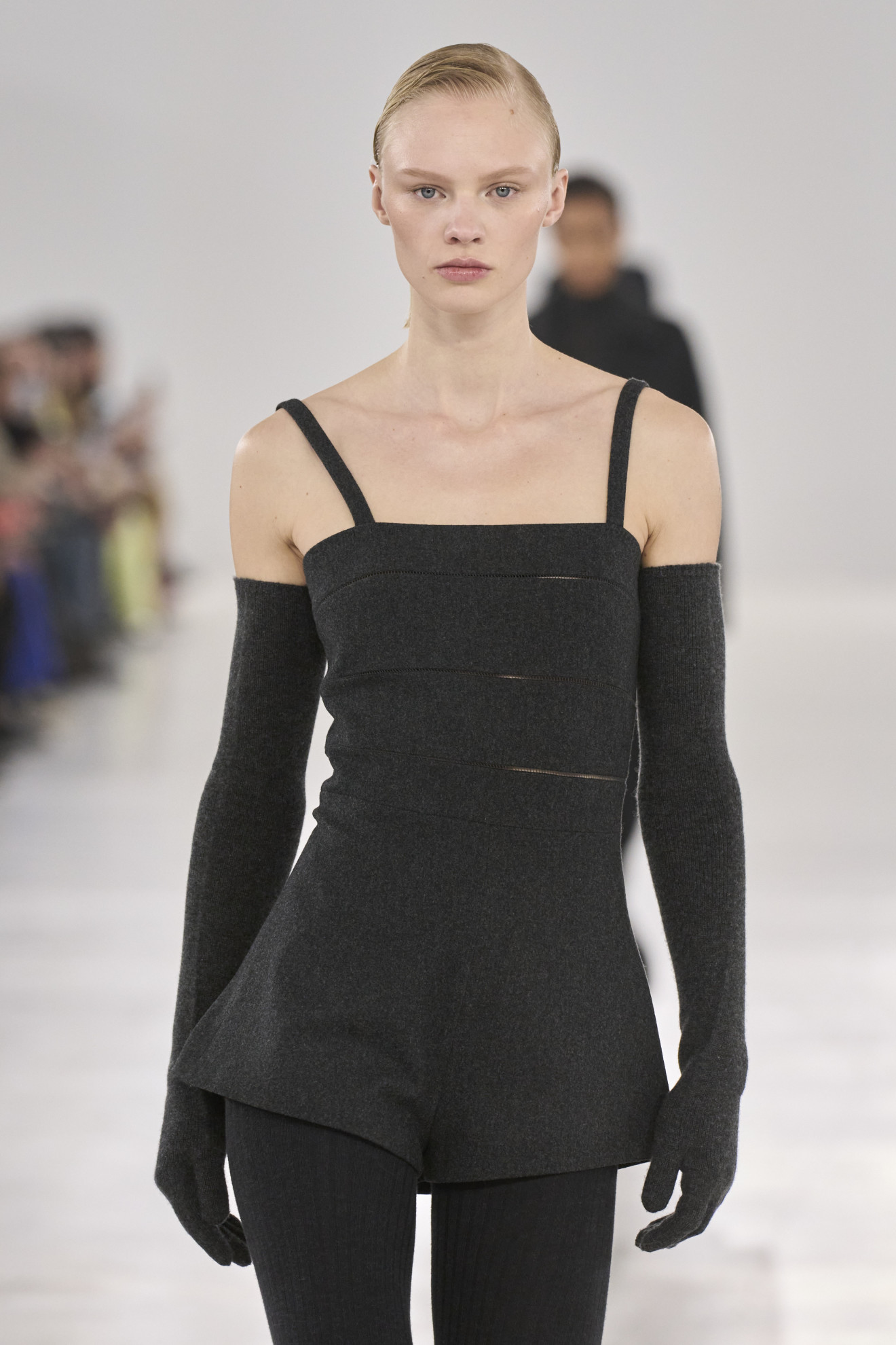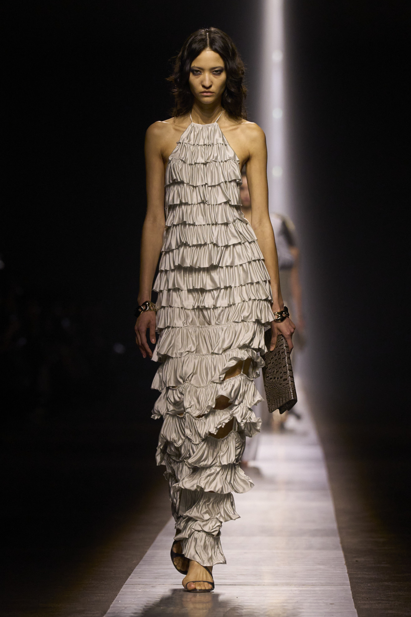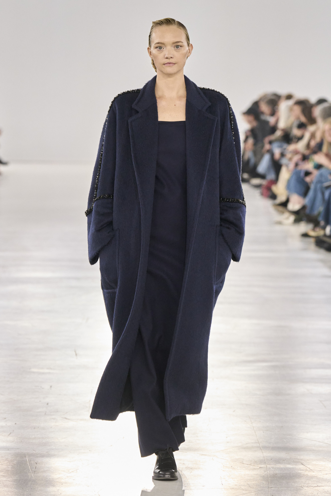 While Ford’s outrageous femininity gleamed on the runways, Max Mara embraced the maturity and experience of the modern woman. Ian Griffiths, the Creative Director, shaped his collection around the iconic figure of Colette, transforming minimalism into an expression of almost authorial sensuality. From tailored suits to oversized sweaters, each piece reflected the brand’s timeless elegance, embodying a message of freedom and authenticity.
