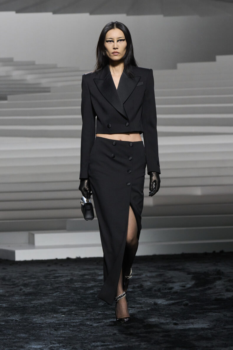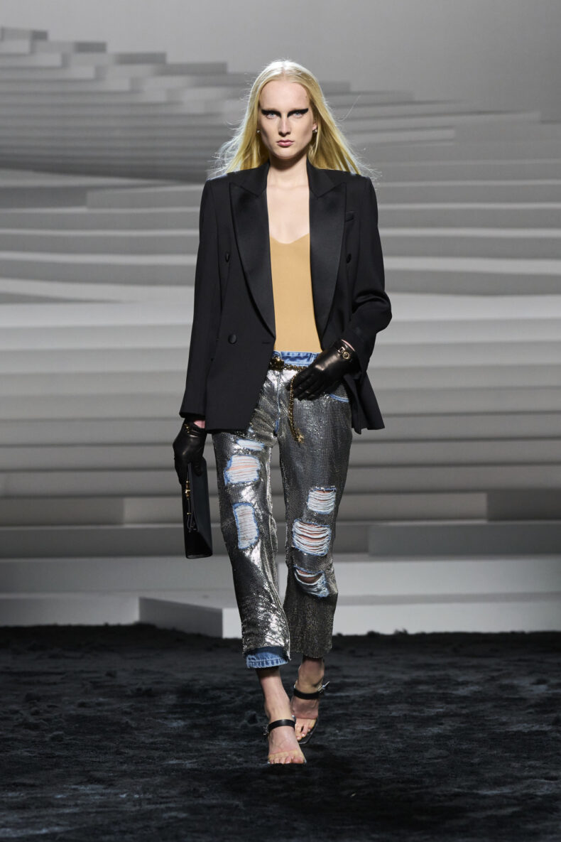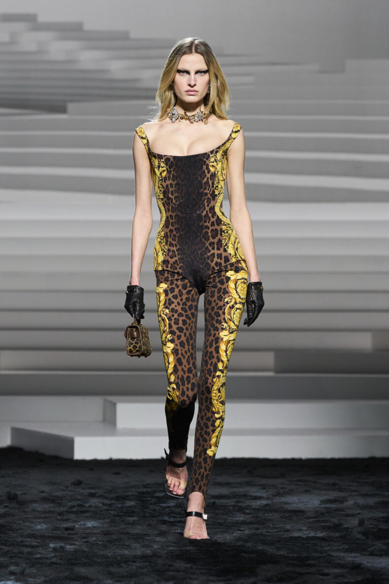Versace presented a collection that exuded confidence and boldness. The runway was characterized by punk hairstyles and heavy eyeliner, with a focus on details and fabric quality, featuring refined and finely crafted garments. The result was a sophisticated and sought-after collection that showcased a Maison keeping pace with the times and ready to conquer new frontiers of the fashion system.
