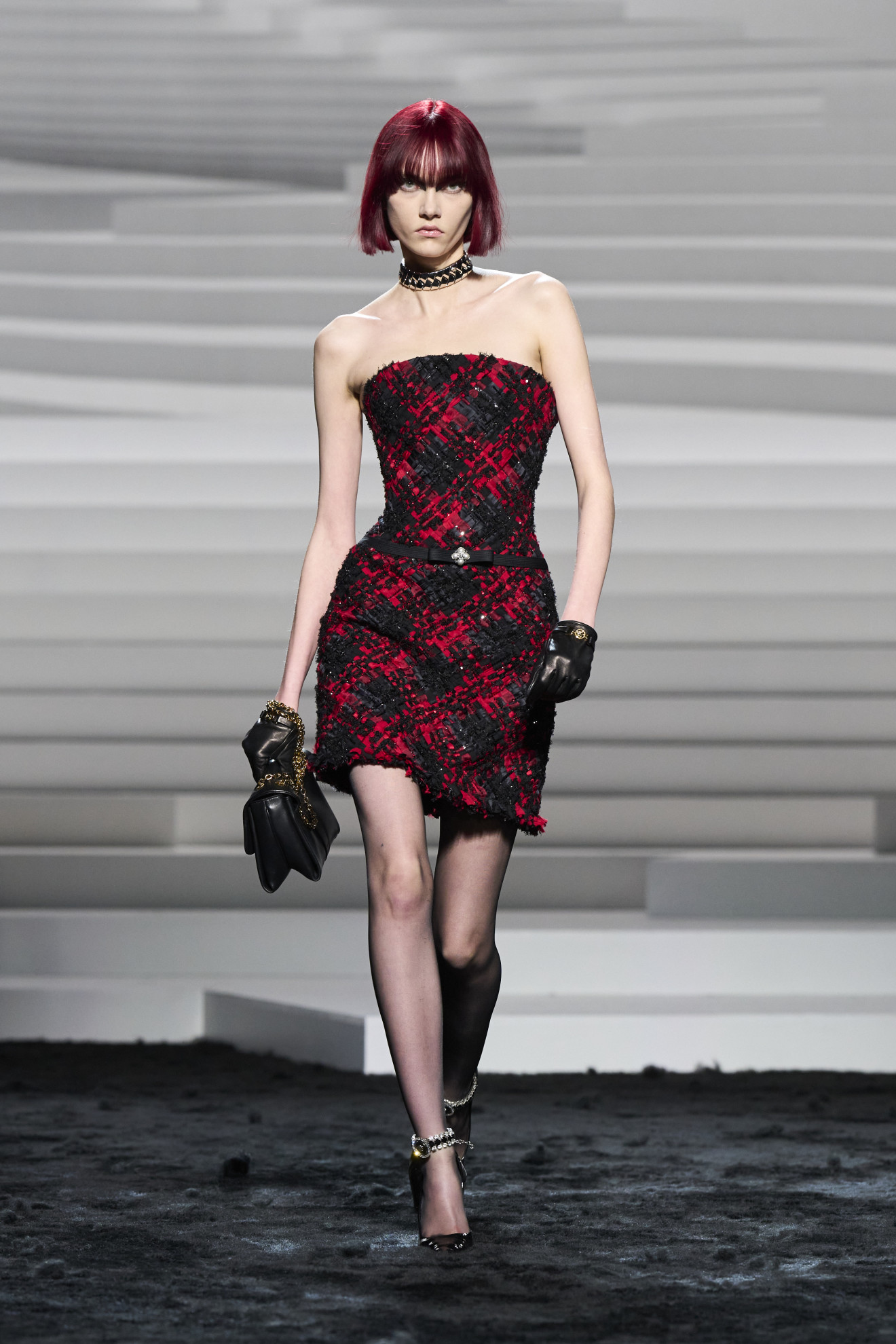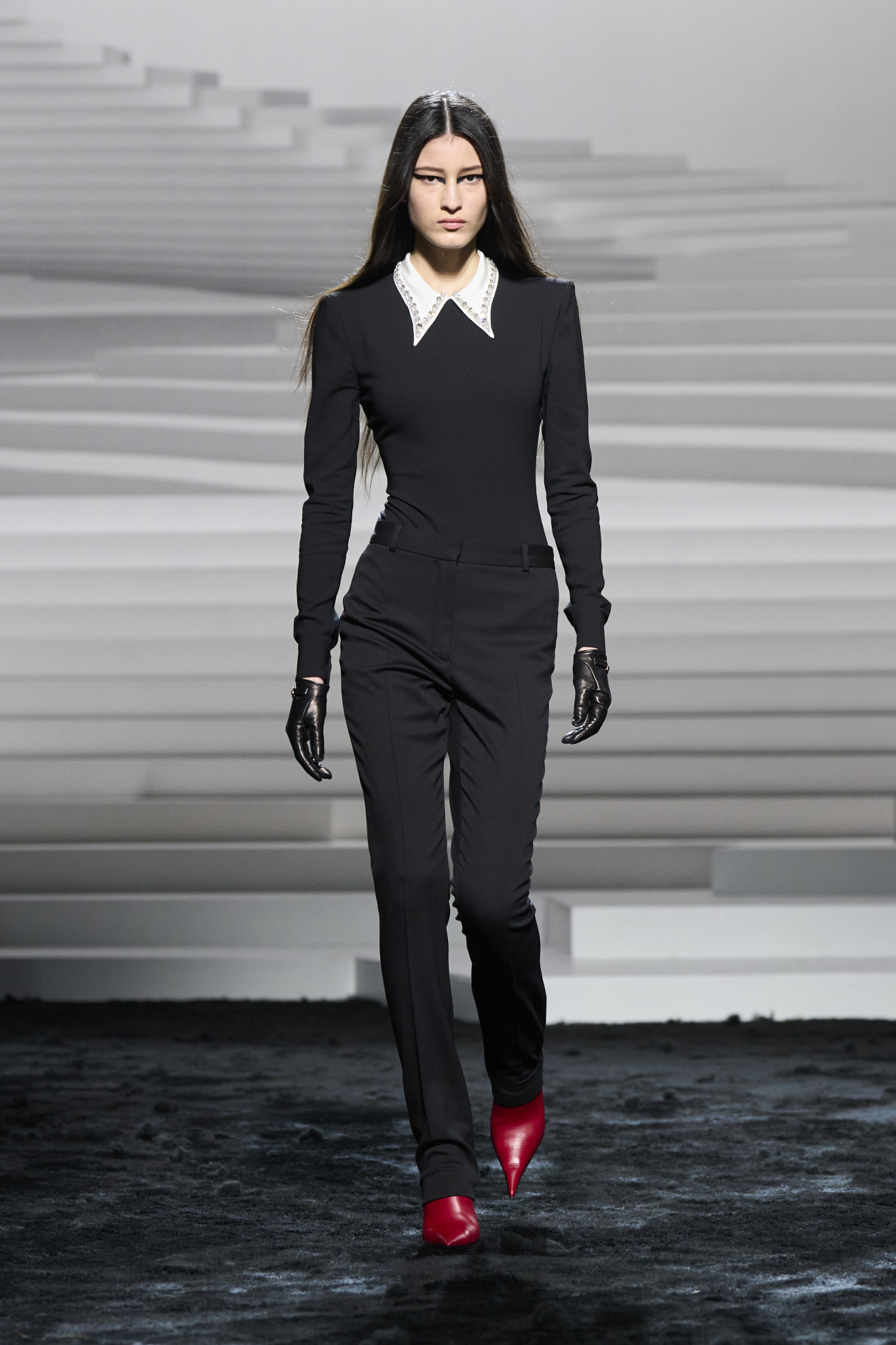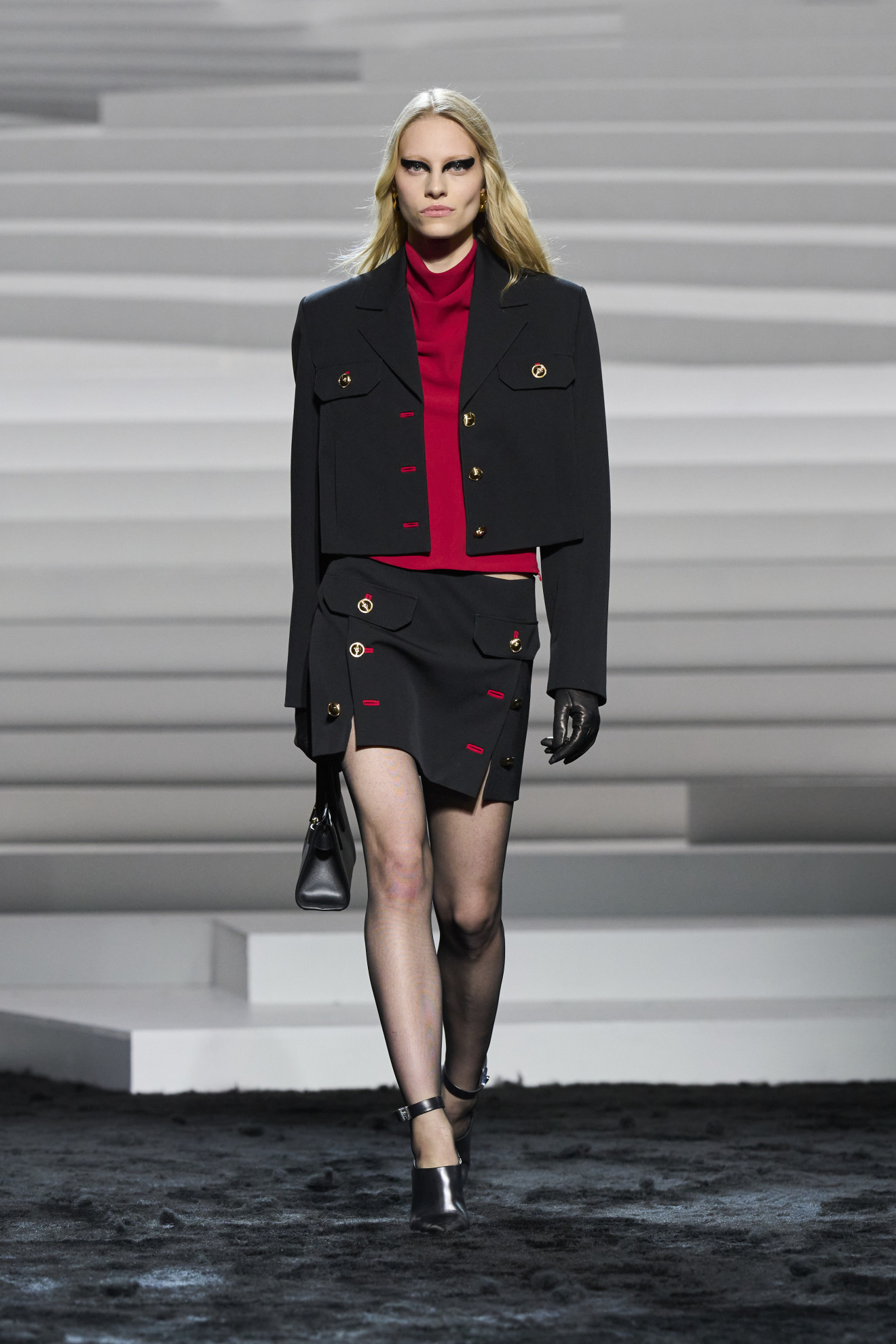 Versace presented a collection that exuded confidence and boldness. The runway was characterized by punk hairstyles and heavy eyeliner, with a focus on details and fabric quality, featuring refined and finely crafted garments. The result was a sophisticated and sought-after collection that showcased a Maison keeping pace with the times and ready to conquer new frontiers of the fashion system.