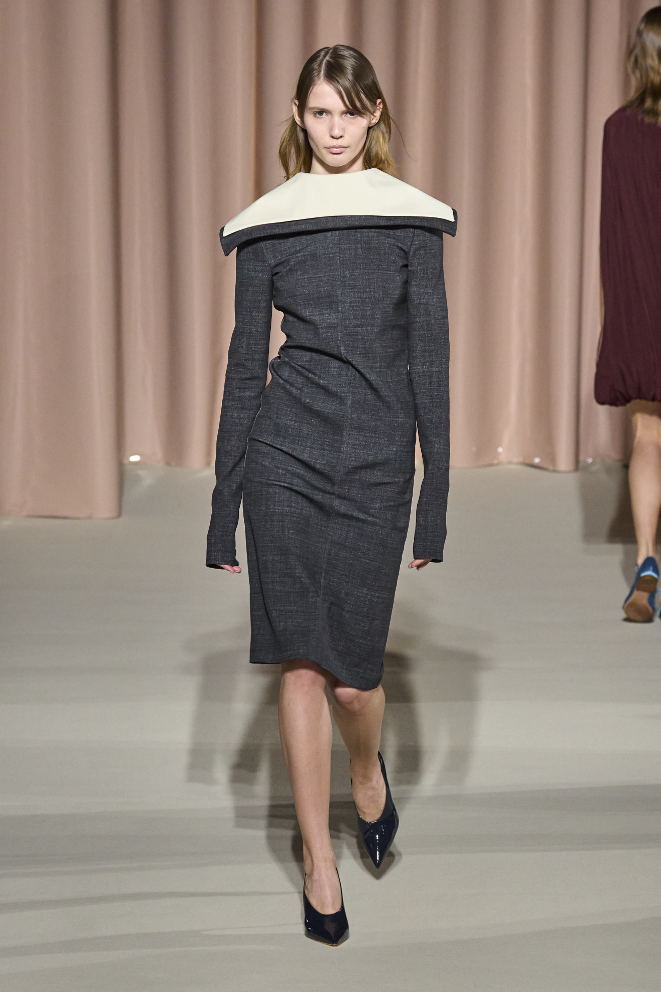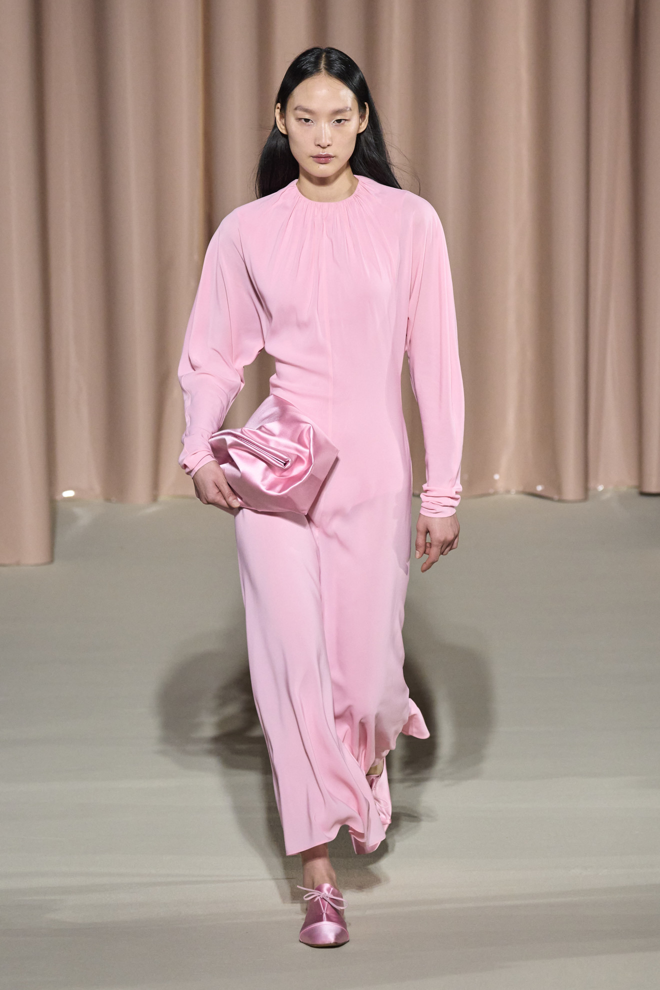 Finally, Lorenzo Serafini’s Philosophy reinterpreted the 1950s through voluminous shapes and innovative materials, creating a modern yet sophisticated aesthetic. The collection played with contrasts between rigid and fluid fabrics, with delightful touches of color. The garments were presented in a runway show that evoked a sense of nostalgia and romance, with timeless elegance.