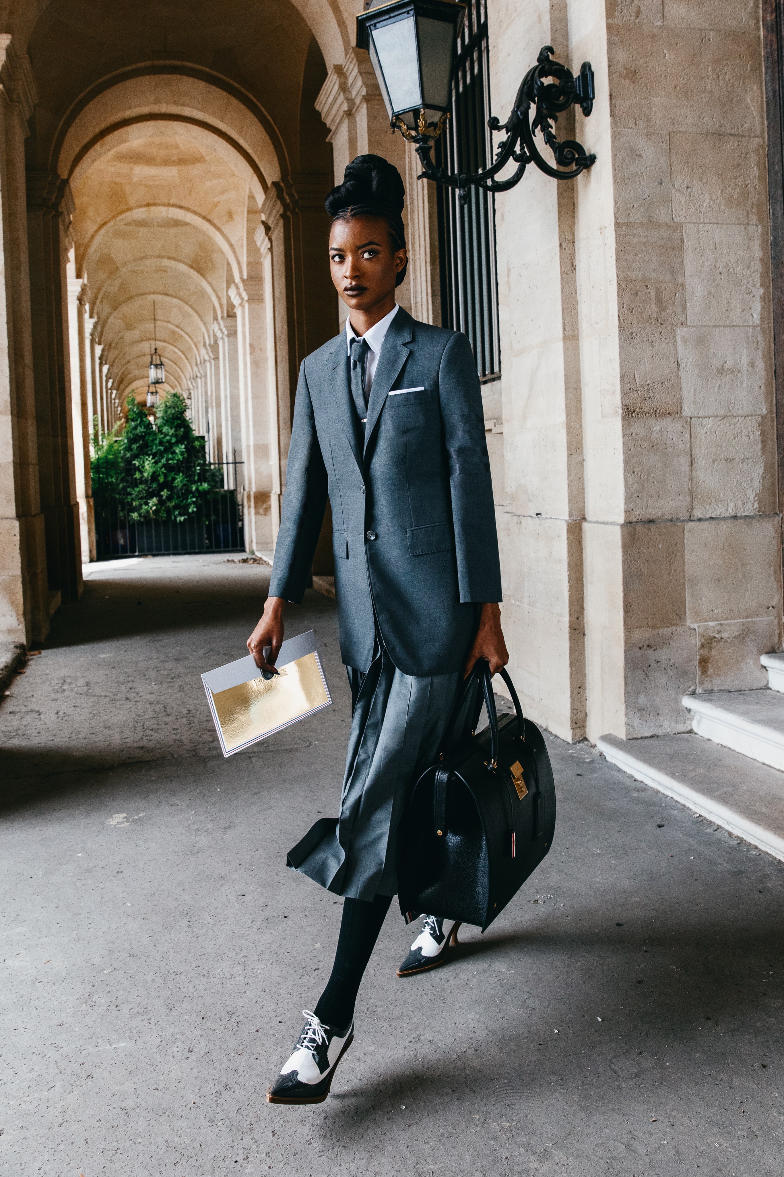 The woman in a tie, almost a tribute to the most revolutionary French designer of all time: Coco Chanel. The tie as the symbol par excellence of a new and modern vision of woman, finally free and independent from classic niceties. In this way, Thom Browne continues to spread a progressive idea of women’s fashion, capable of constantly looking ahead, always pushing the boundaries of fashion.
