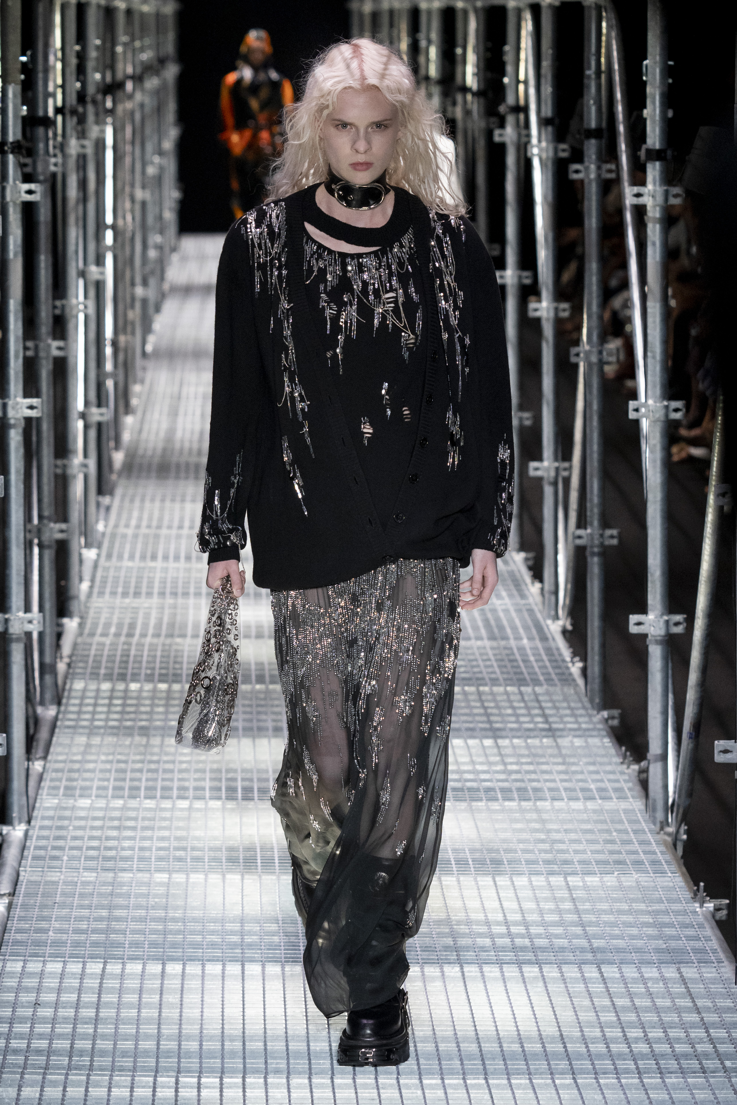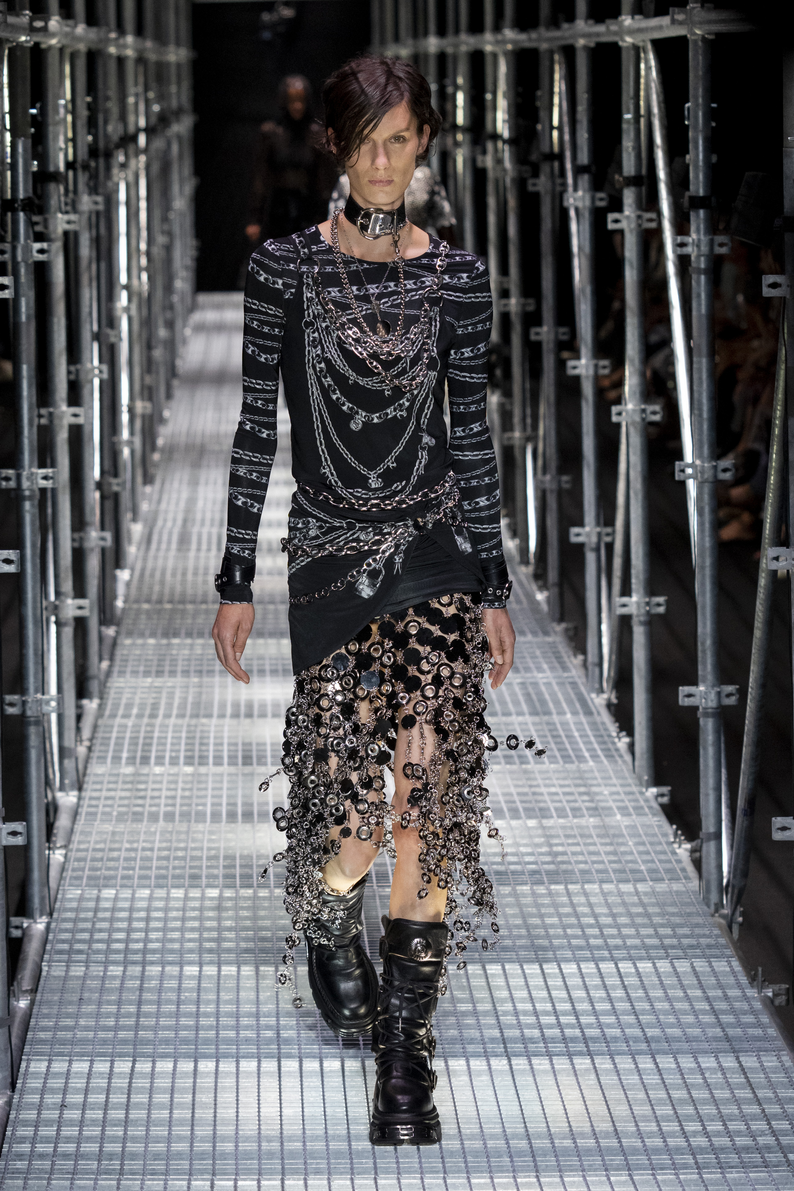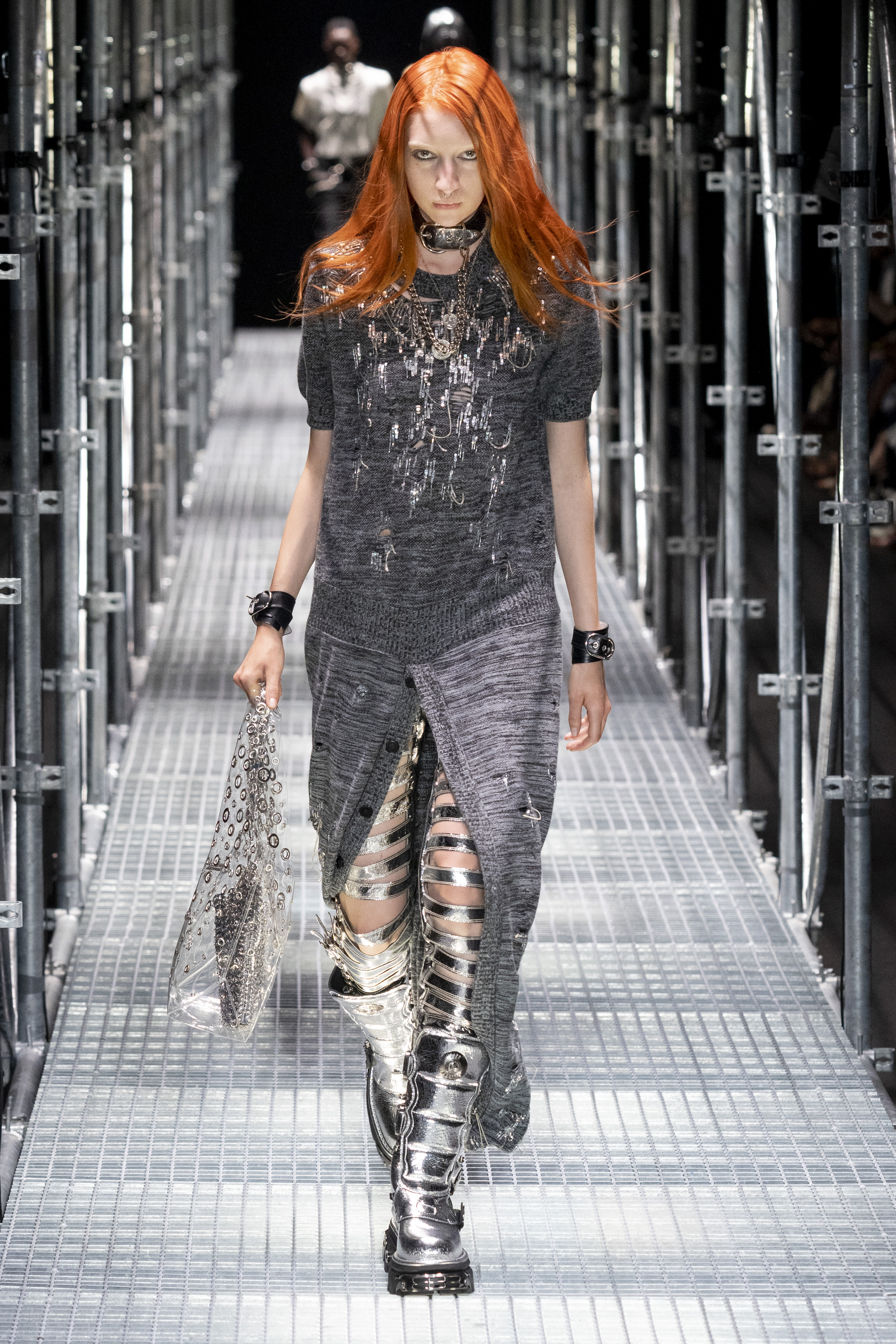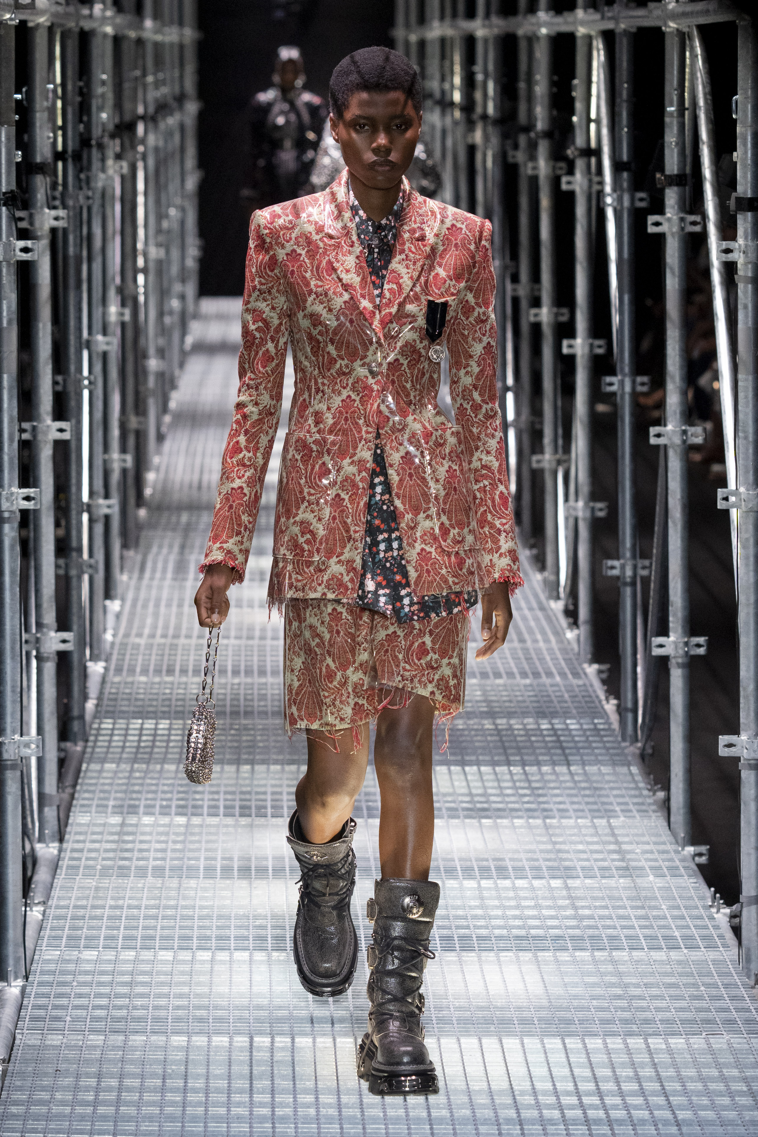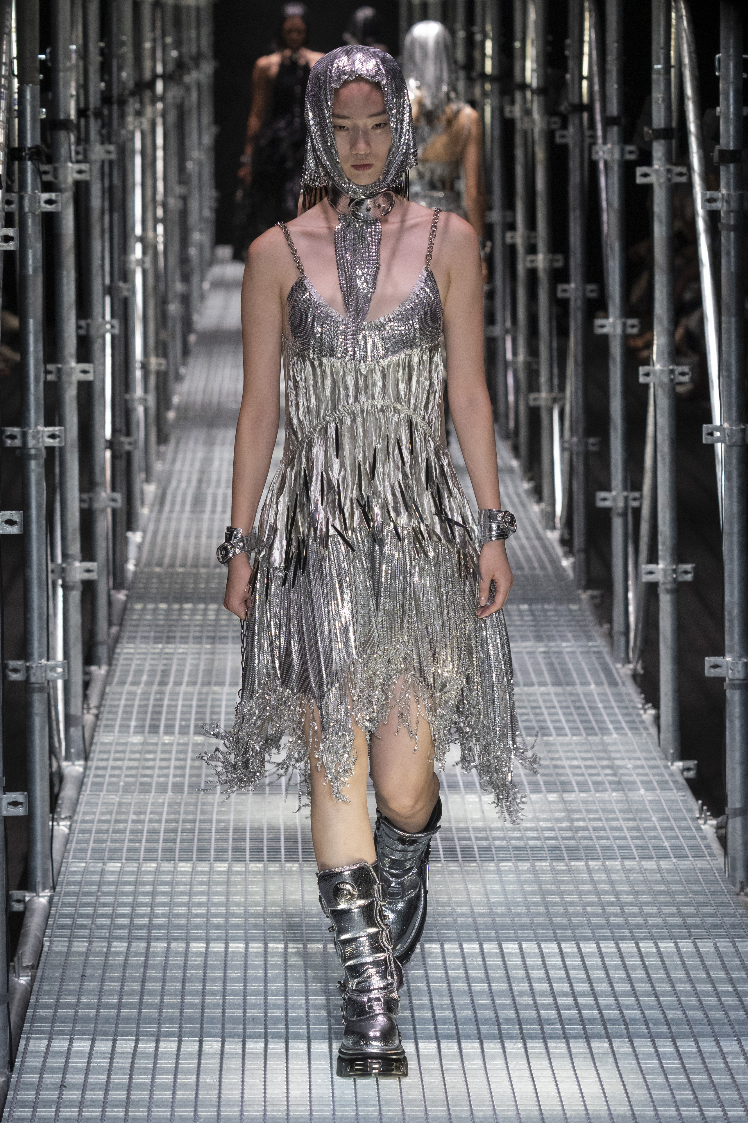 The context in which this collection is set leads us to much more authentic reflections, the Rabanne universe is well represented but takes on new meanings. The catwalk – reminiscent of the metal scaffolding typically used in construction – certainly has a strong metaphorical meaning. A message that probably has every intention of leading us to an important question: what will happen, what will the recovery look like and how difficult will it be to rebuild our society?