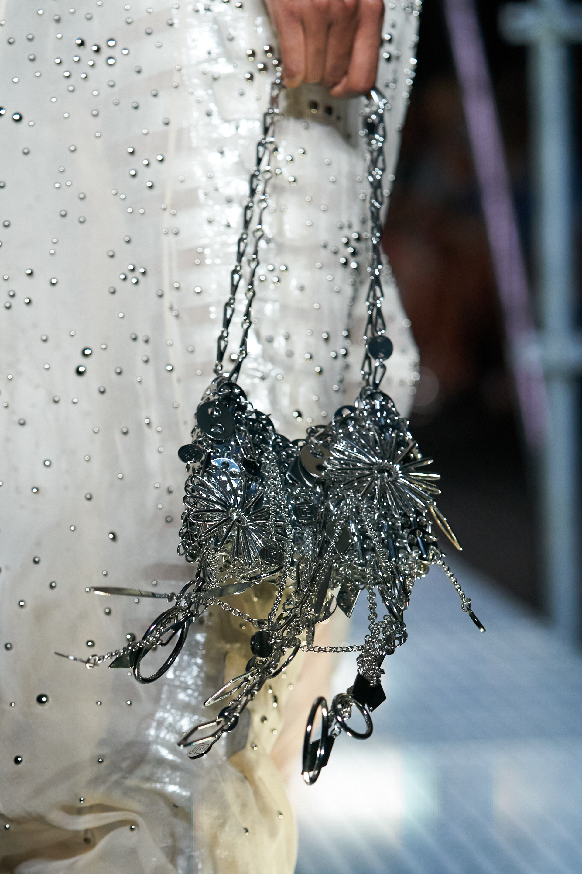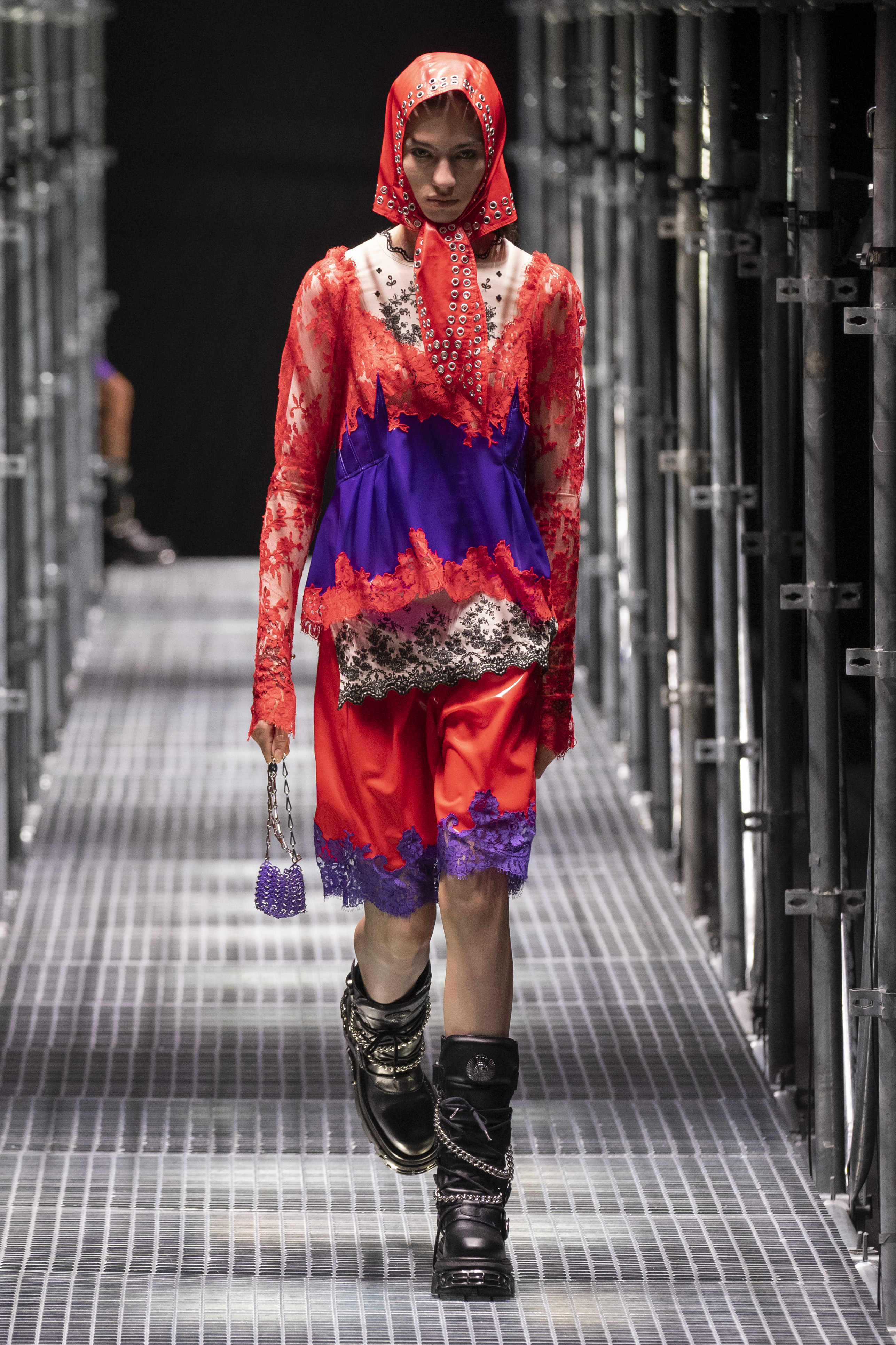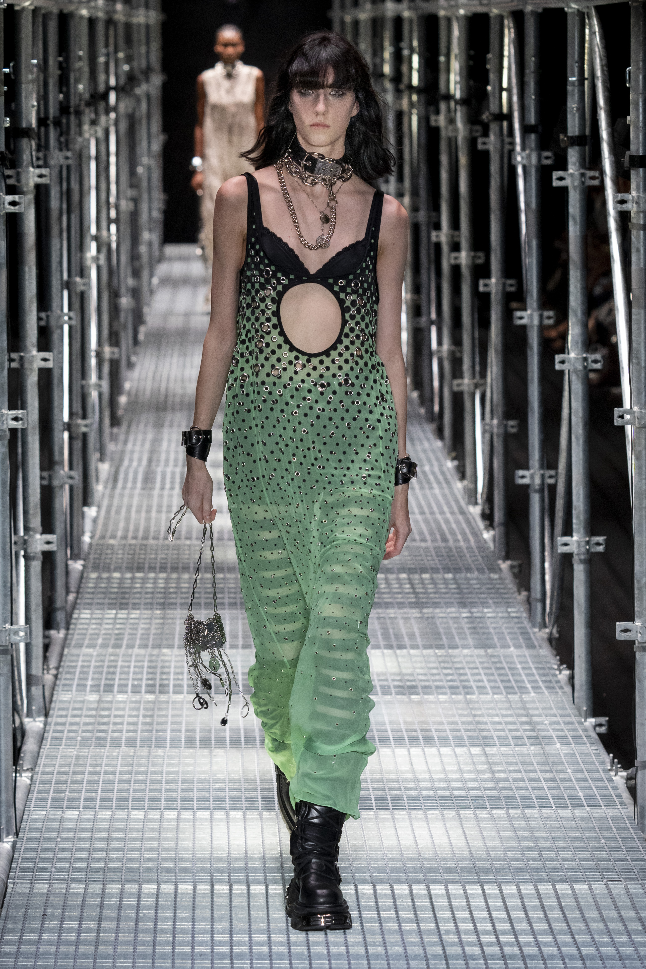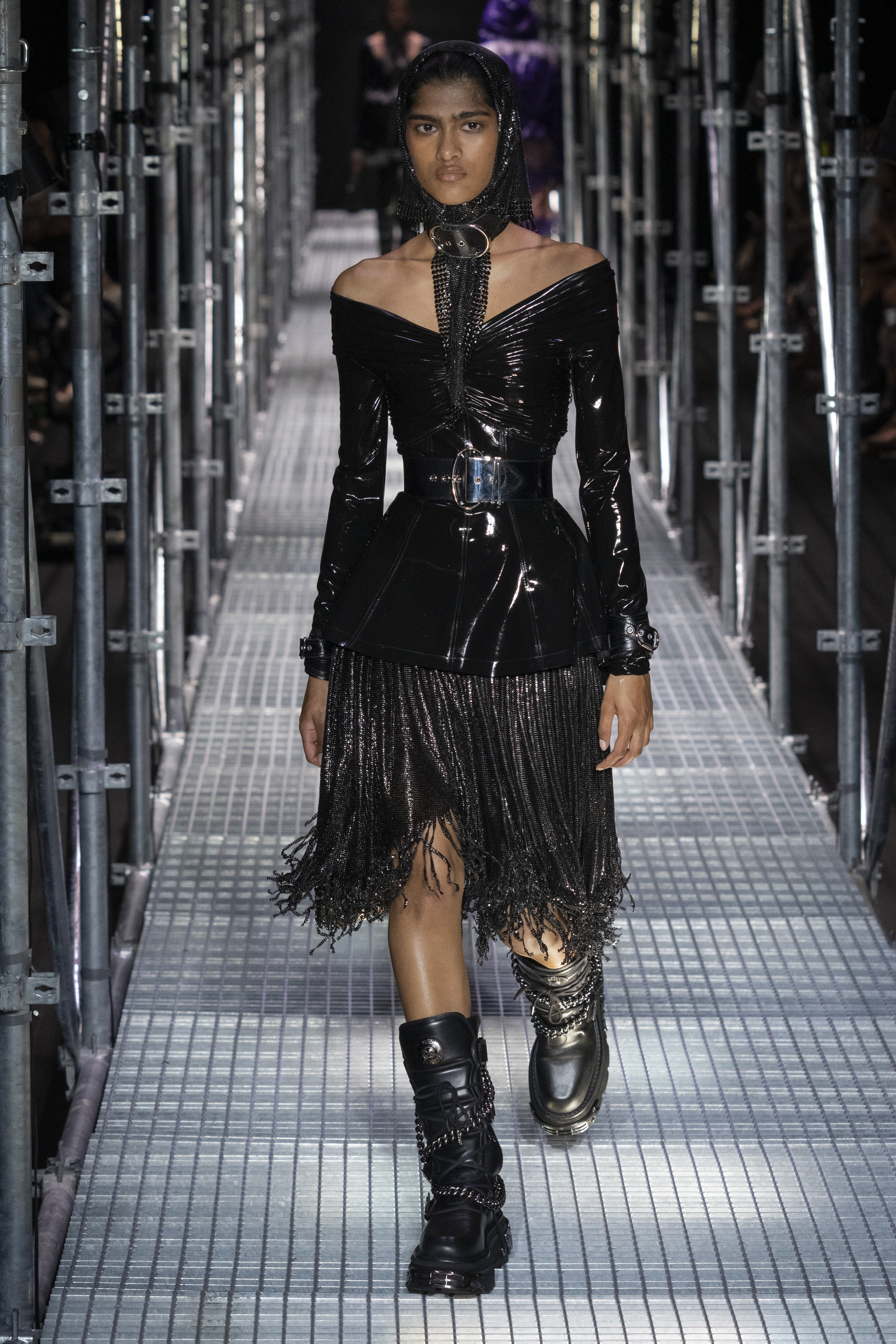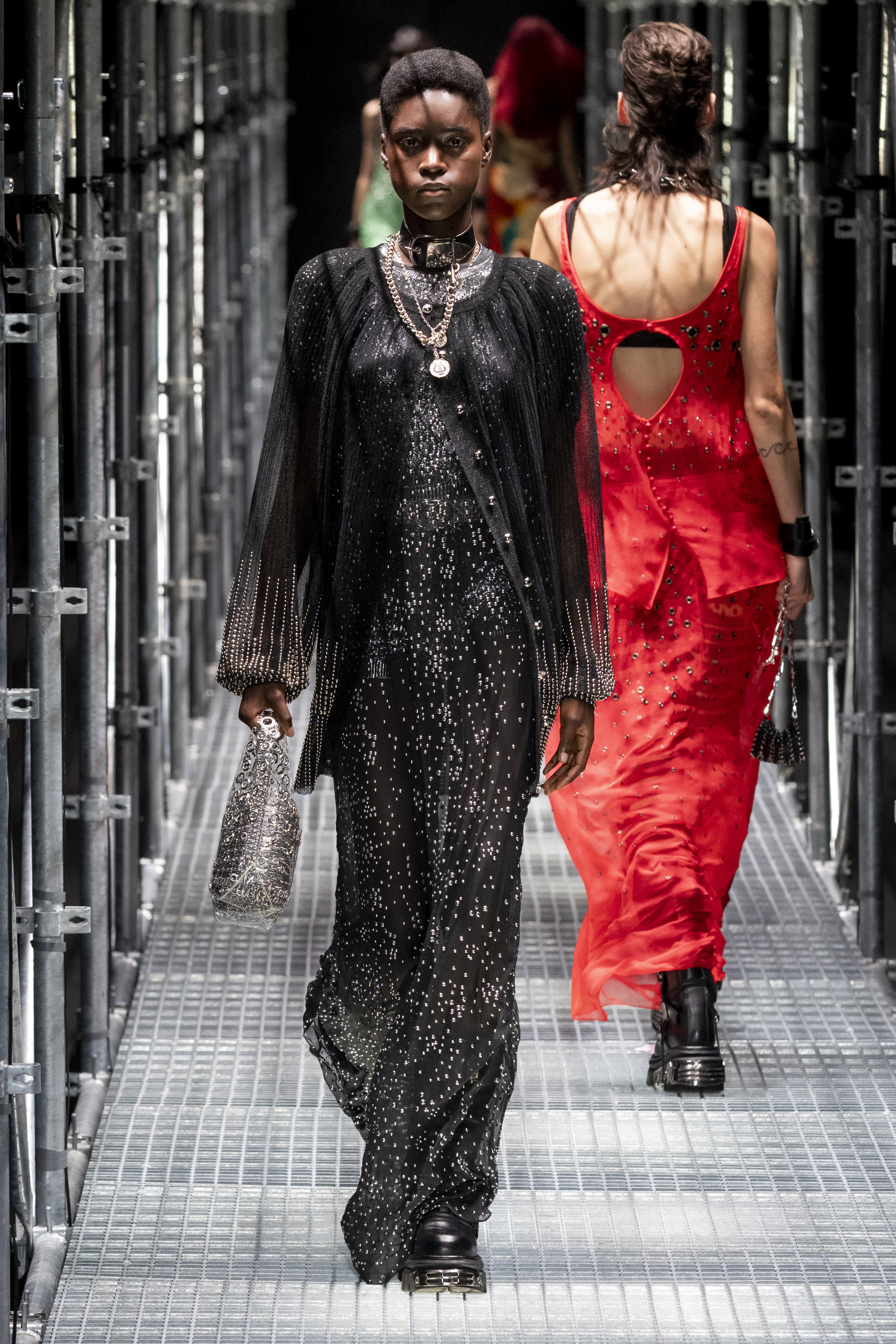 The context in which this collection is set leads us to much more authentic reflections, the Rabanne universe is well represented but takes on new meanings. The catwalk – reminiscent of the metal scaffolding typically used in construction – certainly has a strong metaphorical meaning. A message that probably has every intention of leading us to an important question: what will happen, what will the recovery look like and how difficult will it be to rebuild our society?