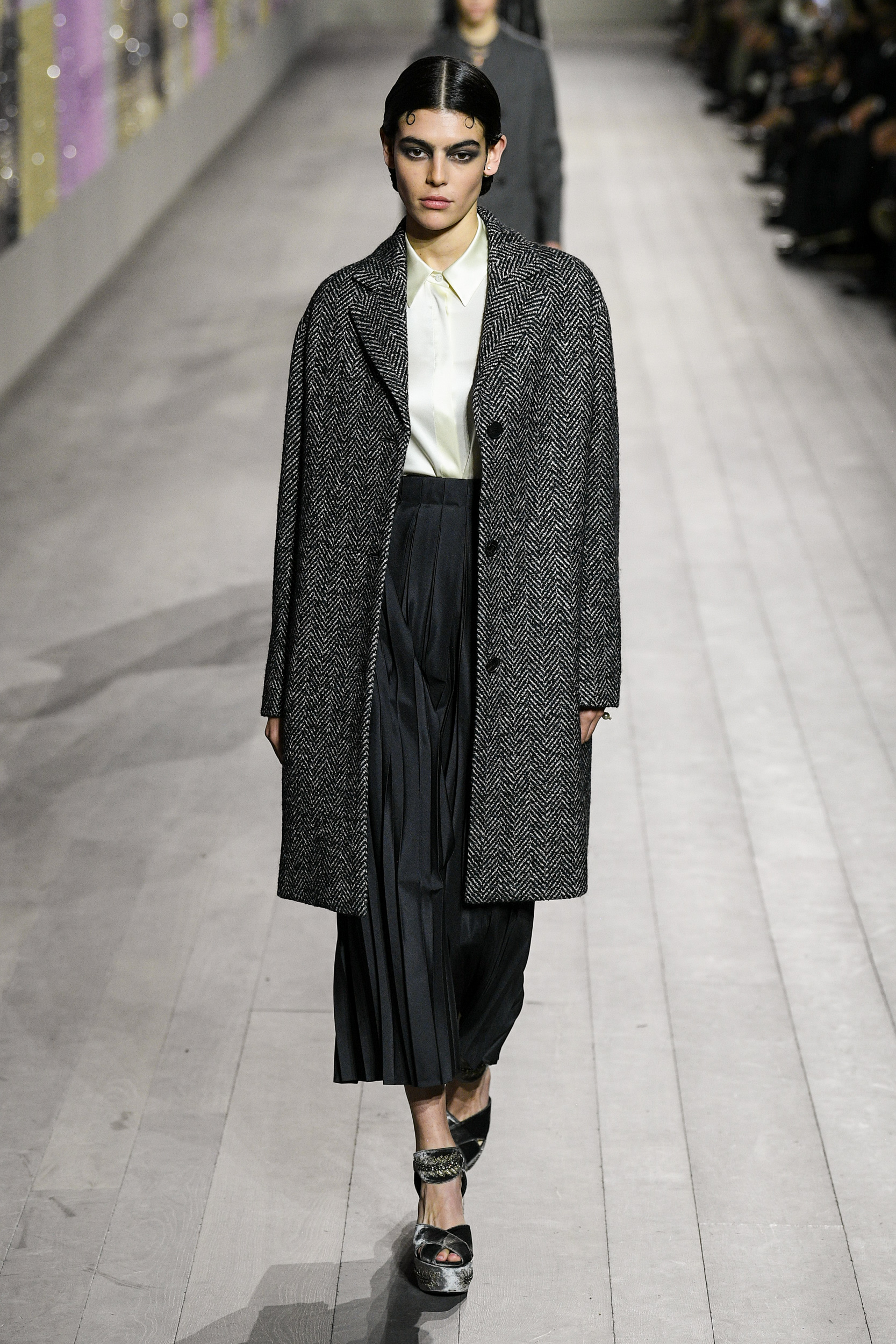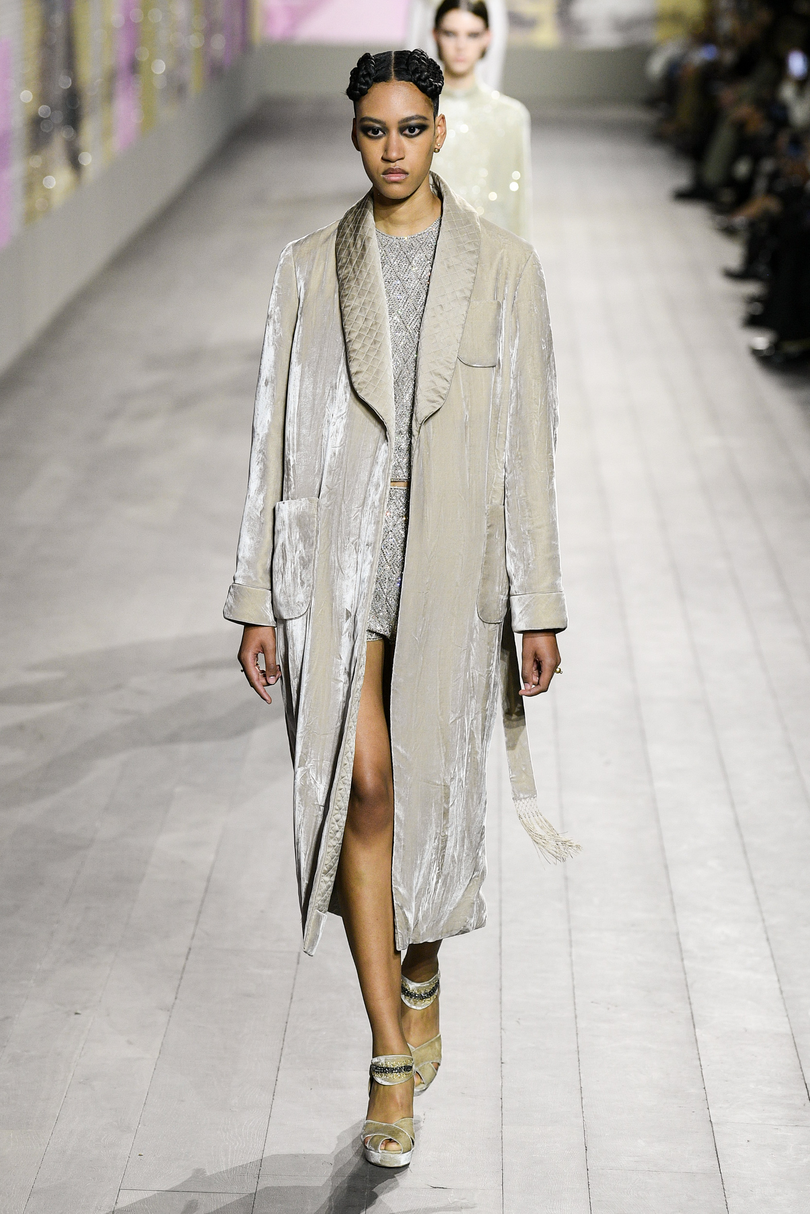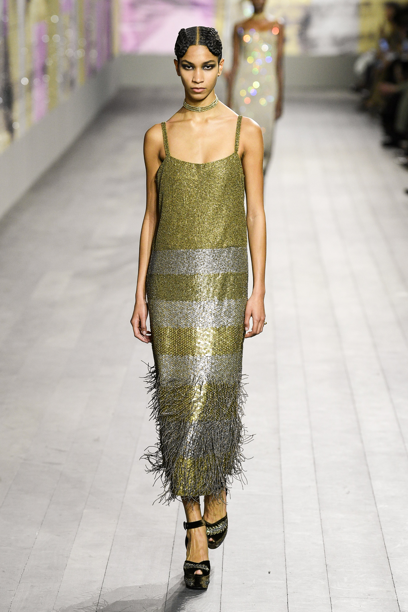 The dresses seem to literally caress the silhouette of the models on the catwalk, amidst silk and velvet, embroidery, precious details and fringes. The trousers, on the other hand, are strictly loose and soft, precisely because the general mission remains absolute lightness. We find the uniqueness of Monsieur Dior in the coats and suits, created strictly with fabrics from the classic male wardrobe. This Haute Couture collection is a journey through time, a tribute to Joséphine Baker – singer, African-American dancer who arrived in Paris from America in the mid 1920s. This character was chosen precisely because she embodied – in those years – the perfect ideal of modernity.