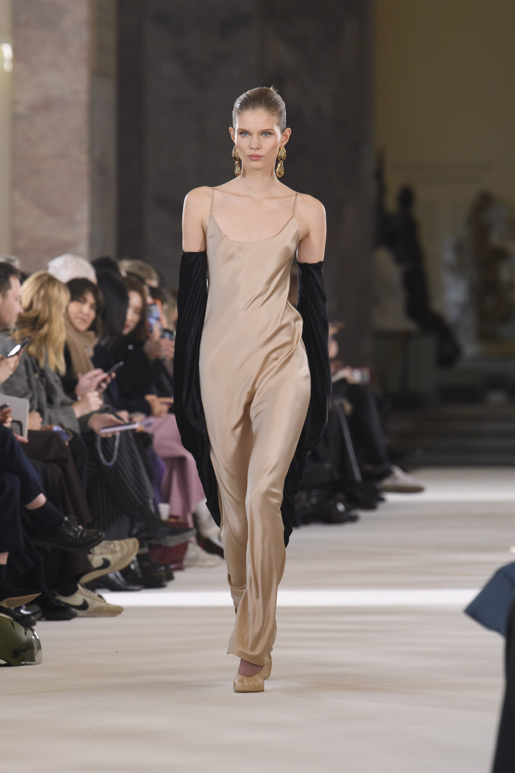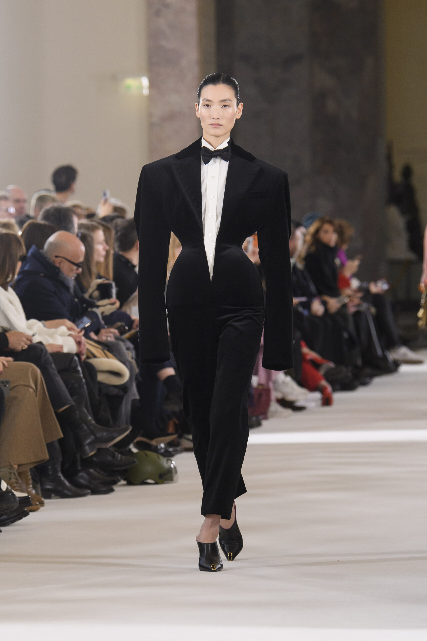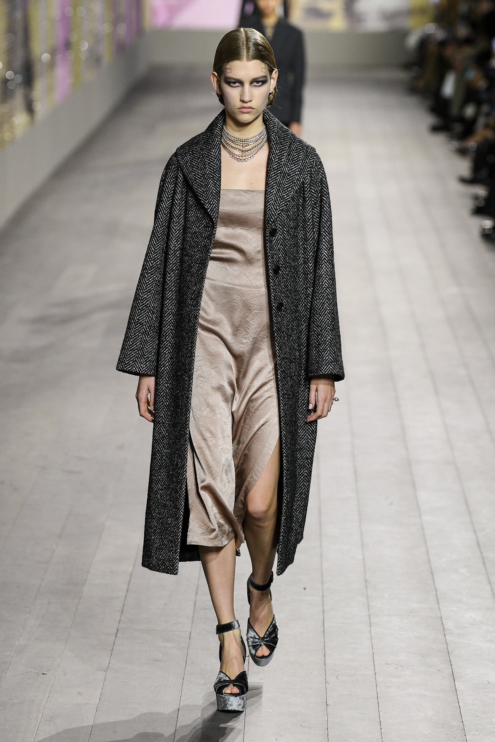 The dresses seem to literally caress the silhouette of the models on the catwalk, amidst silk and velvet, embroidery, precious details and fringes. The trousers, on the other hand, are strictly loose and soft, precisely because the general mission remains absolute lightness. We find the uniqueness of Monsieur Dior in the coats and suits, created strictly with fabrics from the classic male wardrobe. This Haute Couture collection is a journey through time, a tribute to Joséphine Baker – singer, African-American dancer who arrived in Paris from America in the mid 1920s. This character was chosen precisely because she embodied – in those years – the perfect ideal of modernity.