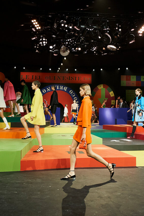 The 1960s of the Roman Piper club, their trapeze lines on miniskirts and dresses with dizzying lengths, the bright colors, gave an unprecedented light to the Avenue Montagne Maison yesterday. Maria Grazia Chiuri reinterpreted and interpreted the style of Marc Bohan, the creative director of the Maison who, in those years, revolutionized the Dior wardrobe with magnetic reds, greens, yellows, oranges, and blues. Chiuri brings back the revolution of those years on her SS22 show. One-color suits of cropped jackets and miniskirts, denim coord suits that wink at the male wardrobe, vinyl overcoats to combine with over-the-knee boots. The fit changes, it goes from being hyper-feminine to genderless with shorts and over-boxer jackets for looks that encourage immediacy. The gentle touch is given by bright fringes on dresses and tops to be worn with gladiator sandals that never cease to remember how femininity and independence go hand in hand at Dior.