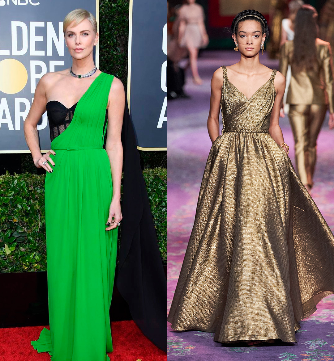 Who says Charlize Theron says gold, so why not giving it a throwback and dress her in gold Dior? This is the dress that we think should Charlize wear at the Oscars to be defined no ifs and buts: ICONIC