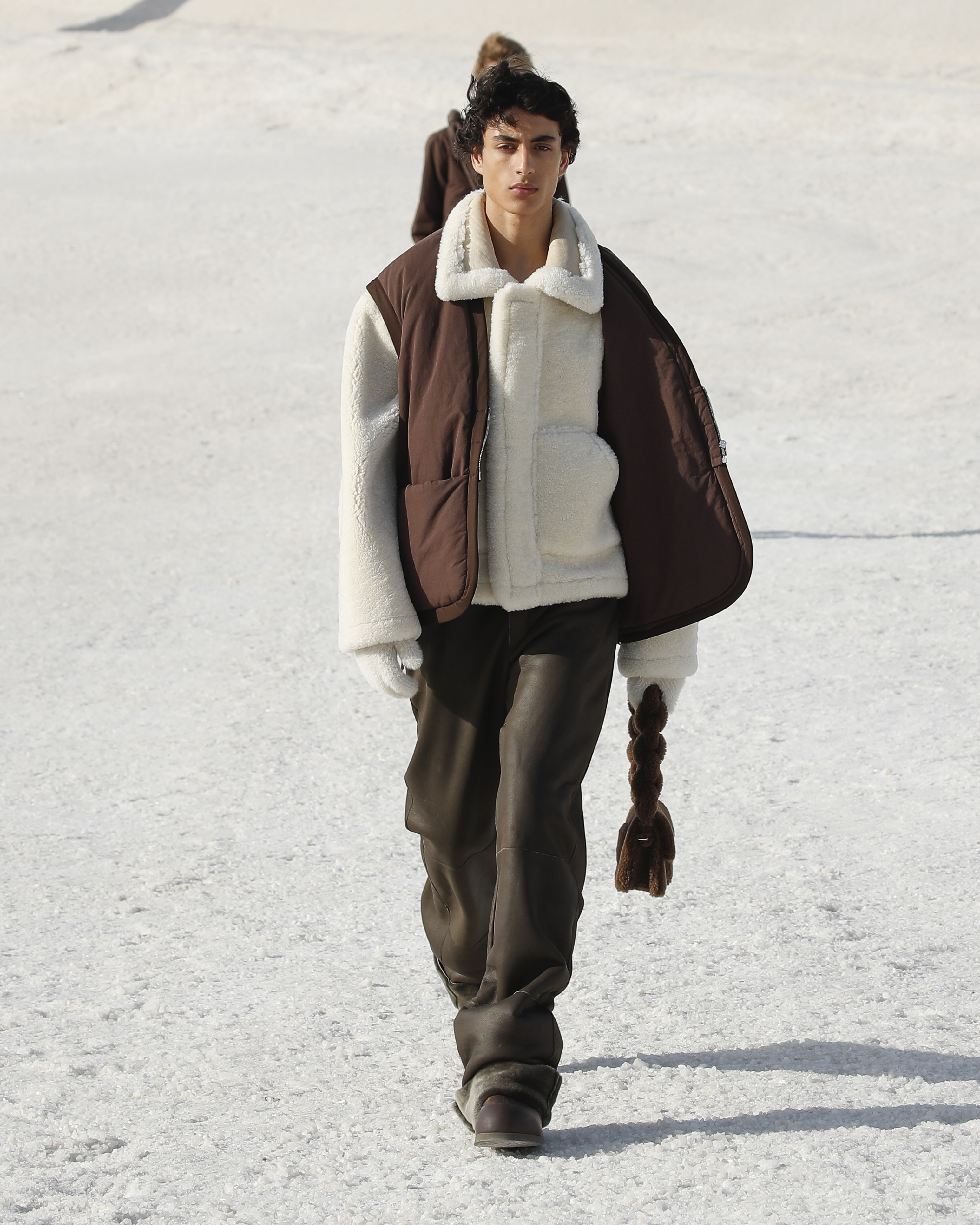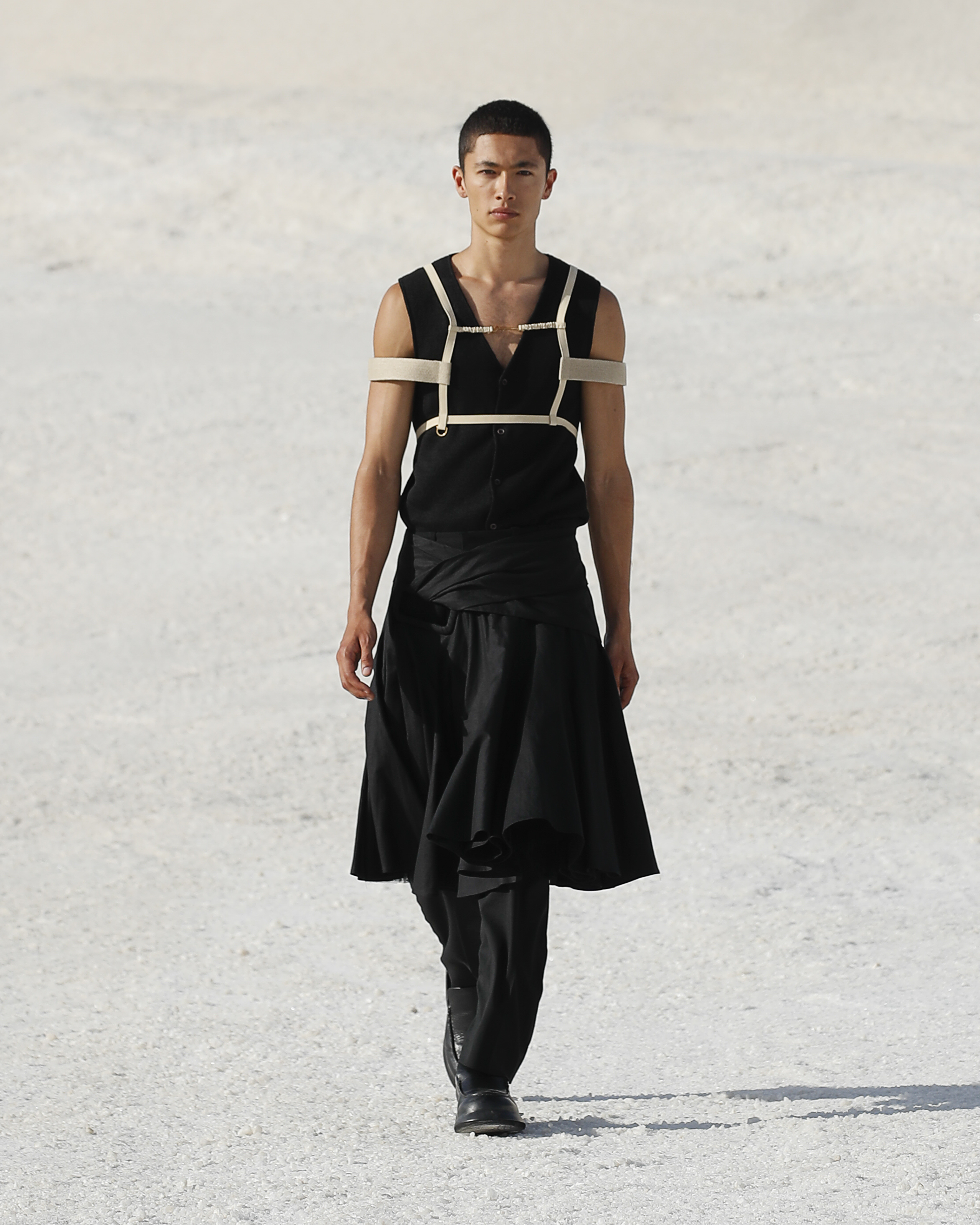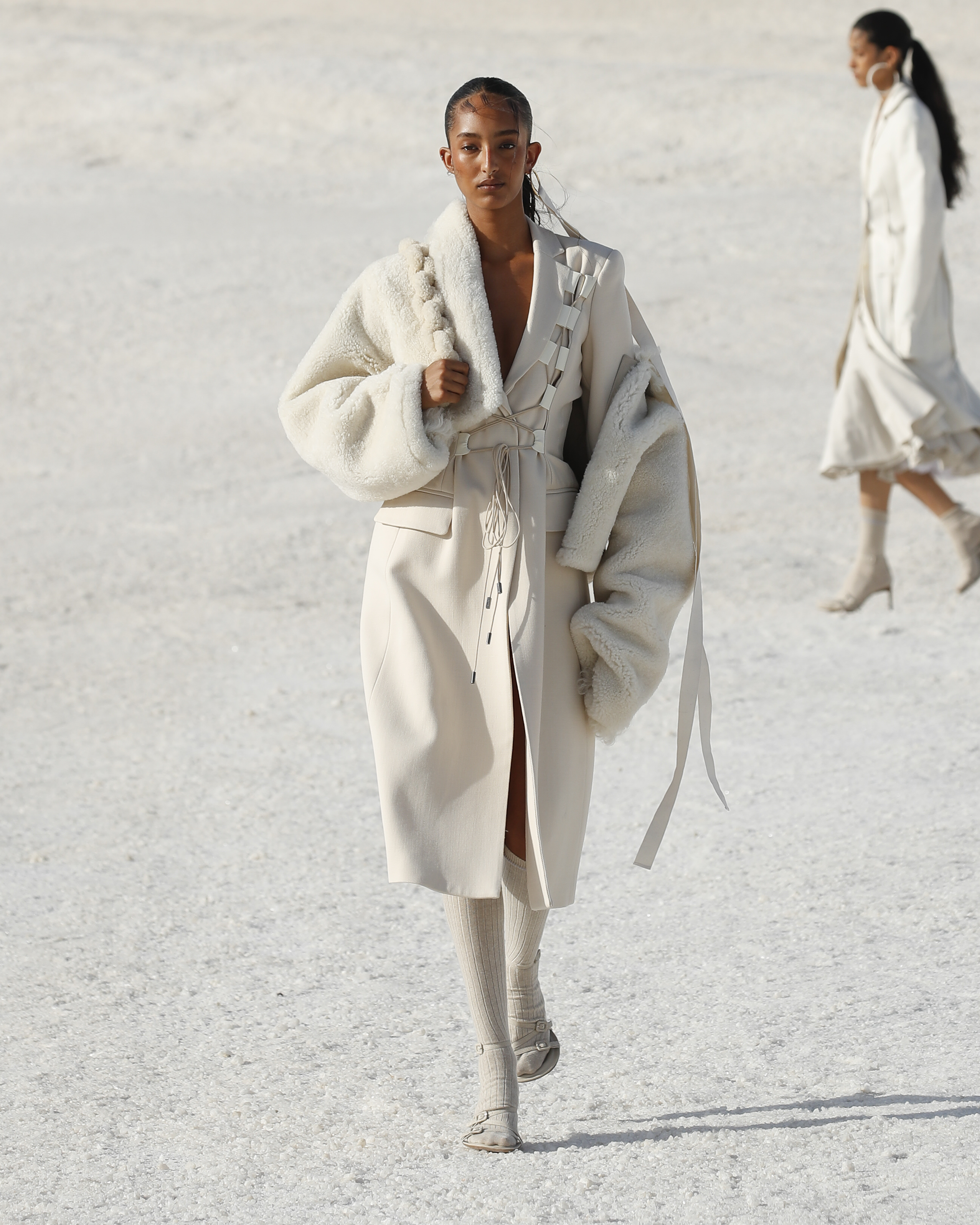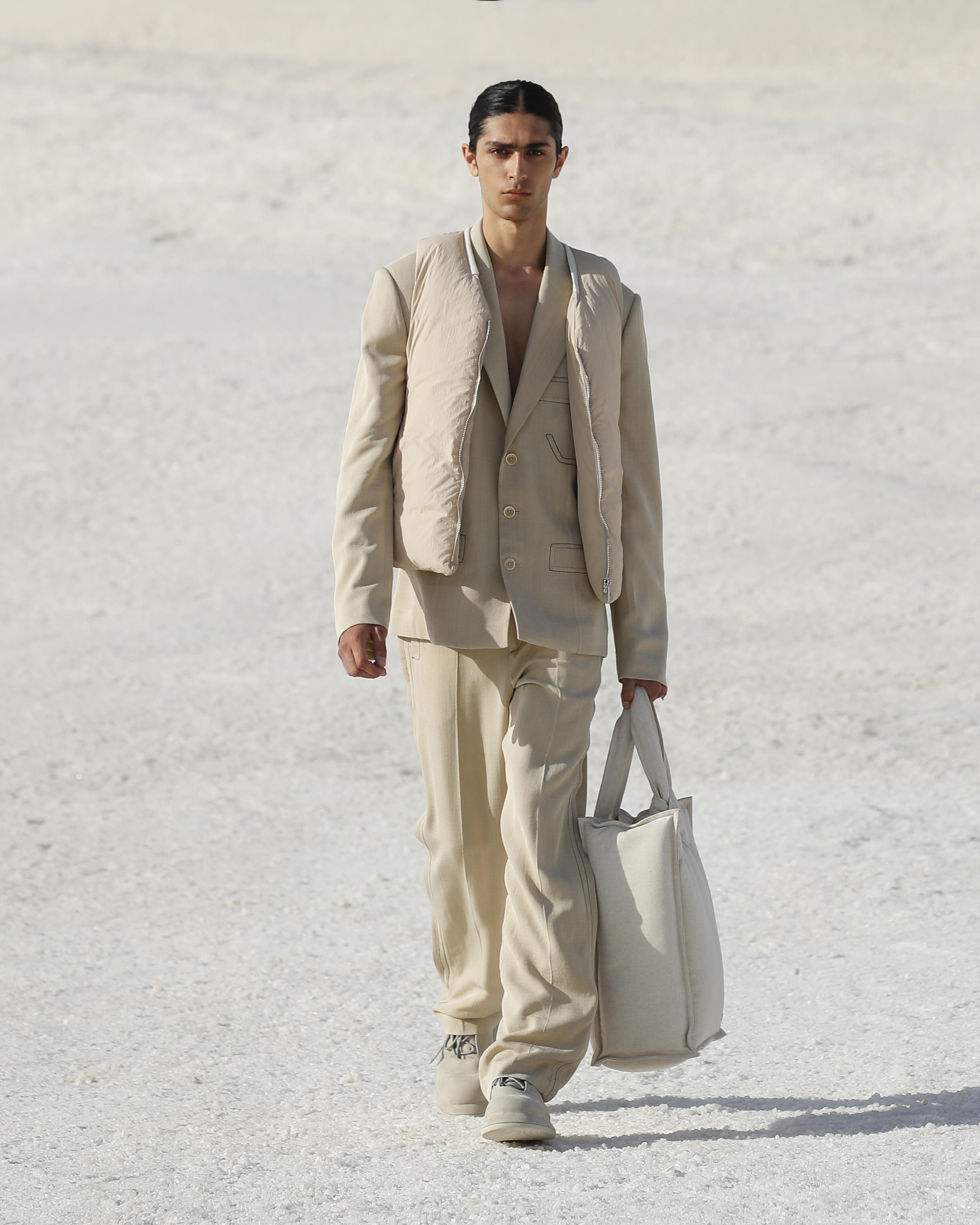 After his last fashion show on a rainy day in Hawaii, Simon Porte returns to his homeland, France. His new collection Le Papier comes to life in the salines de Giraud near Arles, in Camargue in southern France. Although the French designer has long declared his opposition to the imposition of seasonality in the fashion world, this collection should refer to Fall Winter 2022-2023.
