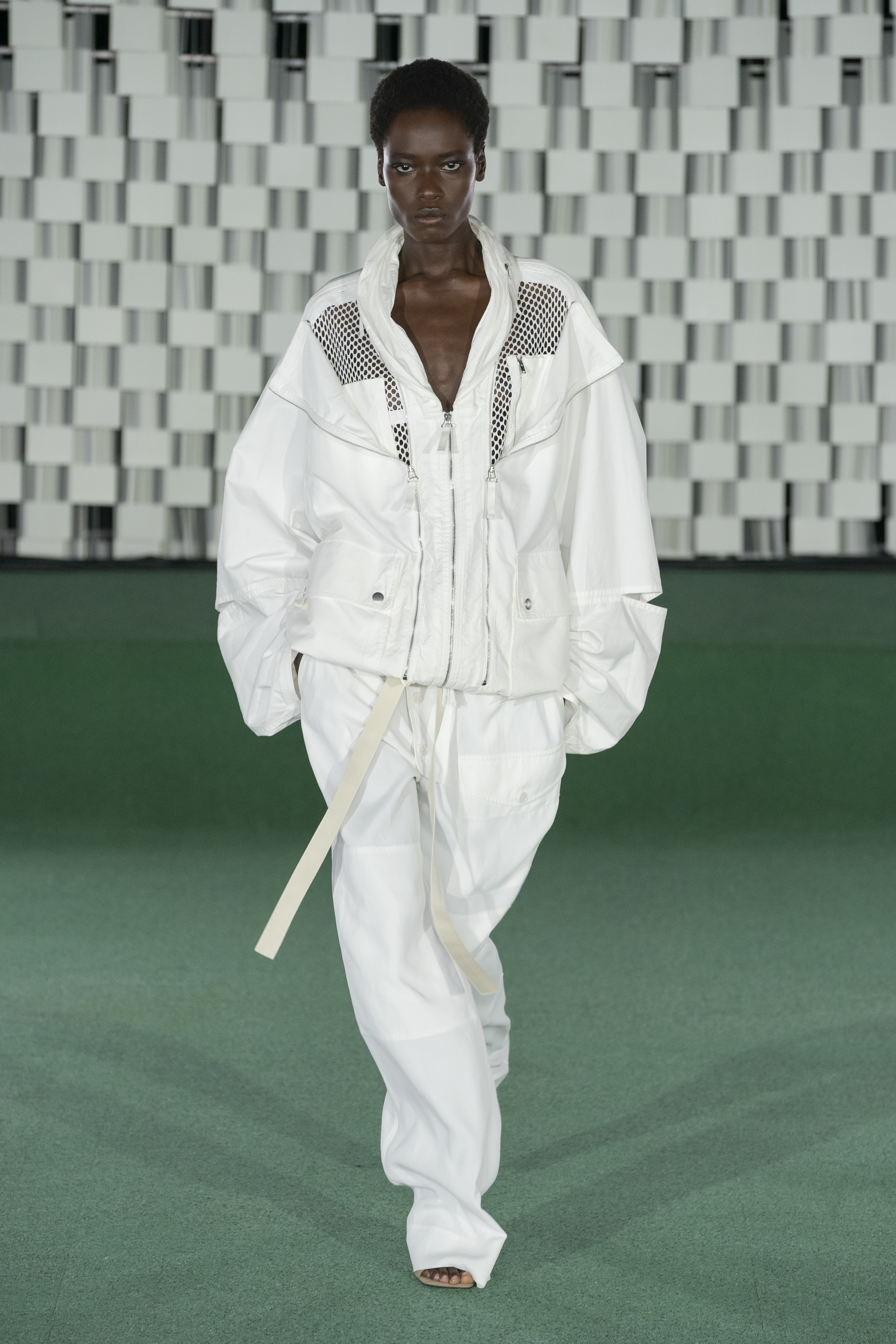 Chanel moves to Saint Tropez for the SS 22. Black and white are the colors that most typically refer to Coco’s Maison and are also the undisputed protagonists of this latest collection, more maritime than ever. Virginie Viard reinterprets the 80’s bikinis and makes them a must-have. High-waisted slips are combined with tank tops to be worn with strings of chains to be woven around the neck as well as at the waist. Transparent sarongs complete the looks made of hyper-high-cut one-piece swimsuits and very low ballet flats. To these are added coord suits in patent leather or knit, with the iconic double C logo.