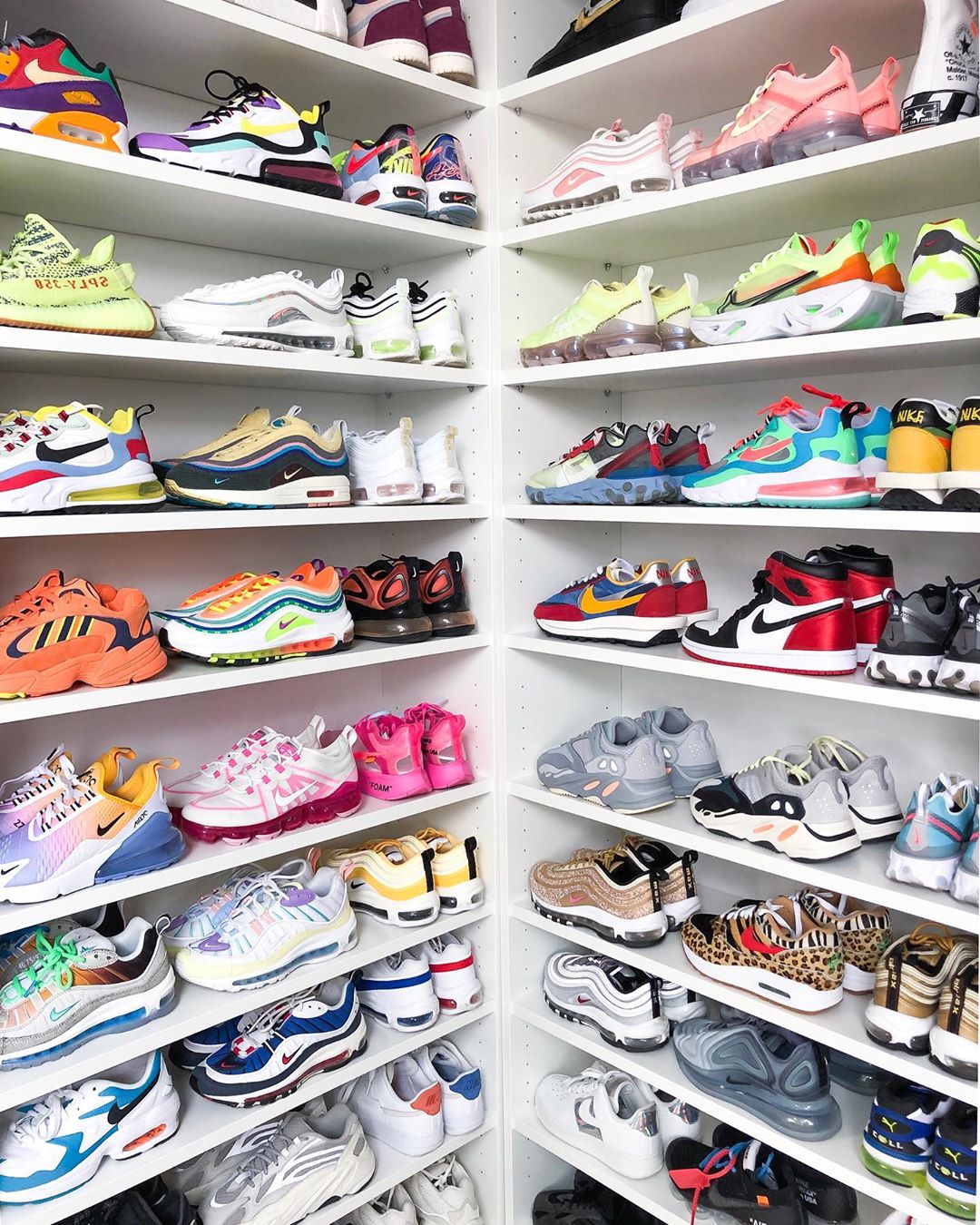 SALLY: I played basketball from the age 7-15 so I guess I was very drawn to the street-style and sneaker world very early. In high school, I had a couple of different pairs and I remember how it meant the world shopping my very first pair of clean low top Air Forces with my mom. Then there was a couple of different phases until I reached where I am. I’ve been a fan of the Nike Huarache that had a comeback back in 2013-2014. Then I had a phase with Puma x Rihanna Creepers. I literally had them in every colourway that came out. After that, I started collecting Yeezys and in 2017, after the Air Max 97 had its comeback I started being more and more into Nike sneakers. The Nike Air Force 1 “Rocafella” and Nike Air Max 97/1 Sean Wotherspoon was two of my first limited Nike releases.