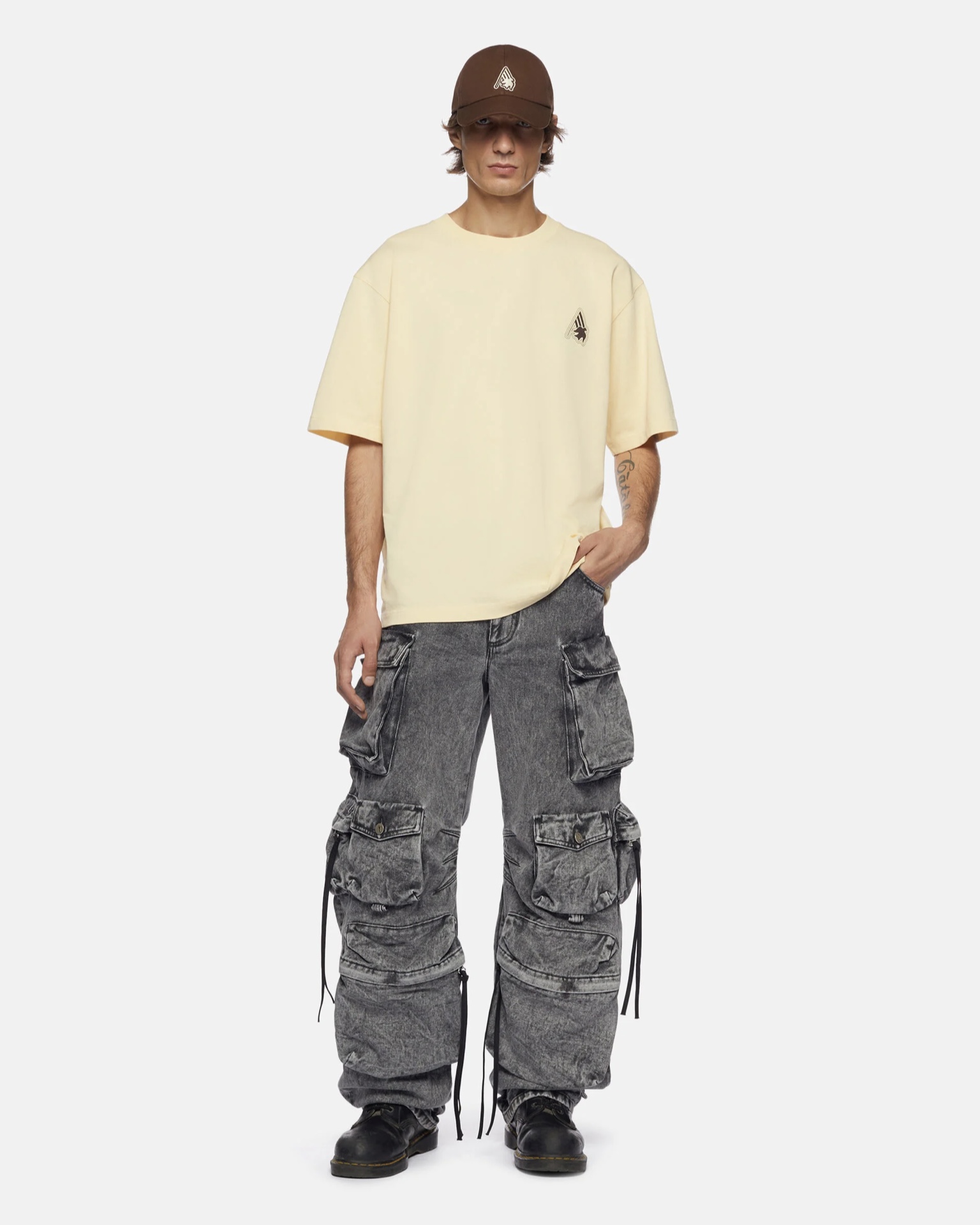 The capsule includes a T-shirt, a hat, a sweatshirt and a coffee cup. The chosen colour palette places ivory white at the centre, with the logos of The Attico and Sant Ambroeus.