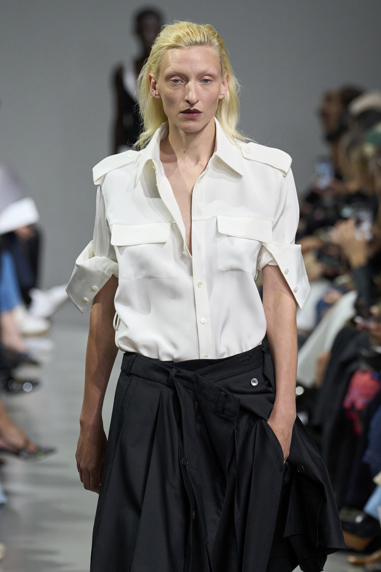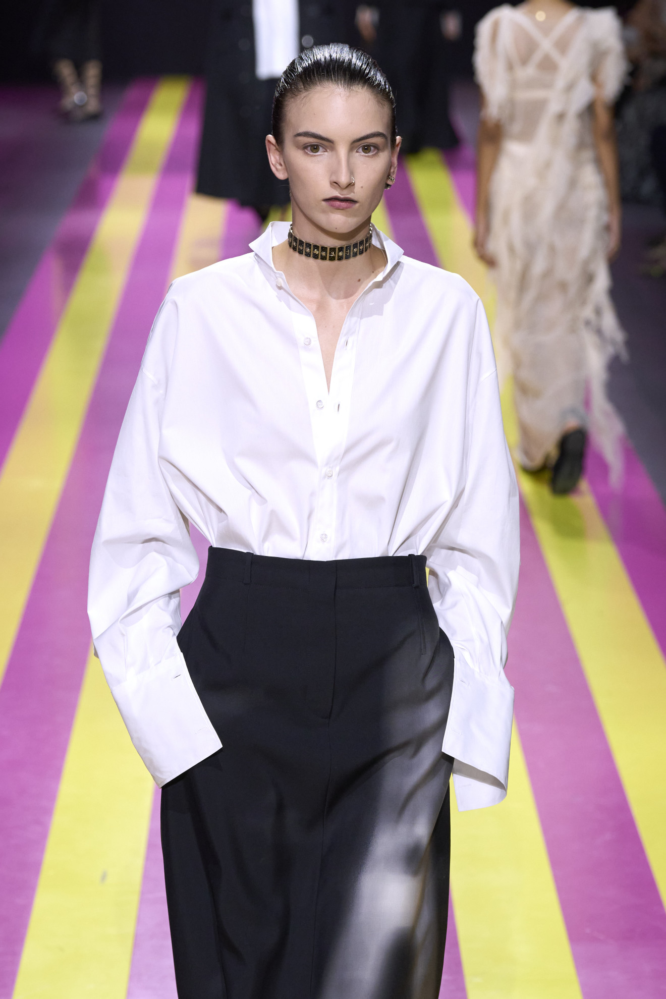 Drawing inspiration from the latest Spring/Summer 2024 collections, we can confirm what has already been said. The runways showcased creative reinterpretations of this classic piece, reaffirming its relevance for seasons to come. Here is our gallery celebrating the iconic white shirt worn in different ways by celebrities and models at recent runways and the most glamorous events. Scroll through our images and let yourself be inspired by the versatility and timeless elegance of the white shirt.