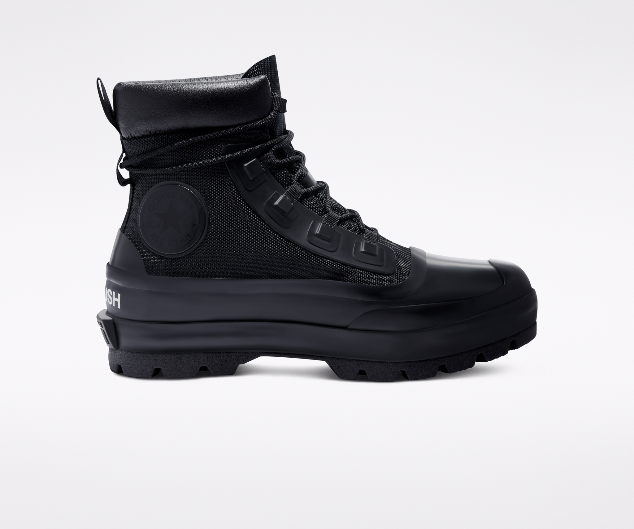 The new silhouette chosen? A climbing boot – built for outerwear when Converse started as a rubber company nearly 110 years ago. With this construction in mind, Yoon Ahn, co-founder and creative director of the Tokyo-based brand AMBUSH, took the opportunity to push the limits of traditional clothing through a new lens, bringing up the stylistic references of modern silhouettes. Converse and democratizing design both in terms of gender and form.