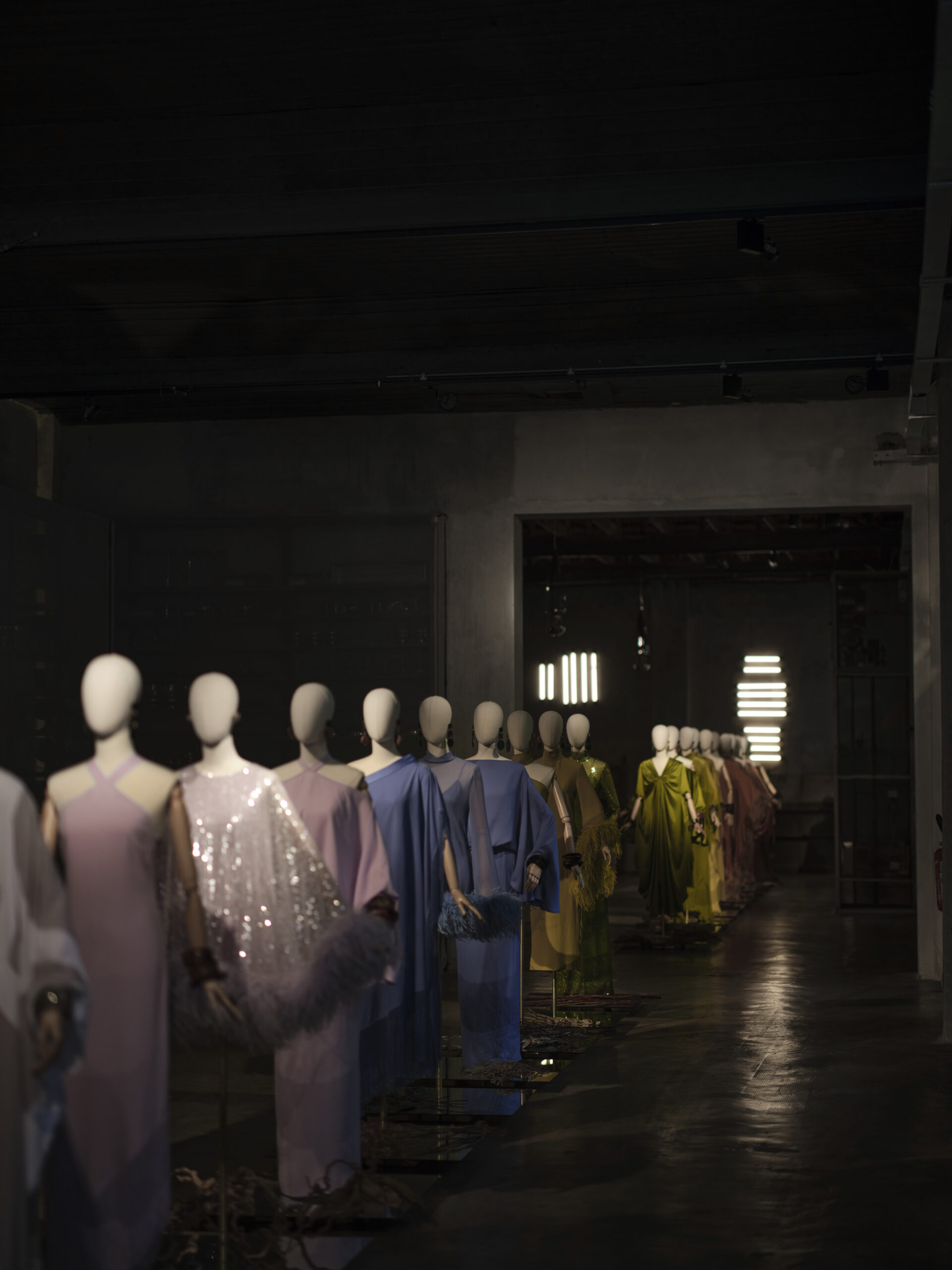 Taller Marmo’s Spring 2024 collection is an ode to the oxymoron. Amid classic evening dress silhouettes, sinuous and long, we find vibrant daytime colors: terracotta, moss green, and cornflower blue, in a perfect mashup with volcanic black silk. The textures used are ethereal, and they’re accented by the sparkling and beloved sequins, adding a touch of glamour to the luxurious matte fabrics.