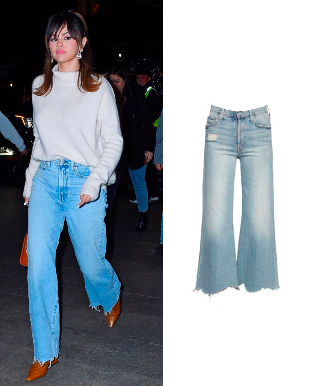 Crop and wide together? We like it a lot, but to prevent the model from shortening the figure too much, Selena Gomez chooses them with a destroyed hem that lengthen the leg. To copy! Where is it? Buy them here