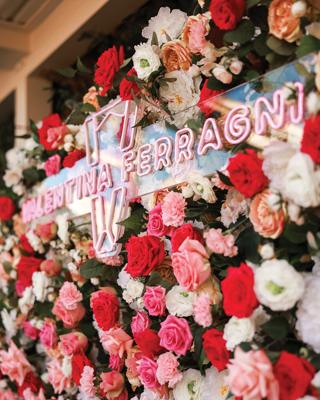 It is a sky of pink wisteria to welcome us on the terrace with one of the most beautiful views of Milan, the fashion week has restarted in all its charm and becomes an opportunity to blow out important candles. Valentina Ferragni Studio, the Valentina Ferragni brand turns one year old, with incredible successes, new icons, and satisfaction.