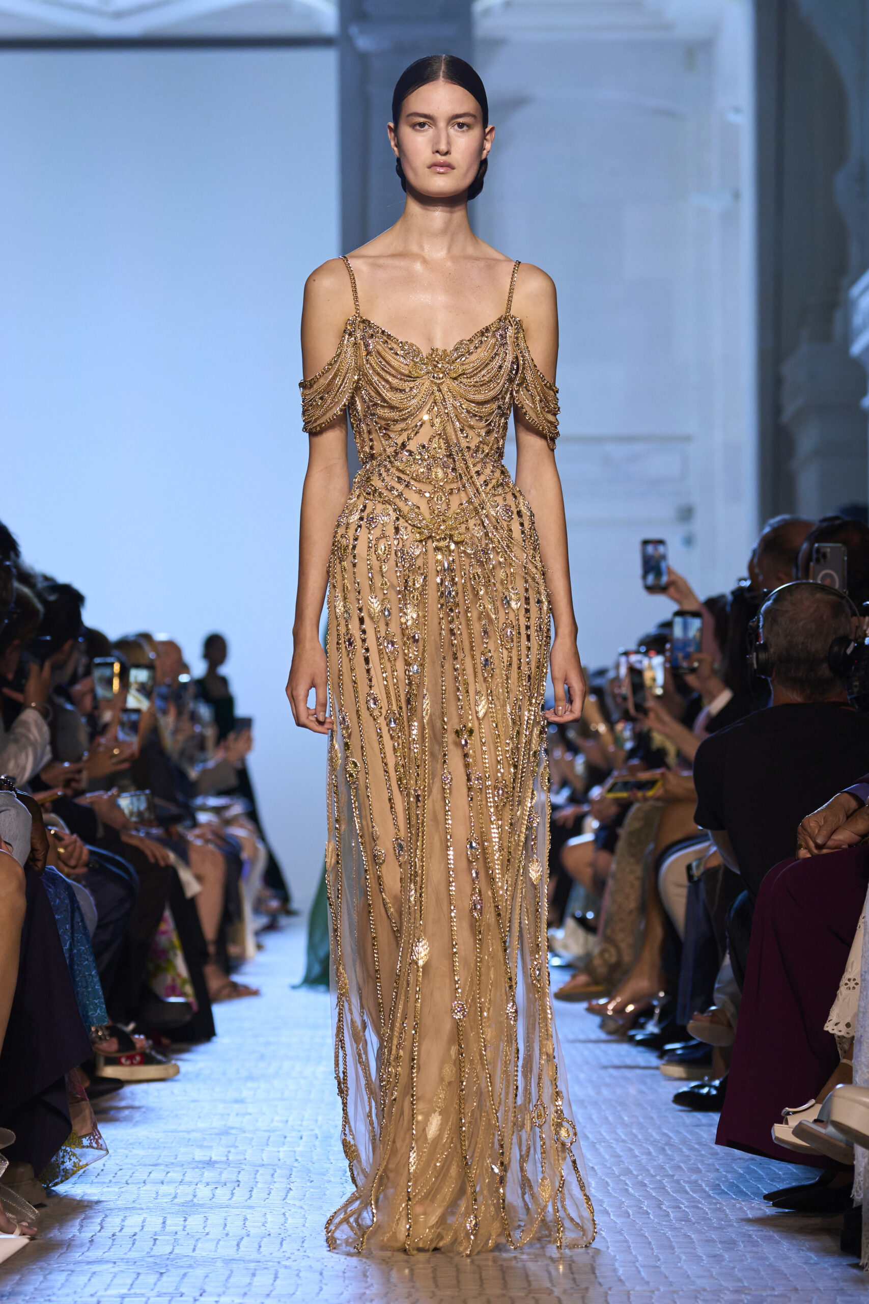 In this context, imagining ourselves as stylists, we want to envision which outfits from the latest Haute Couture collections for Fall/Winter 2023 it would be interesting to see gracing the red carpet. Among the options, we have the bold volumes of Giambattista Valli, the timeless beauty and effortless elegance proposed by Virginie Viard for Chanel. Not to be outdone, the decidedly shiny effect that emerges from the creations of Fendi, Elie Saab, and Valentino. And why not consider the option of an androgynous look, similar to the one presented in Viktor & Rolf’s extraordinary recent Haute Couture runway?