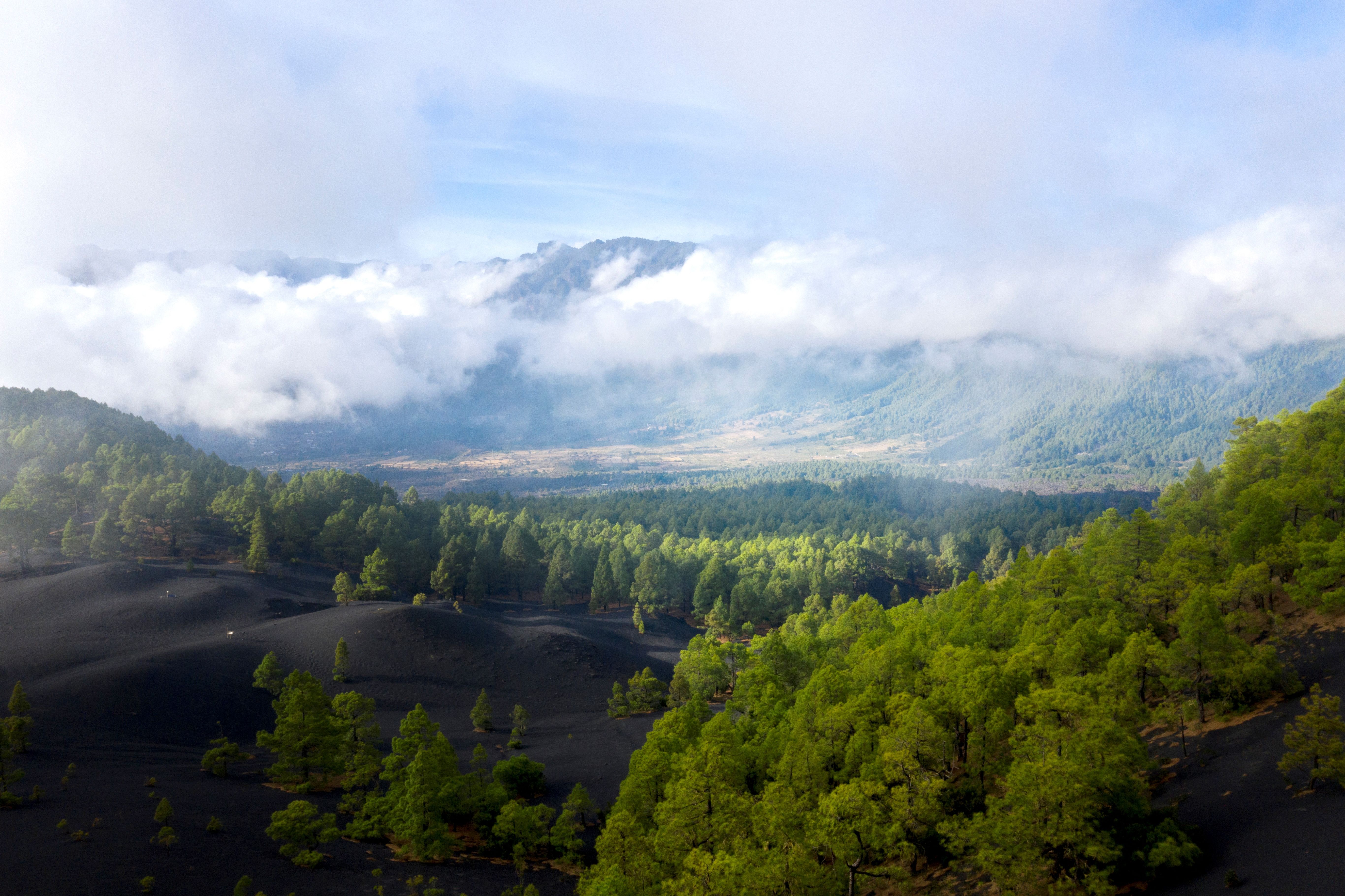 - An aerial picture taken on September 11, 2022 shows trees emerging from ash on a hill near the Tajogaite volcano, in the Cumbre Vieja mountain range, on the Canary island of La Palma, one year after its eruption. – For many on the tiny isle, life remains difficult and the future uncertain since the eruption of the Tajogaite volcano, in the Cumbre Vieja mountain range, which will mark its first anniversary on September 19, 2022. (Photo by Juan MAZA CALLEJA / AFP) (Photo by JUAN MAZA CALLEJA/AFP via Getty Images)