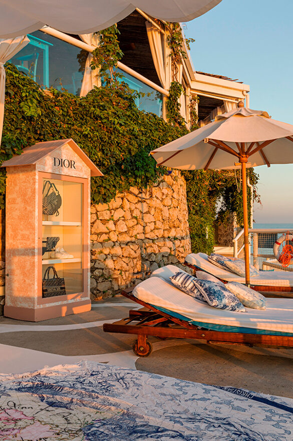 Presented together with exclusive Dior Maison objects, the brand’s home decor line, the essential elements of the capsule include marine sweaters and summer accessories, in addition to the iconic Dior Book Tote, Saddle and Diorcamp bags, which have for some seasons now entered the bucket list of every fashion addicted. The it-bags will be revisited with motifs inspired by the designs of the Roman artist Pietro Ruffo, from the Dior Around The World line. As previously mentioned, Toile de Jouy and bayadère stripes on cushions, umbrellas and personalized beach huts in the lounge area will join these unpublished textures. The pop-ups, conceived as an invitation to take a break in an irresistible context characterized by the beauty of life, have already become an indispensable stop for all those who have chosen to live, this summer so different and unique, in a so iconic Italian way.