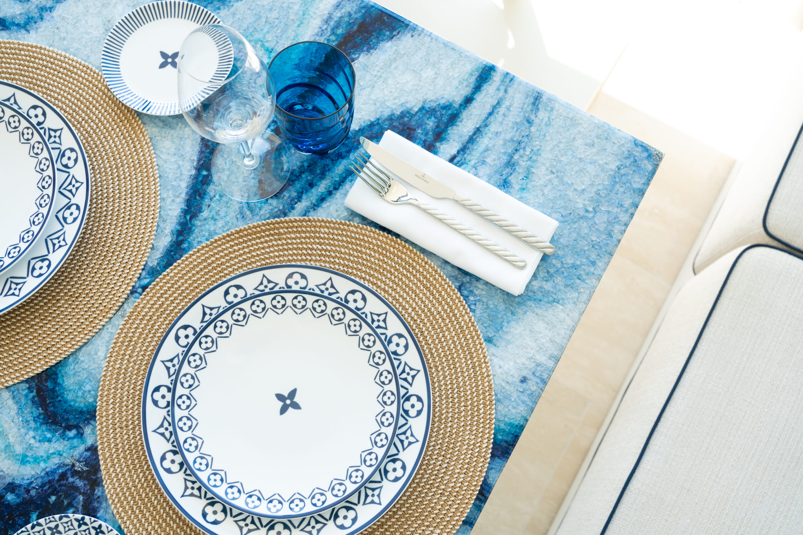 The Louis Vuitton Café by Timeo, located on the first floor of the elegant structure, blends perfectly with the imagery of the aforementioned ‘LV By The Pool’ collection, offering a style and aesthetic in perfect harmony with the interior design. Louis Vuitton’s tradition, deeply rooted since 1854, harmoniously combines with the captivating Sicilian taste. Additionally, the Café has been beautifully adorned with plants, unique design pieces, high-quality fabrics, and ceramics, creating a special atmosphere. The management of this Café is entrusted to the celebrated team of the Grand Hotel Timeo at Belmond Hotel, a true oasis of elegance and timeless style. The menu offers a delightful selection of Sicilian culinary classics, from pistachio cream croissants to mini cassatas, popular arancini, and petite desserts. Moreover, the aperitivo, served from 6:00 PM to 10:00 PM (extended to 11:00 PM on Fridays and Saturdays), is enhanced by a broader selection curated by Chef Roberto Toro, including the refreshing “Taormina Spritz.”