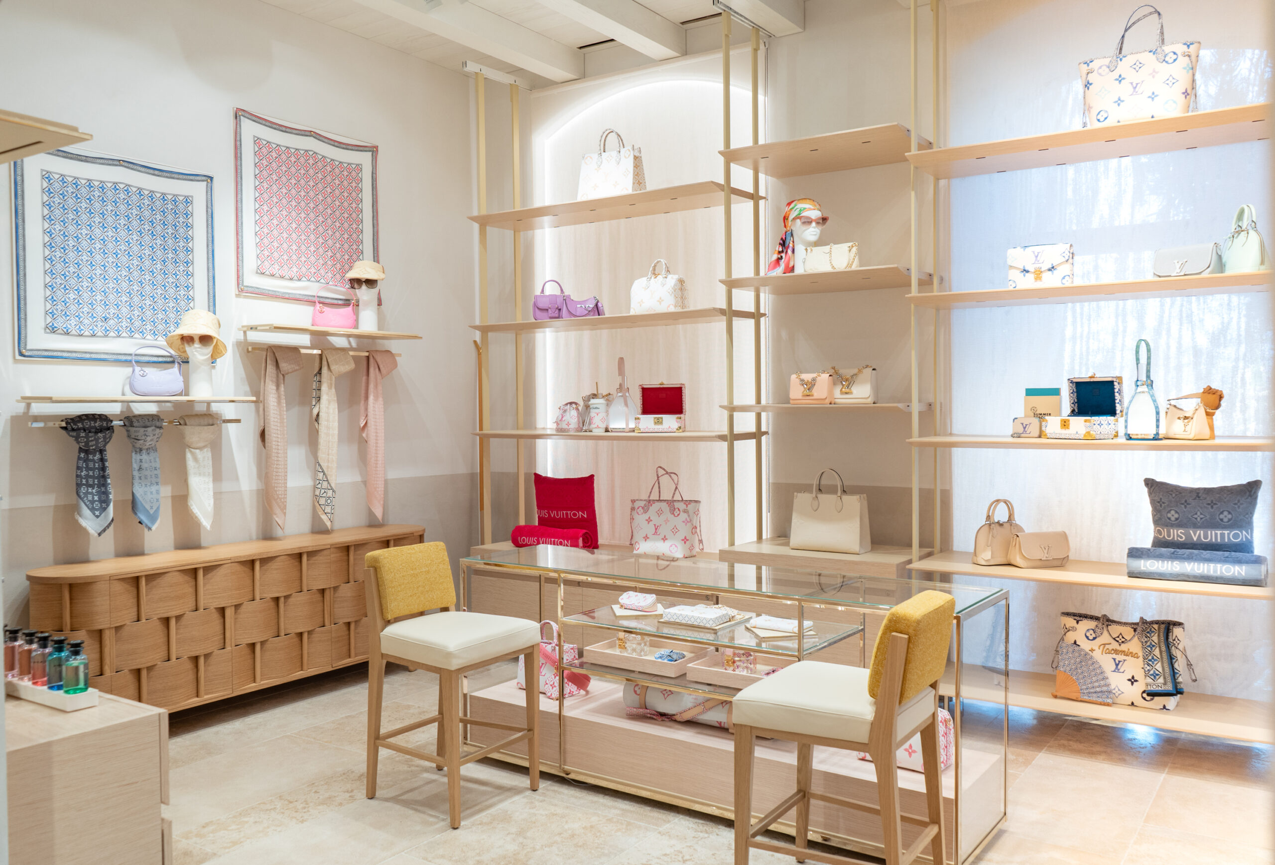 The store, nestled in a uniquely designed space, adorned with vintage furnishings and design pieces that reflect Sicilian beauty, provides the perfect backdrop to showcase the ‘LV By The Pool’ collection. Amidst all the extraordinary novelties and exclusive pieces, the standout is the ‘Taormina Neverfull’ bag, an iconic reinterpretation of the renowned model available exclusively in this store.