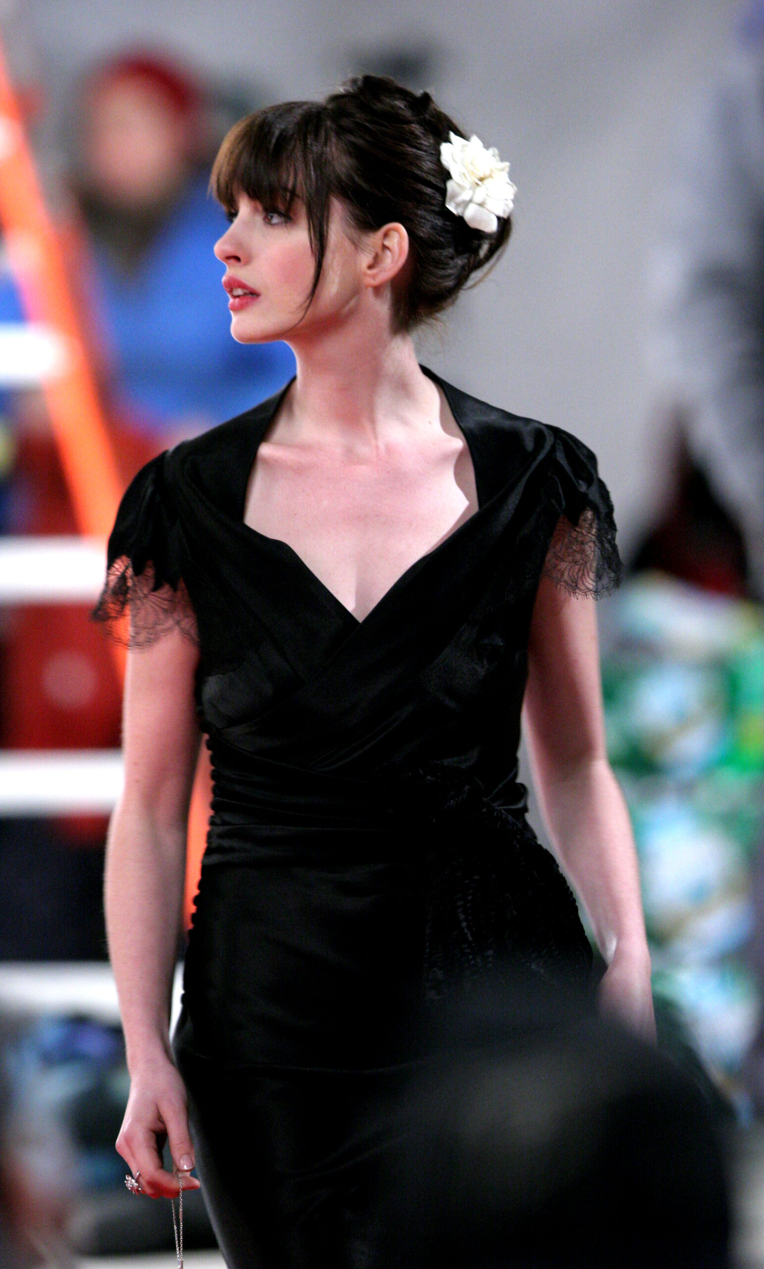 - NEW YORK – OCTOBER 19: (ITALY OUT, NY DAILY NEWS OUT, NY NEWSDAY OUT) Actress Anne Hathaway films a scene of the new movie “The Devil Wears Prada” outside the St. Regis Hotel on October 19, 2005 in New York City. (Photo by Arnaldo Magnani/Getty Images)