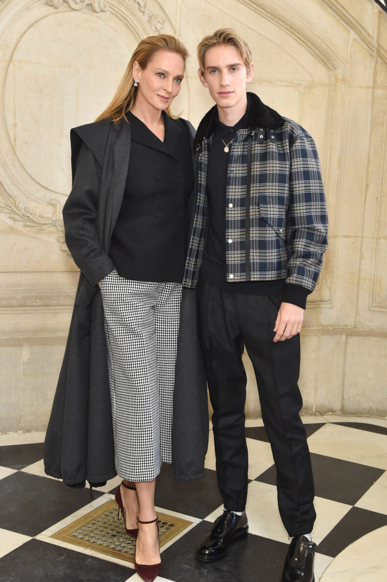 - PARIS, FRANCE – JANUARY 20: Uma Thurman and her son Levon Roan Thurman-Hawke attend the Dior Haute Couture Spring/Summer 2020 show as part of Paris Fashion Week on January 20, 2020 in Paris, France. (Photo by Stephane Cardinale – Corbis/Corbis via Getty Images)