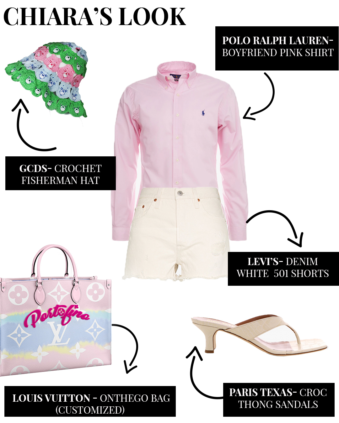 A little boyish a little teenage dream, the summer look sported by Chiara Ferragni last week in Portofino. Pastel tones are the protagonists and the shapes, soft and with a genderless soul, make it the coolest beach look of the moment. Let’s analyze it together!