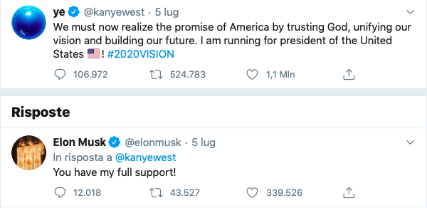 Needless to say, the news shocked the fans of the singer and not, although rumours about a hypothetical candidacy had been around for some time. But the news has not only found the support of fans of The Life Of Pablo but also of protagonists of the world market such as Elon Musk, founder of Tesla and SpaceX. At the moment West and the (perhaps) future first lady Kim Kardashian, have not provided any further details on the steps that will be taken to implement the candidacy, but yes it is time to face it, can you imagine them at the White House?