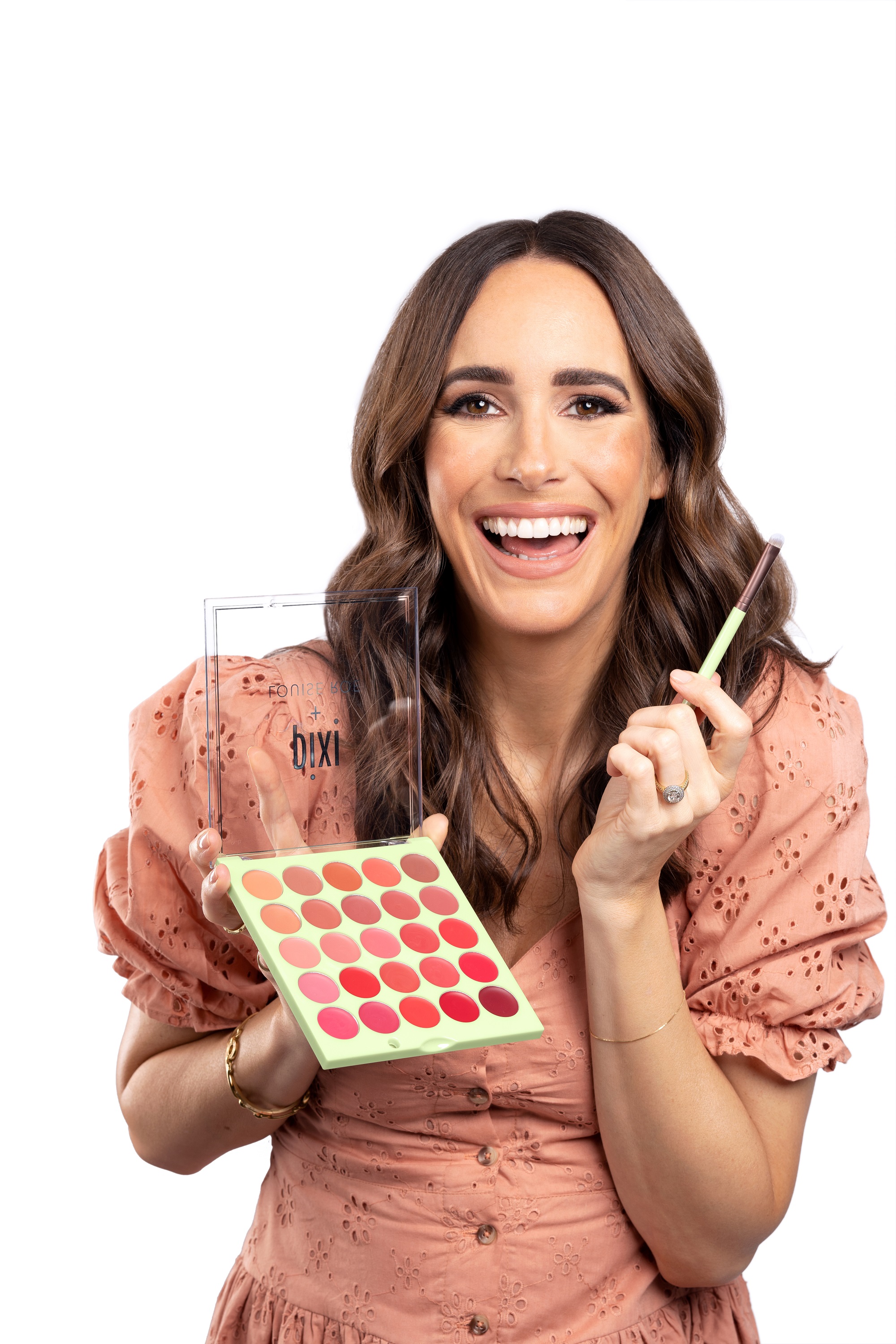 LOUISE: I am so excited about it! Women don’t have time to spend hours doing their makeup, so I wanted a one-stop-shop. Meaning, you can mix your own colours with my palette, find what suits your complexion, and use it on your lips, cheeks and even eyelids. There are 25 colours, so you get a lot in one palette, and the aim was to create a creamy texture that is very natural, but stays on your skin the entire day. I’m thrilled with how it turned out.