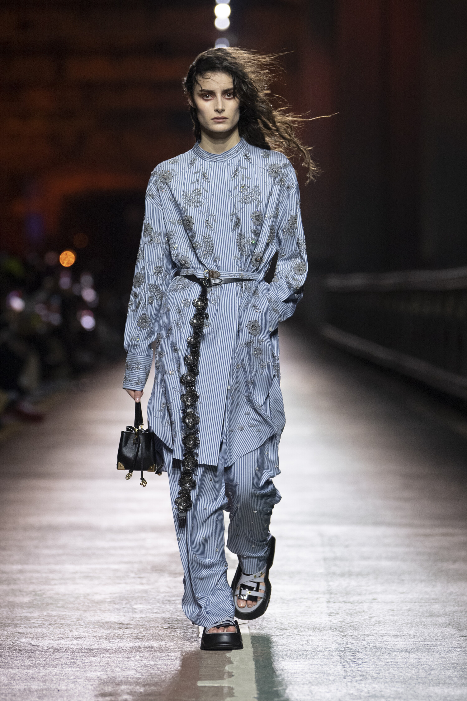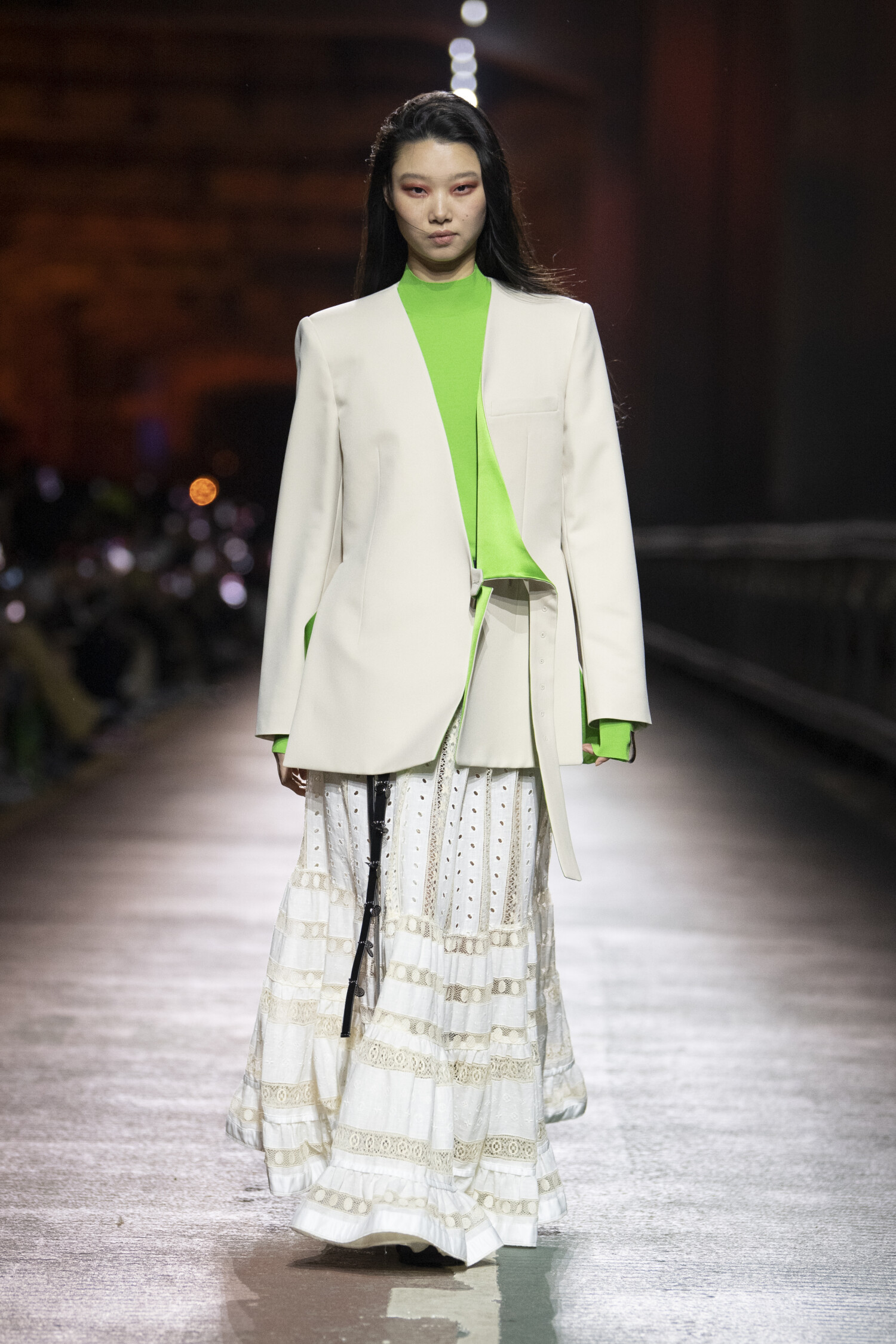 Questa sfilata ha raccontato una storia fatta di passaggi, un incredibile percorso tra tradizione e innovazione, puntando a scoprire il domani. Così, in passerella sono stati presentati capi che rappresentavano una combinazione tra passato, presente e futuro, in un flusso creativo che sembrava correre avanti e indietro attraverso le fondamenta stesse della storica Maison di moda francese.