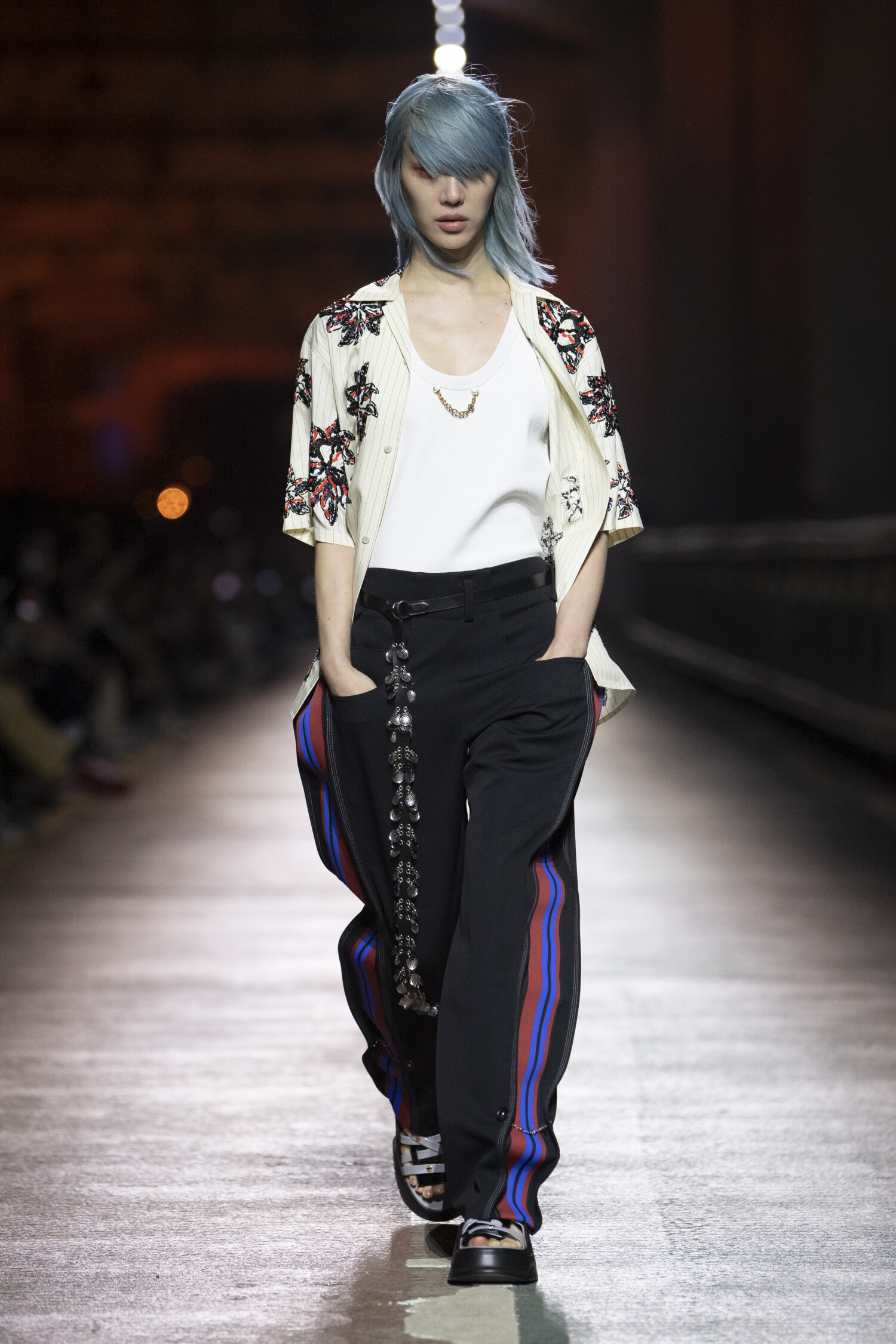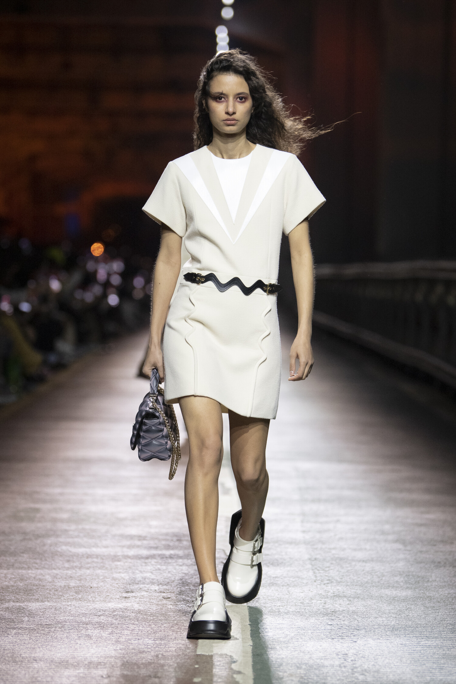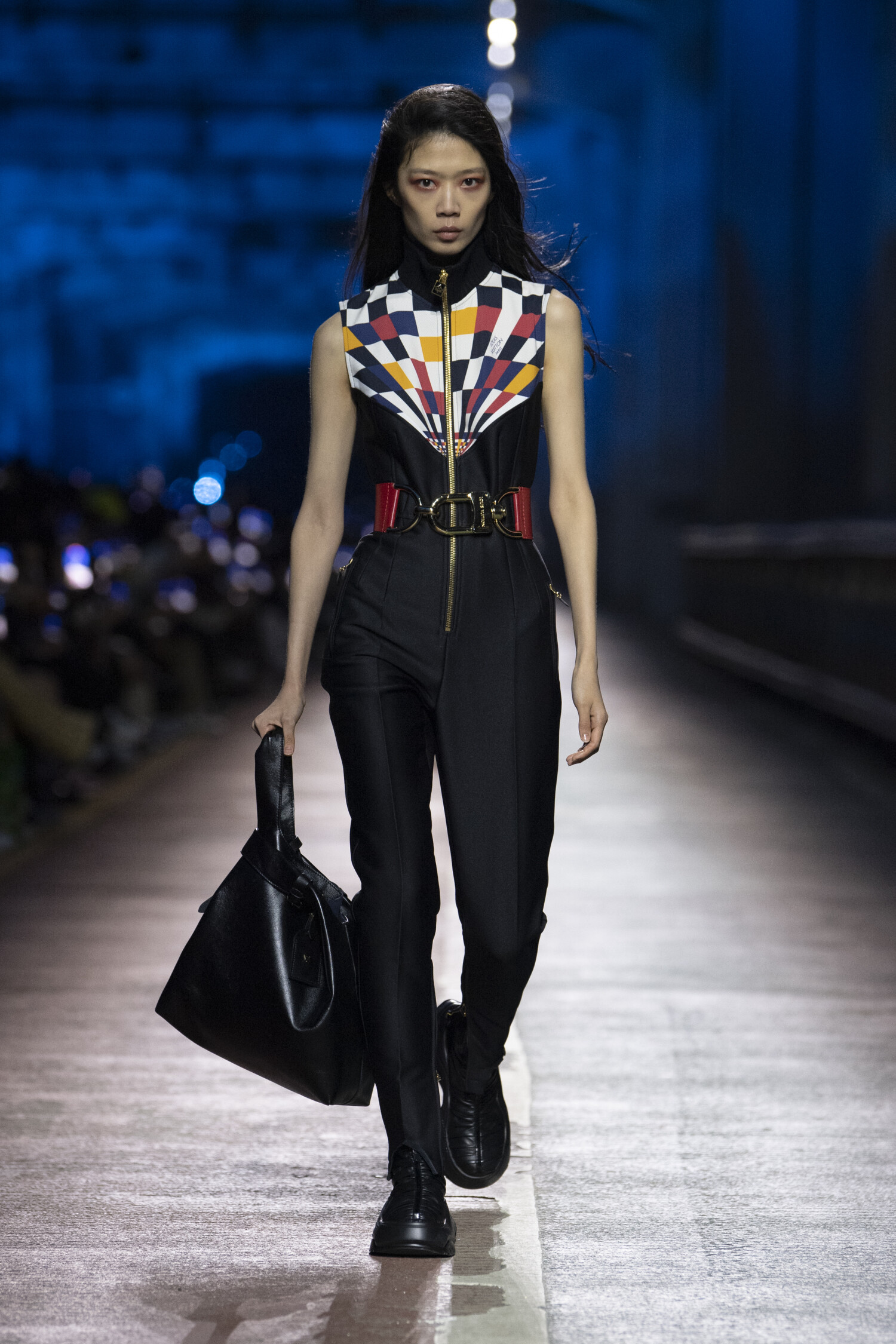 Nicolas Ghesquière ha allestito il suo palcoscenico su un’opera di ingegneria civile che crea l’illusione della scomparsa-riapparizione, e per gli abitanti di Seoul è un vero e proprio monumento vivente. La scenografia è stata poi affidata al regista della serie tv Netflix “Squid Game”, Hwang Dong-Hyuk, che ha messo in scena delle proiezioni di luce quasi simili al naturale movimento dell’acqua.