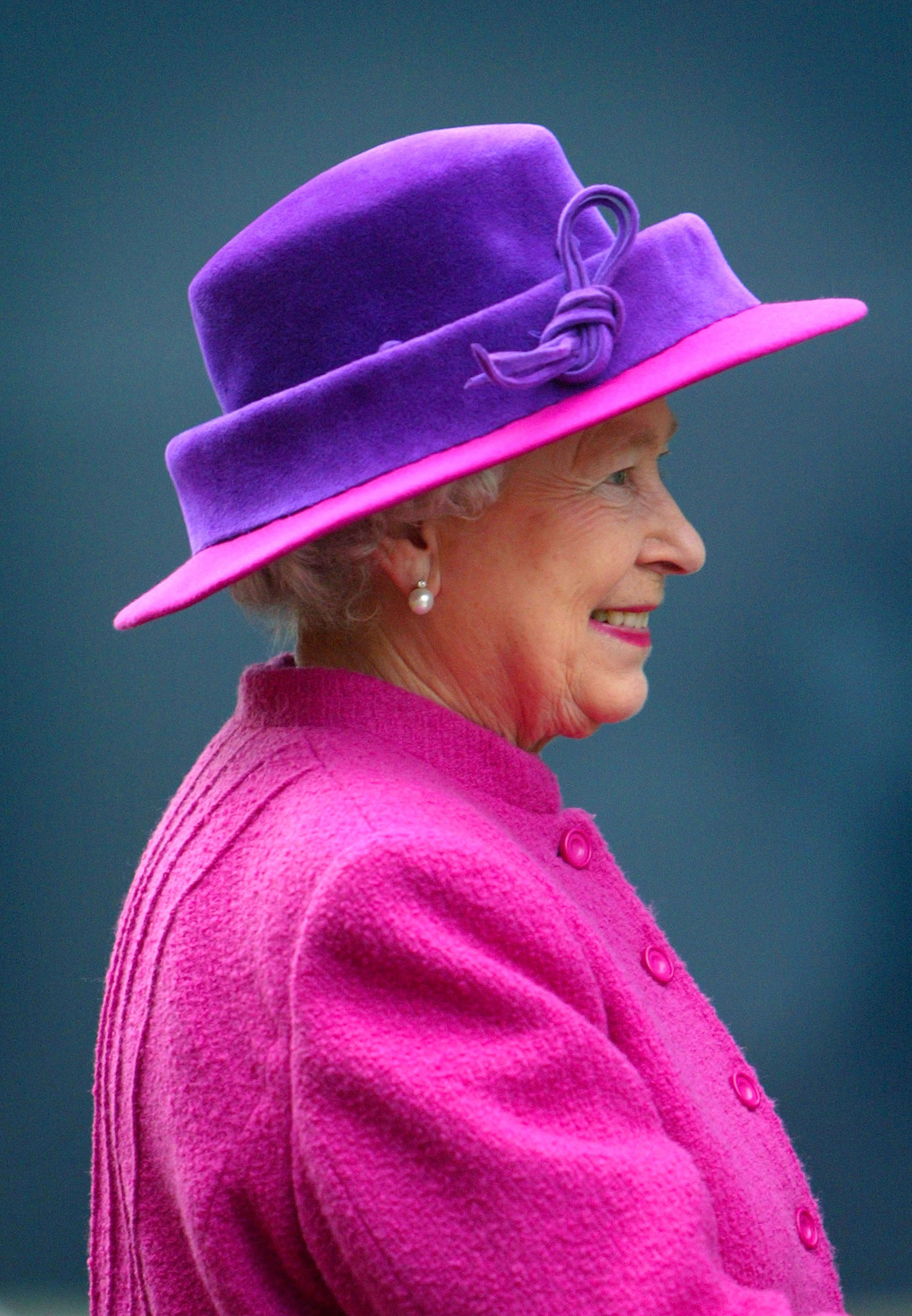 - SOUTHAMPTON, ENGLAND – JANUARY 8: Britain’s Queen Elizabeth II arrives to view the world’s biggest passenger liner, the Queen Mary 2 at her home port January 8, 2004 in Southampton, England. The Queen officially named the ?550m luxury liner during a special ceremony. She is wearing a hat by Philip Somerville. (Photo by Scott Barbour/Getty Images)