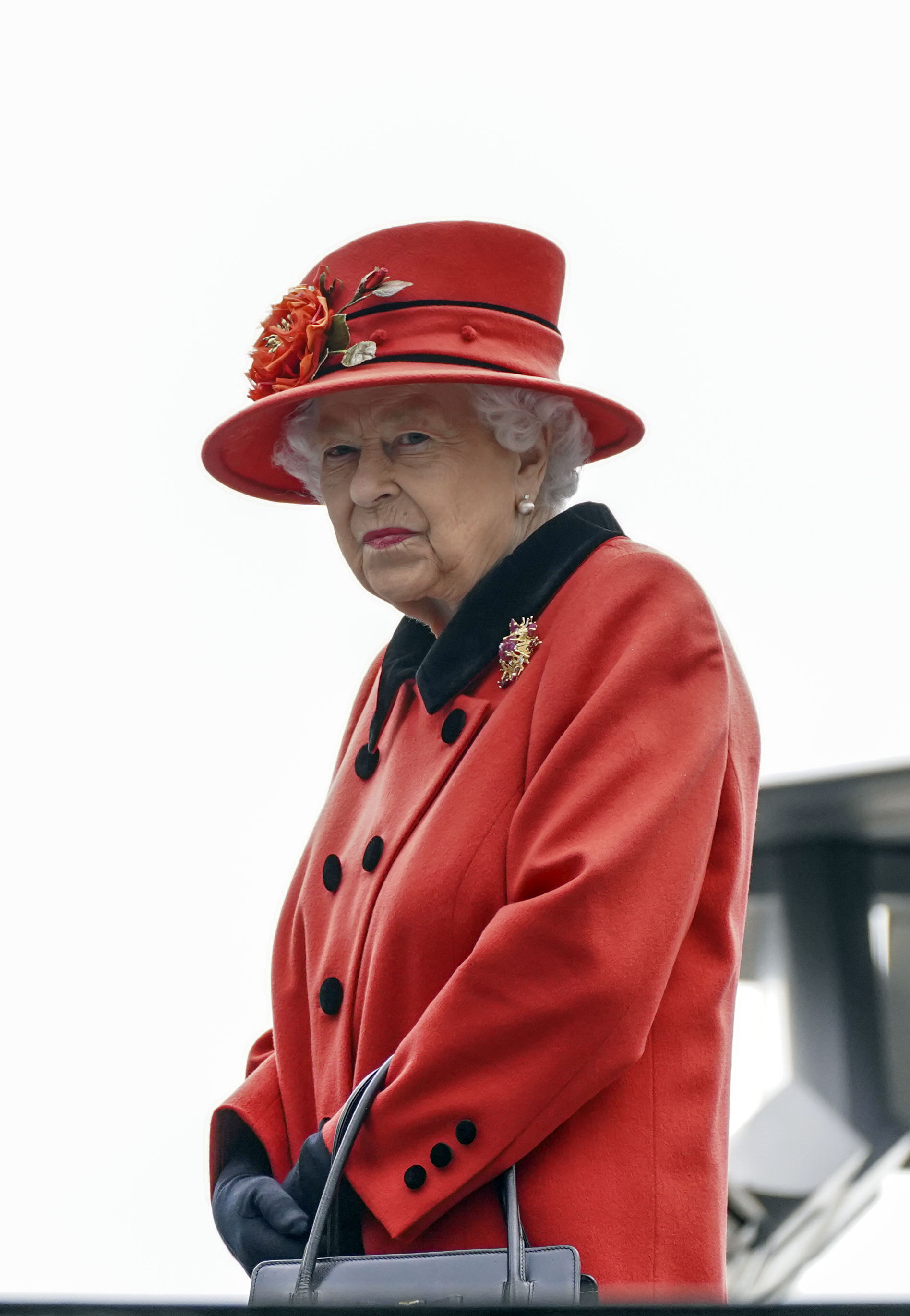 - PORTSMOUTH, ENGLAND – MAY 22: Queen Elizabeth II during a visit to HMS Queen Elizabeth at HM Naval Base ahead of the ship’s maiden deployment on May 22, 2021 in Portsmouth, England. The visit comes as HMS Queen Elizabeth prepares to lead the UK Carrier Strike Group on a 28-week operational deployment travelling over 26,000 nautical miles from the Mediterranean to the Philippine Sea. (Photo by Steve Parsons – WPA Pool / Getty Images)