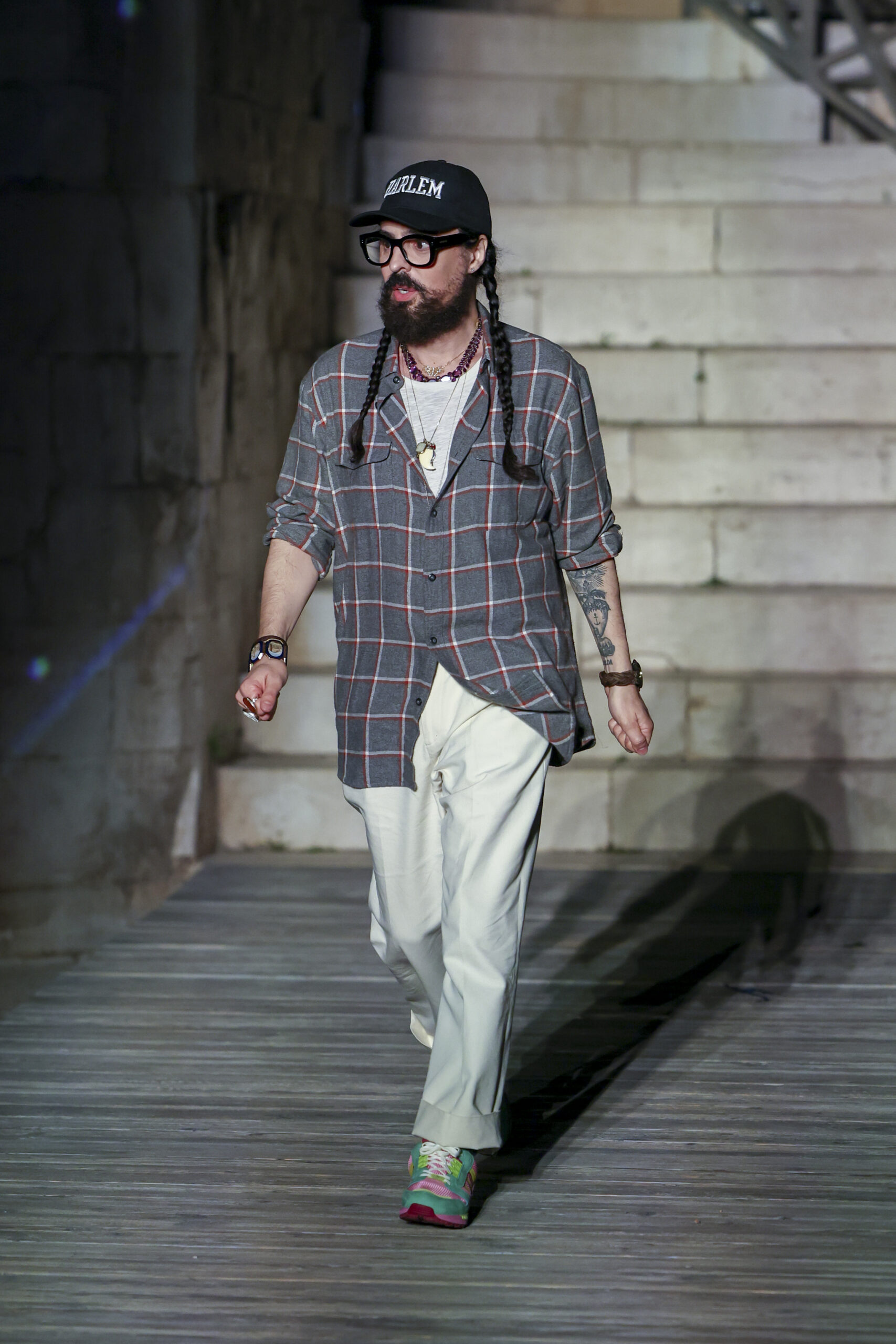 - CASTEL DEL MONTE, ITALY – MAY 16: Designer Alessandro Michele aknowledges the applause of the public during Gucci Cosmogonie at Castel Del Monte on May 16, 2022 in Andria, Italy. (Photo by Daniele Venturelli/Getty Images for Gucci)