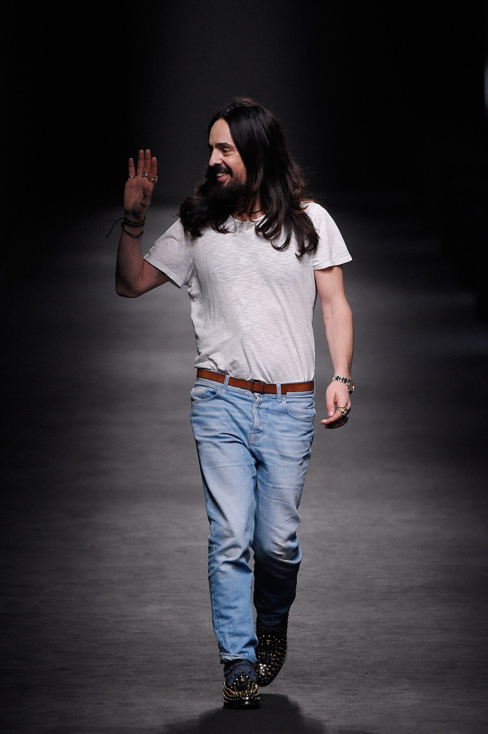 - MILAN, ITALY – FEBRUARY 24: Designer Alessandro Michele acknowledges the applause of the audience after the Gucci show during Milan Fashion Week Fall/Winter 2016/17 on February 24, 2016 in Milan, Italy. (Photo by Venturelli/WireImage)