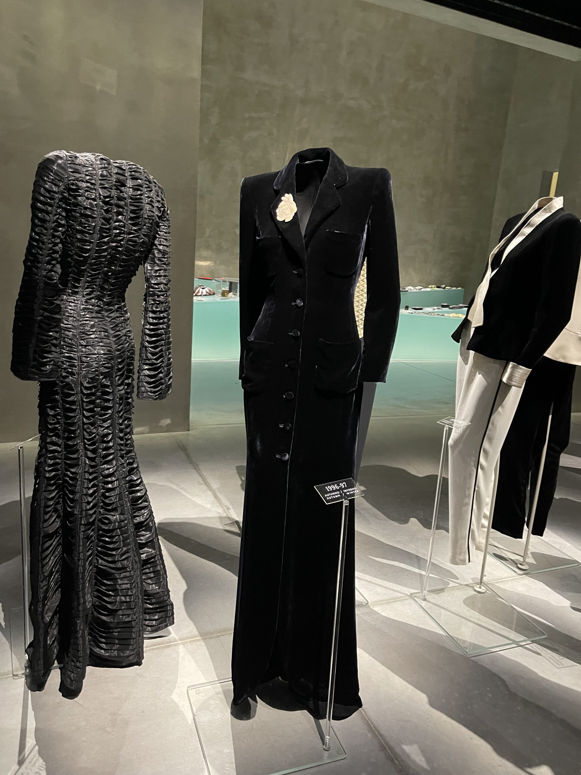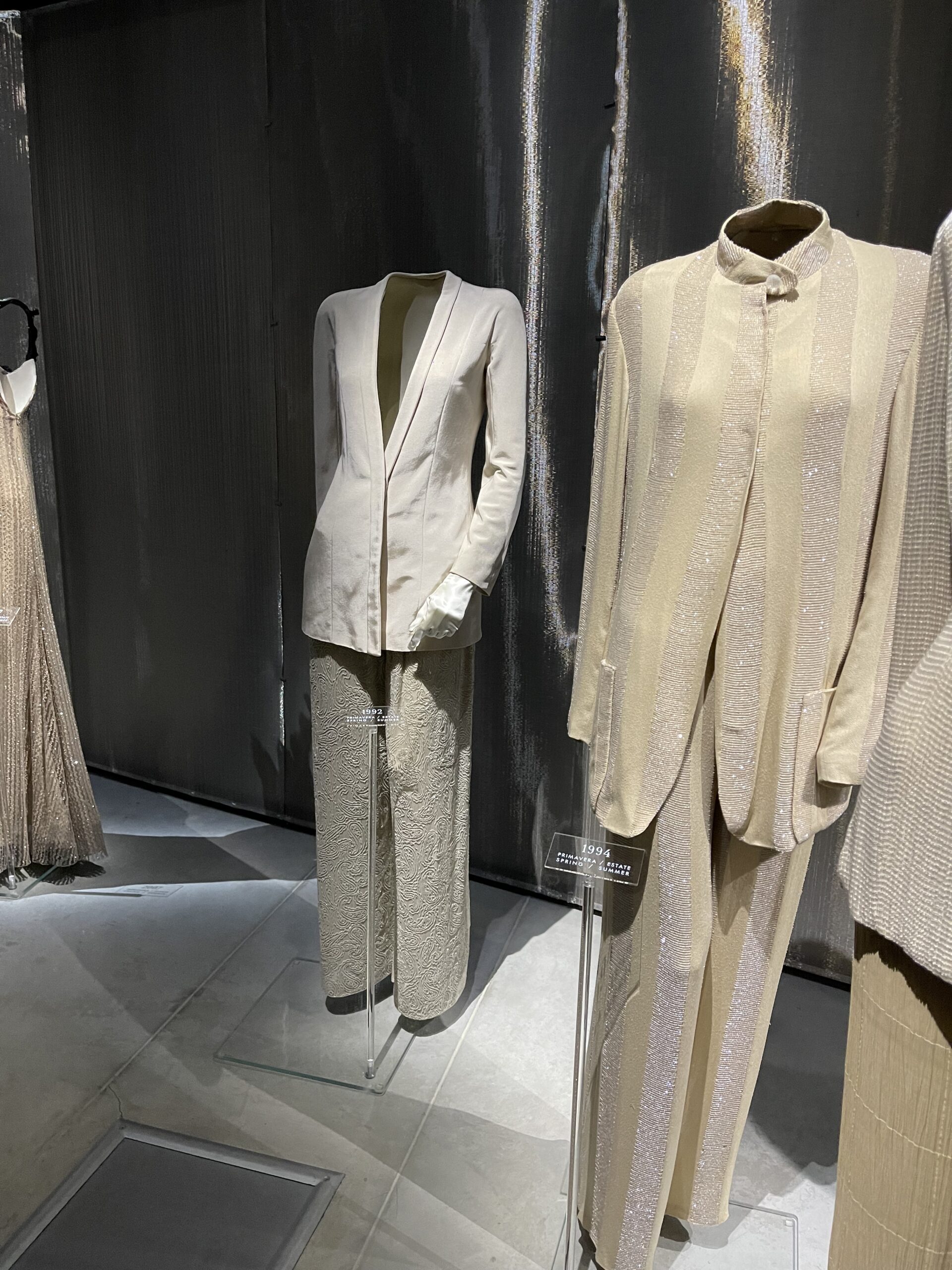 Un dettaglio a cui prestare attenzione sono i manichini: per Giorgio Armani era importante che gli abiti fossero protagonisti, pertanto vedrete che le strutture che li sorreggono sono tagliate su misura di ciascun abito, esaltandone la silhouette. Noterete infatti che sono stati progettati uno per uno, al punto che gli abiti sembrano reggersi in piedi da soli.