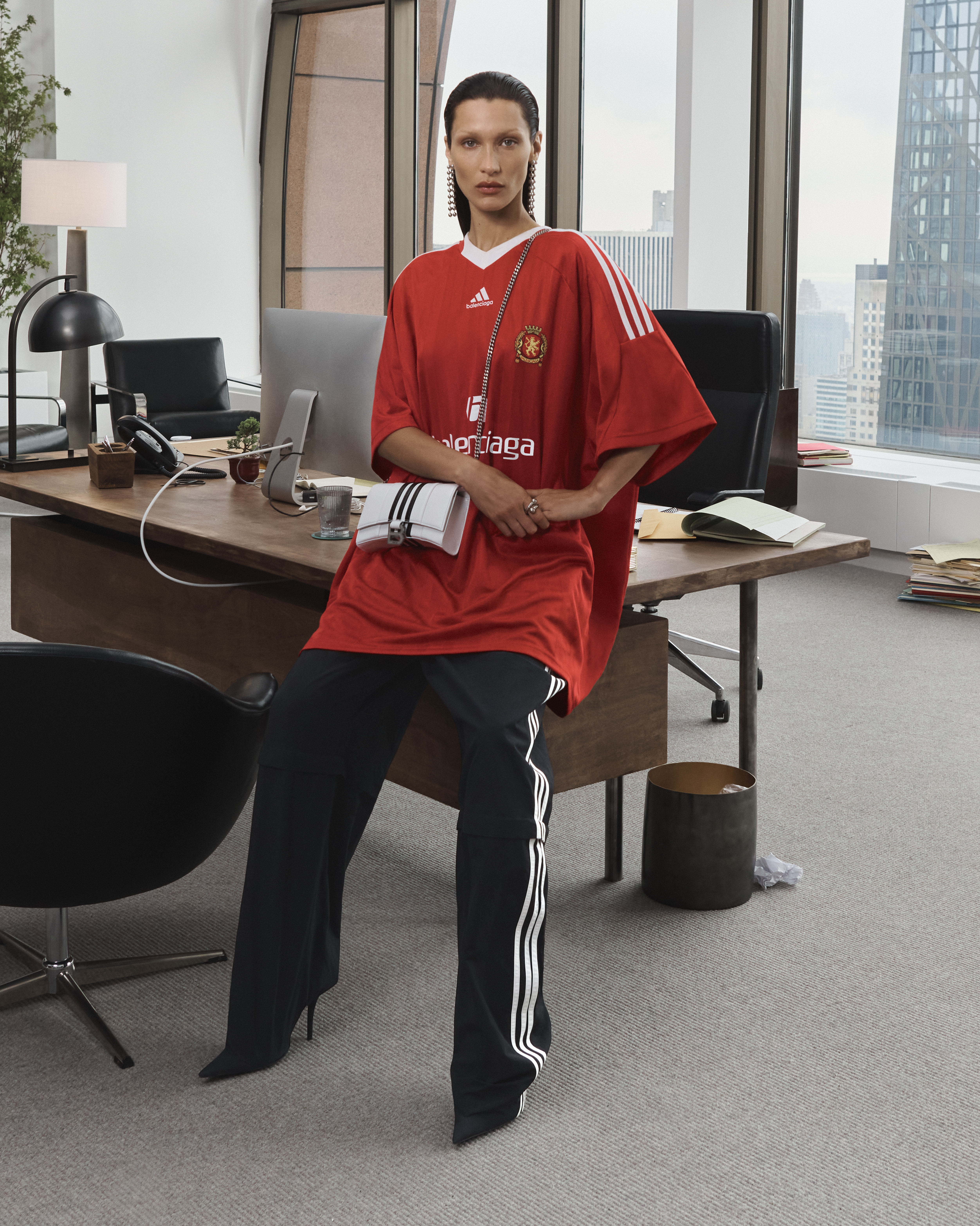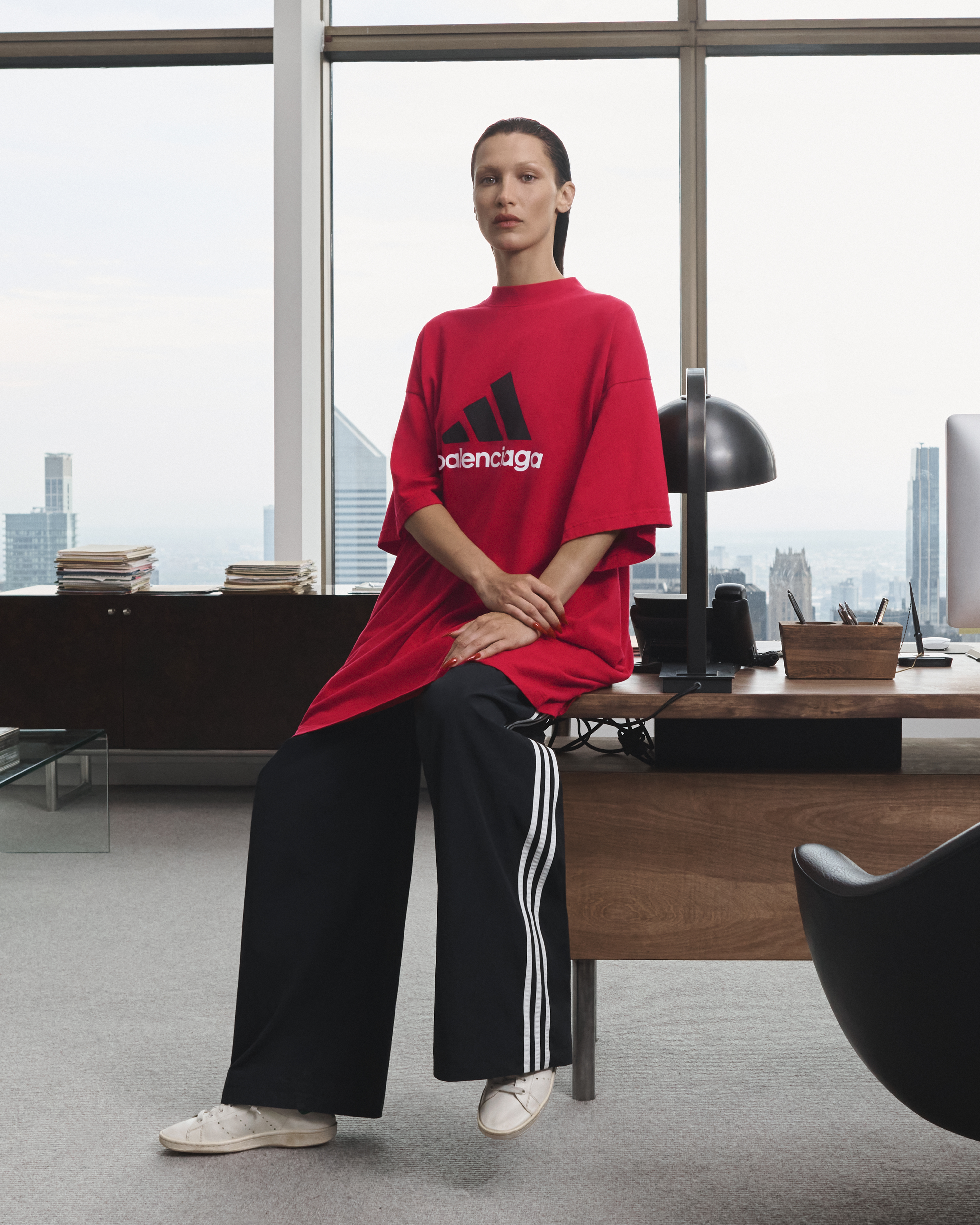 Per la campagna pubblicitaria, l’attrice francese Isabelle Huppert e la top model Bella Hadid indossano T-shirt oversize con le tre iconiche strisce diagonali bianche di adidas e vengono fotografate dal fotografo Joshua Bright con lo skyline di Manhattan sullo sfondo. Al centro di questa campagna la borsa Hourglass, uno dei modelli di punta della casa di moda francese, poi le sneakers Triple S e Speed, questa volta con il logo emblematico di adidas. Questa collezione è la perfetta rappresentazione dei classici del guardaroba sportivo, come la giacca con cappuccio e il bomber, con un taglio più oversize e edgy.