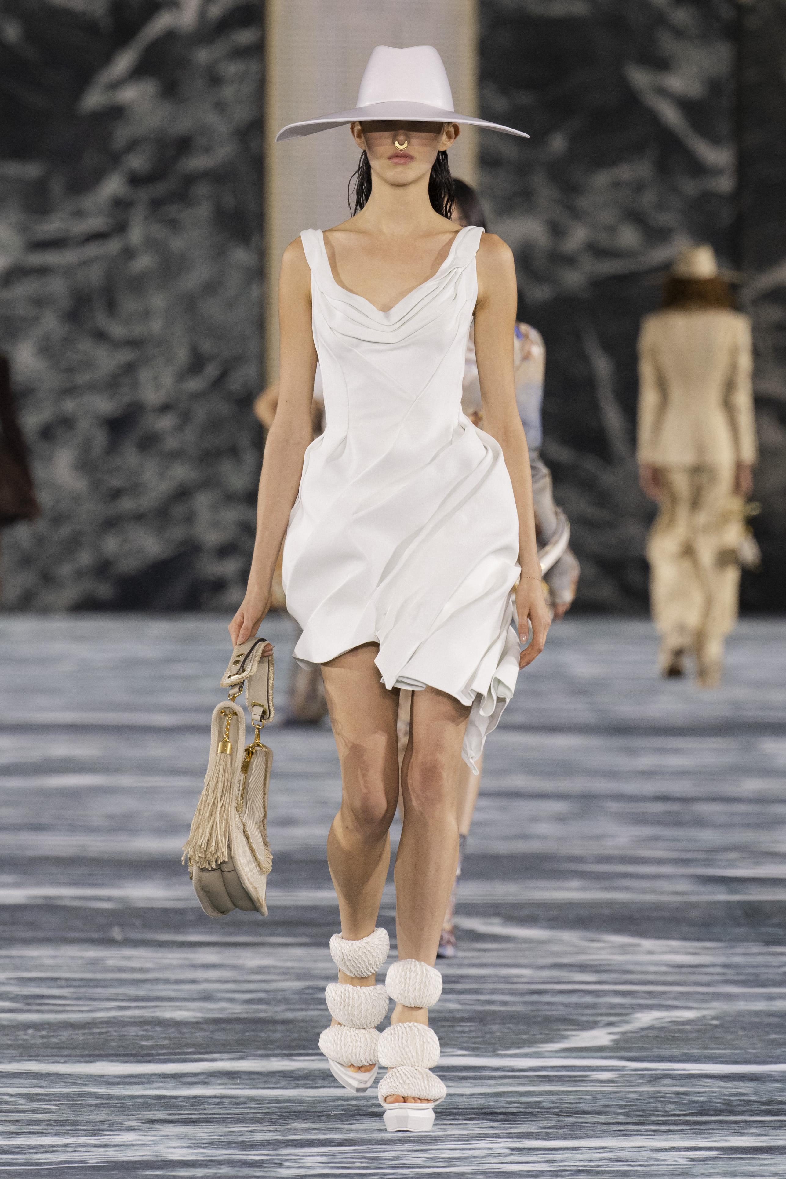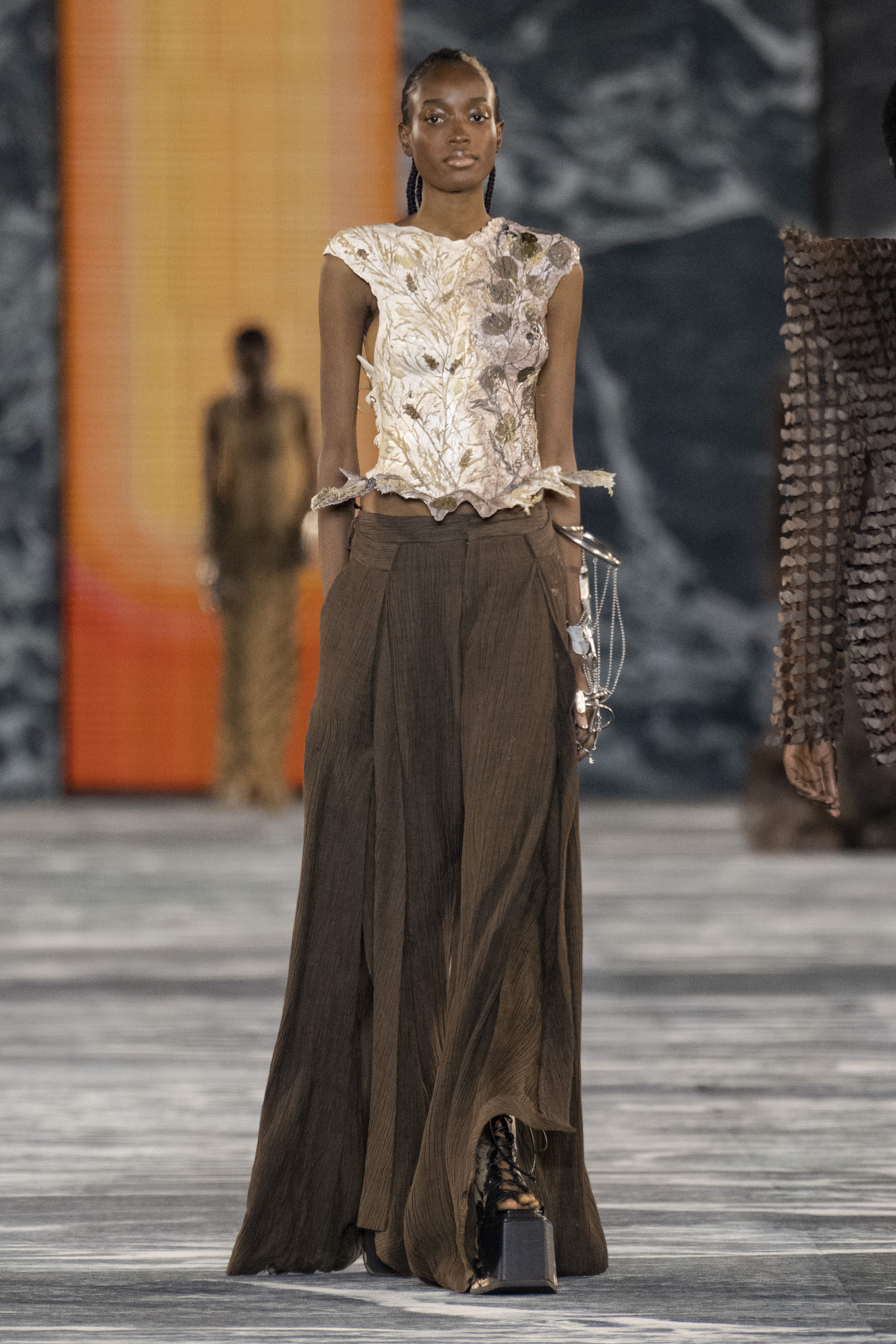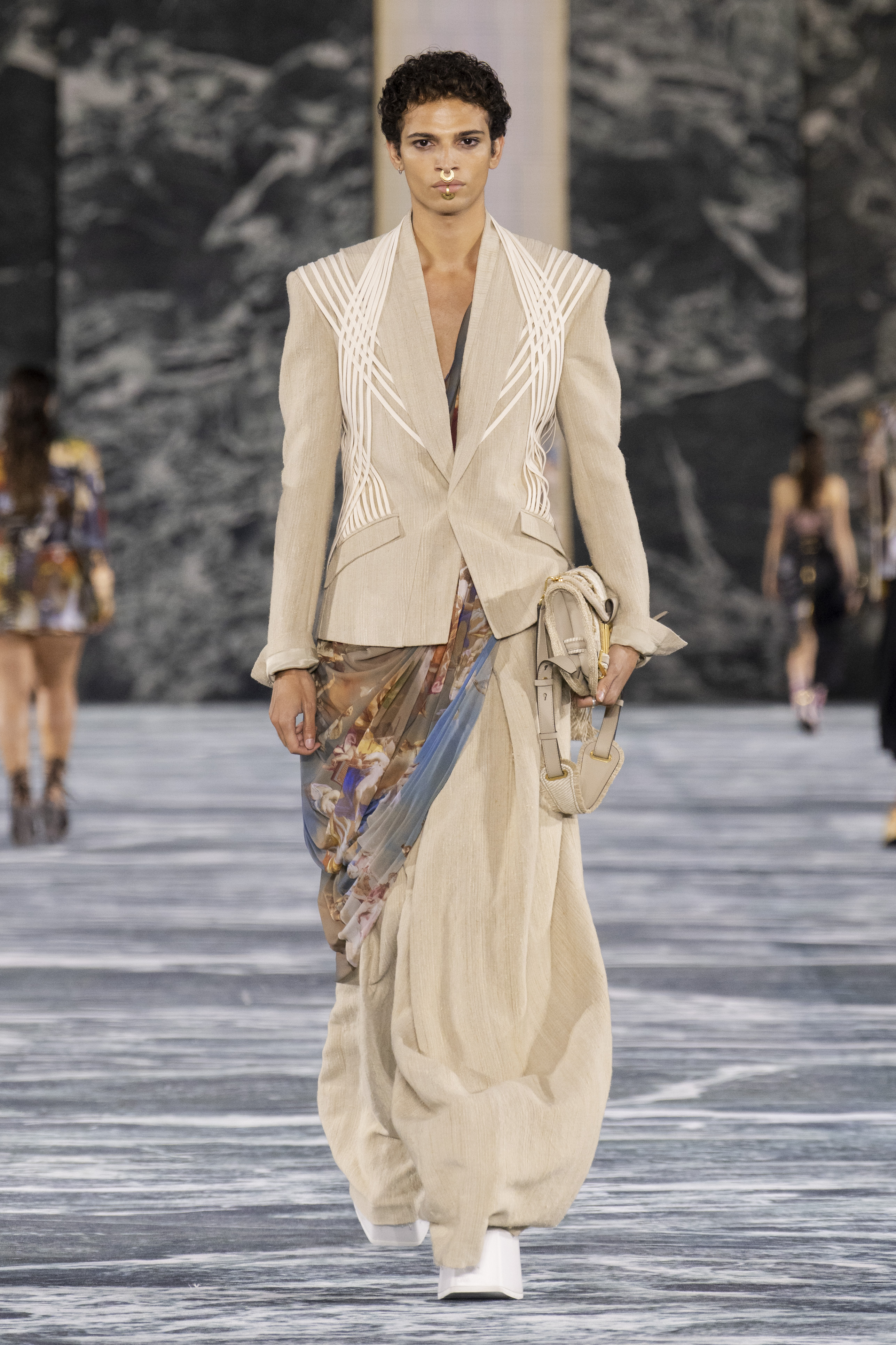 La collezione Primavera Estate 2023 di Olivier Rousteing per Balmain, di oltre 100 look, sembra esser pronta a stupirci. Questa sfilata vede l’alternarsi di due momenti differenti, due collezioni distinte, quella Ready-to-Wear e la Couture. L’immaginario si presenta quasi al 100% sostenibile, il designer ha difatti utilizzato tessuti di carta, banana e vimini per la collezione couture. La visione creativa di Rousteing invece – più o meno sostenibile che sia -, si sa, sembra aver ben poco di reale. I suoi capi, in particolar modo quelli couture, rendono più che difficoltosa la camminata alle modelle. Non troppe novità, alcuni pezzi sembrano addirittura esser stati estrapolati dalla collezione in collabo con Jean-Paul Gaultier. Per concludere, i tecnici del settore sembrano non aver apprezzato le tempistiche dello show, sono in molti infatti a non aver vissuto il famigerato momento Cher. Ça vas sans dire, lo spettacolo deve continuare, questa volta con Cher. Ma come sarebbe stata questa collezione senza di lei?