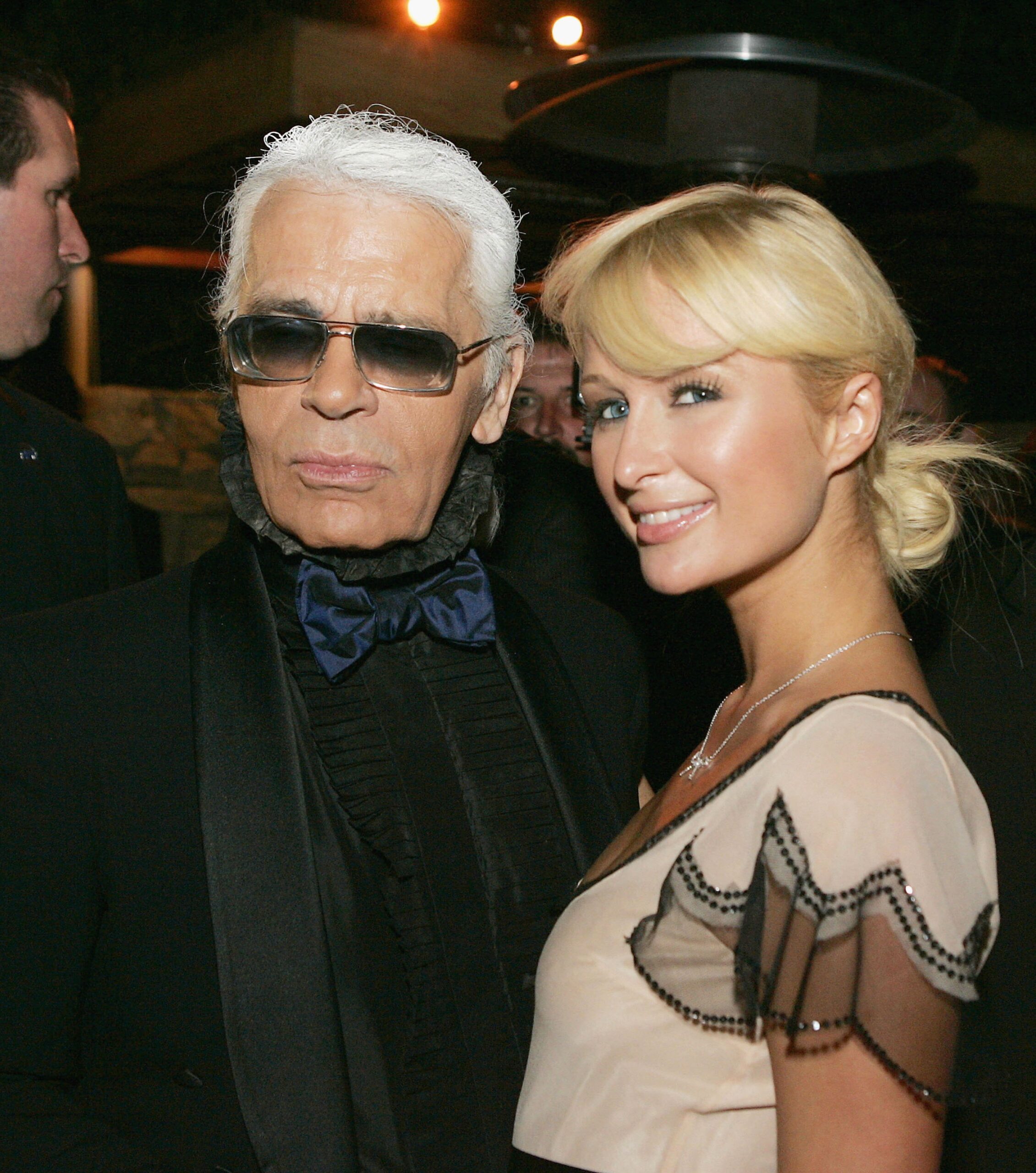 - BEVERLY HILLS, CA – JUNE 2: Designer Karl Lagerfeld (L) and Paris Hilton pose at the International Launch of Dom Perignon Rose Vintage 1996 Champagne by Karl Lagerfeld on June 2, 2006 in Beverly Hills, California. (Photo by Kevin Winter/Getty Images)