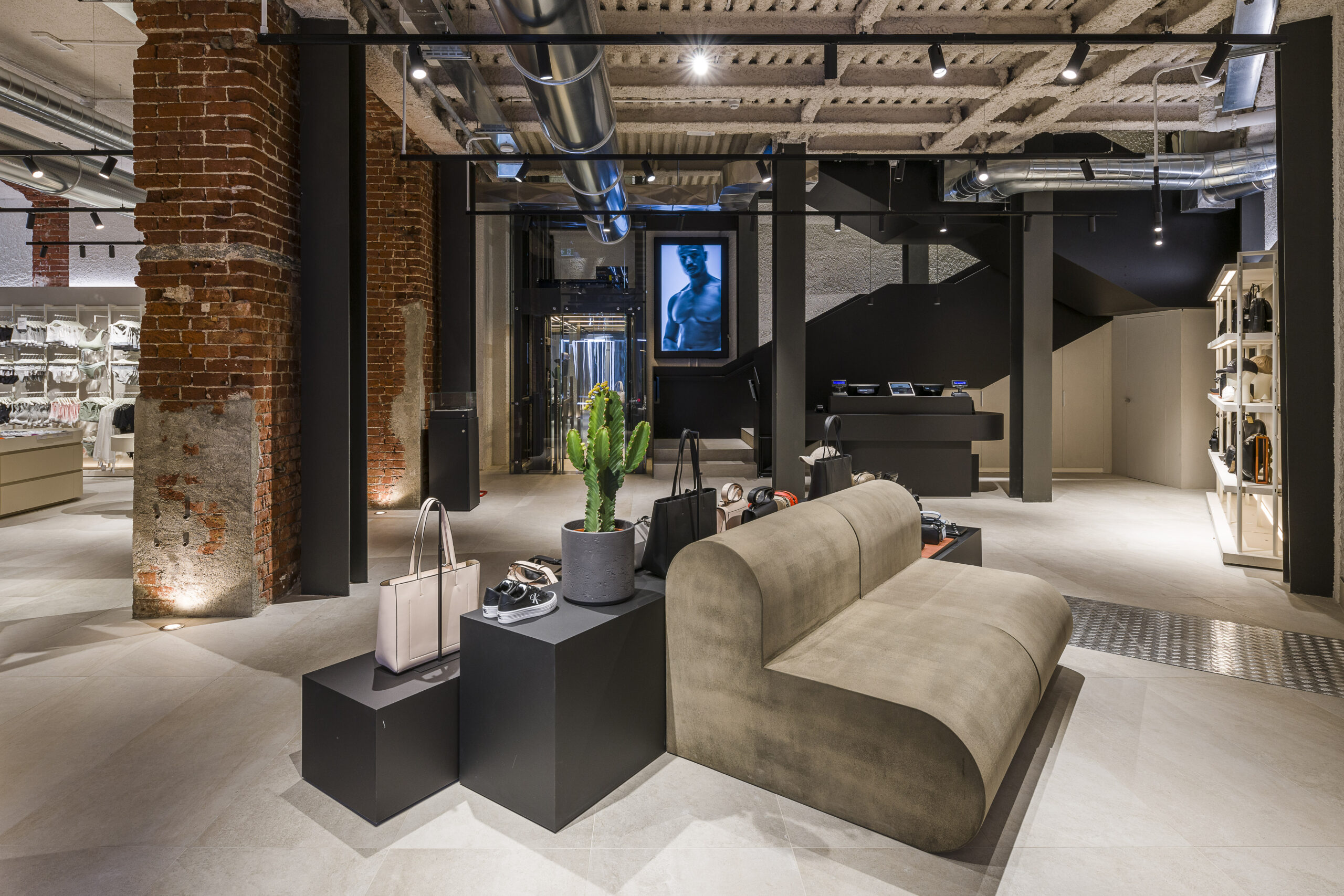 Il flagship rappresenta oggi il più grande punto vendita di Calvin Klein Jeans a Milano e presenta un nuovo e coinvolgente store concept che esalta il minimalismo nella sua massima espressività. Il design è incentrato attorno ad una scala scultorea che diventa una vera e propria opera architettonica. All’interno archi in mattoni rossi contrapposti a travi in acciaio accolgono i prodotti nella cornice dello storico immobile parte di un ampio progetto di riqualificazione. Lo store Milanese di Calvin Klein Jeans espone l’intera gamma di collezioni, tra cui denim uomo e donna, intimo, calzature, accessori e costumi da bagno. Attualmente ospita la collezione Spring Summer 2023.
