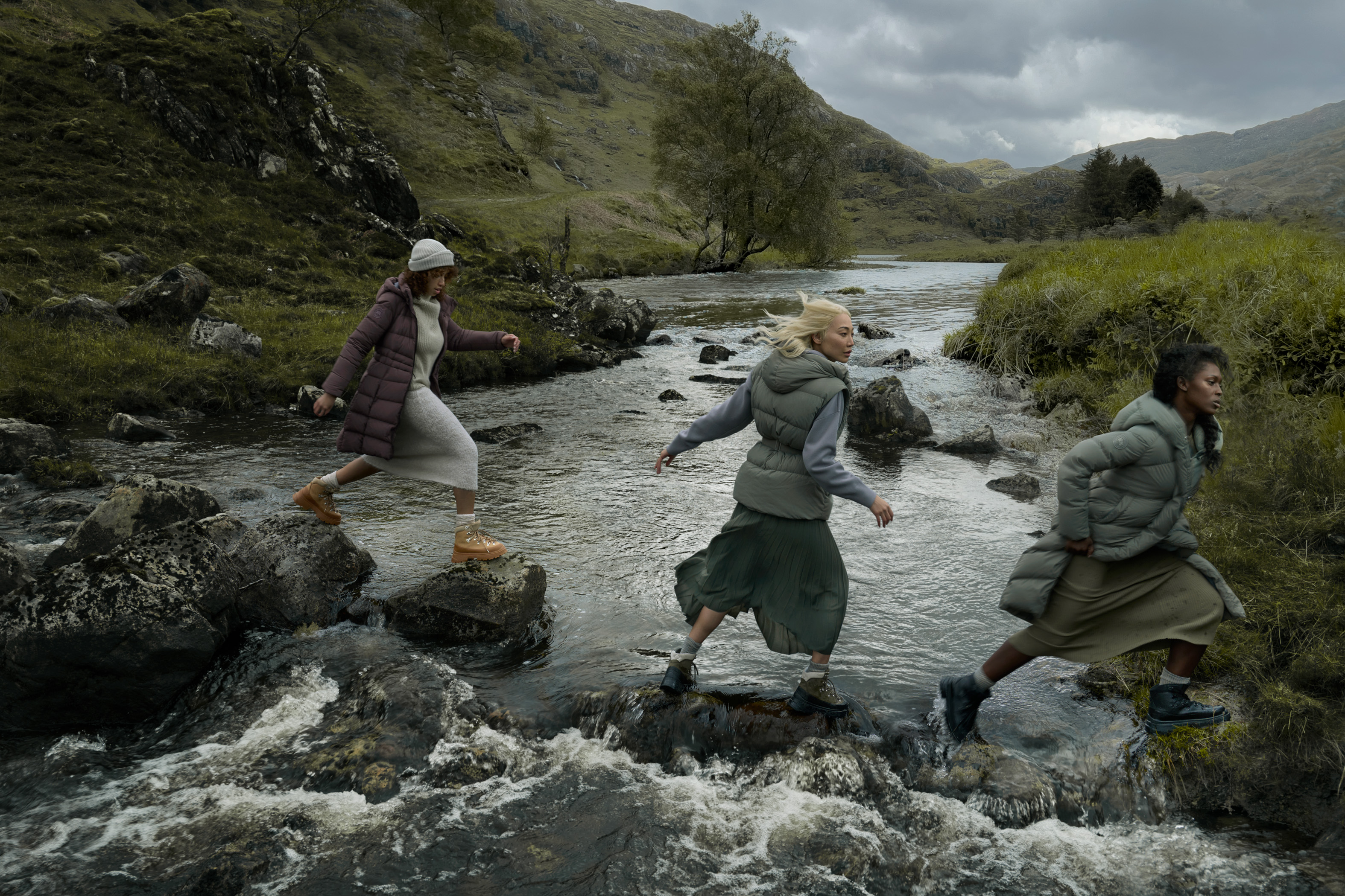 Questa campagna di Canada Goose, ambientata nelle Highlands scozzesi, mette al centro le donne raccontando storie di audacia e coraggio. Il brand ha come desiderio quello di ispirare i propri clienti, di diffondere messaggi positivi. Talenti femminili si uniscono dietro e davanti l’obiettivo. L’attrice Jodie Turner- Smith, la modella, musicista e DJ Soo Joo Park e la modella e attrice Khadijha Red Thunder. Le tre protagoniste della campagna hanno, negli anni, utilizzato la loro immagine ed i loro canali social per ispirare su differenti tematiche. Ognuna di loro ha una storia unica tutta da raccontare e da scoprire, in linea con la mission di Canada Goose.
