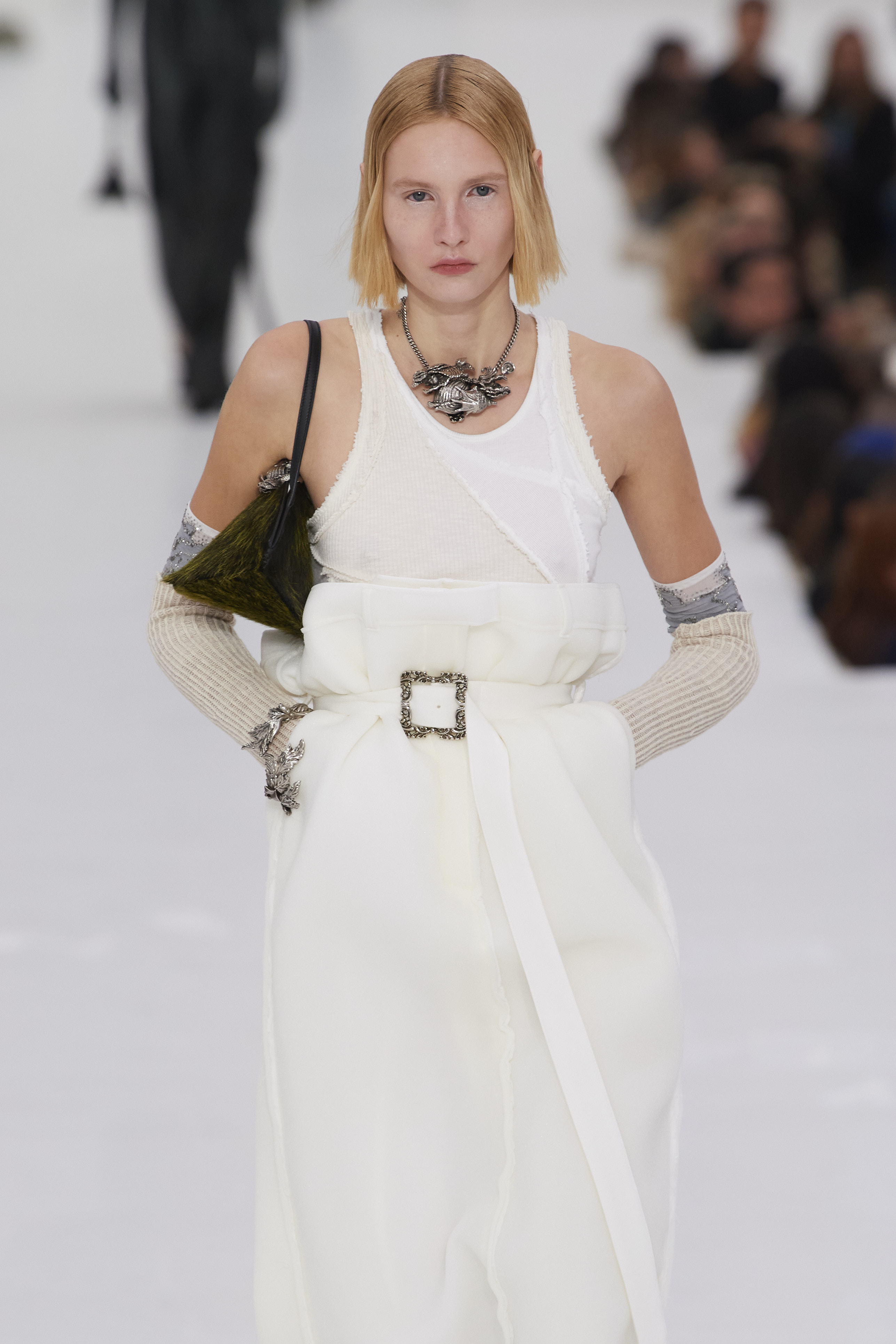 Ora però la canottiera bianca – o white tank top per farla sembrare meno basic – è indiscussa protagonista, Miuccia Prada e Raf Simons insegnano, con Kaia Gerber e Hunter Schafer che aprono e chiudono la sfilata Prada FW22. E poi Matthieu Balzy da Bottega Veneta sceglie la canottiera bianca per aprire la sfilata, abbinandola a un paio di classici denim per rievocare al meglio le vibes di fine Anni 90 e inizi 00.