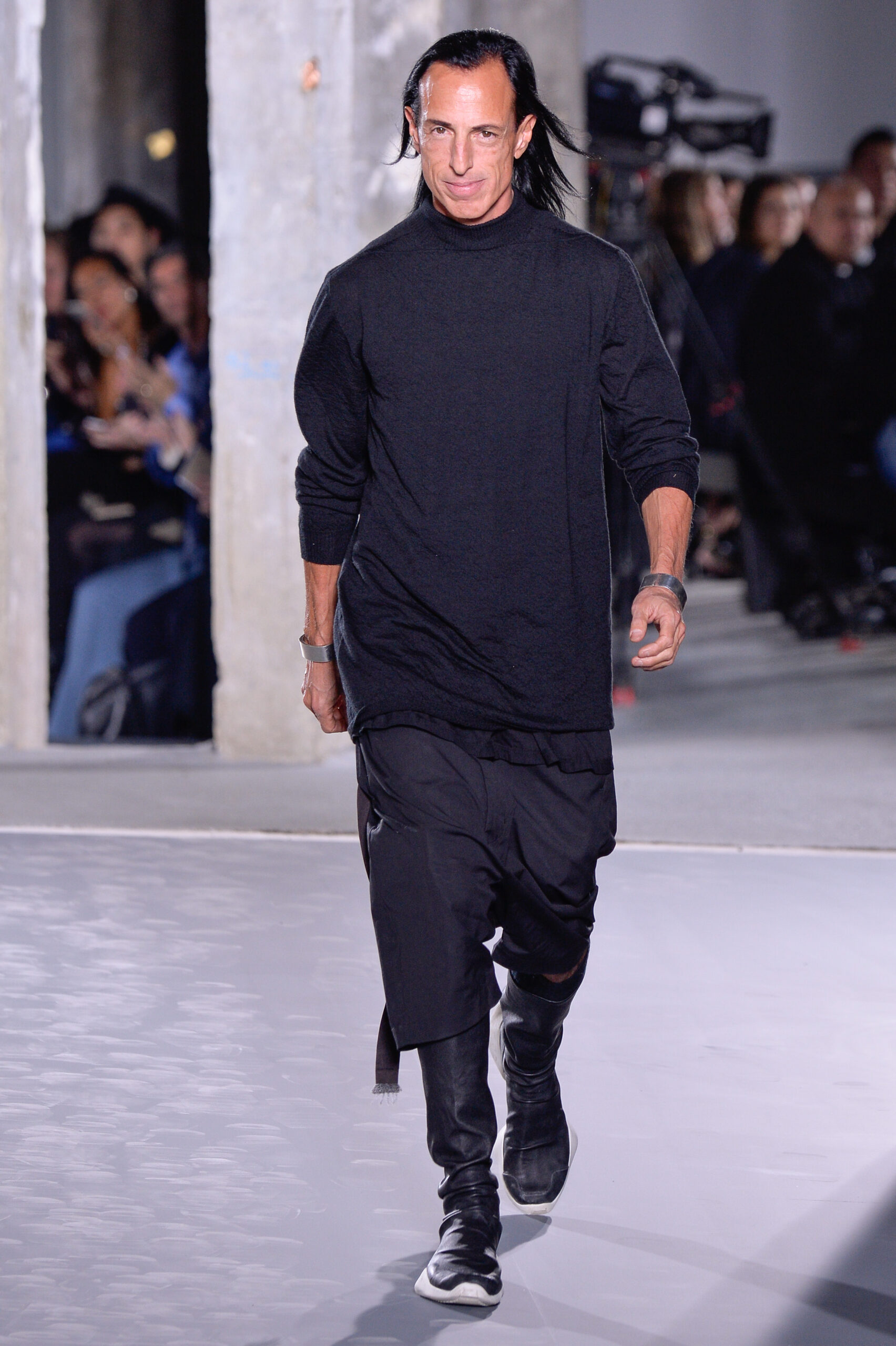 - PARIS, FRANCE – OCTOBER 01: Designer Rick Owens walks the runway during the Rick Owens show as part of the Paris Fashion Week Womenswear Spring/Summer 2016 on October 1, 2015 in Paris, France. (Photo by Francois G. Durand/WireImage)